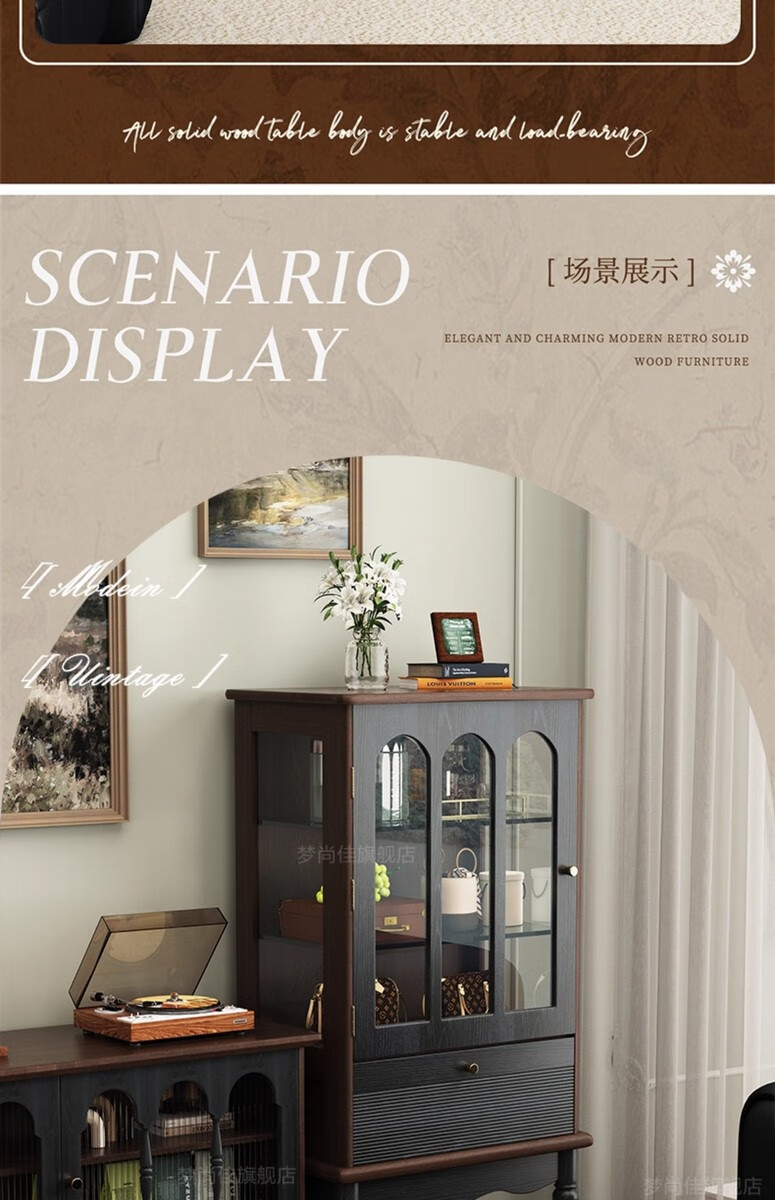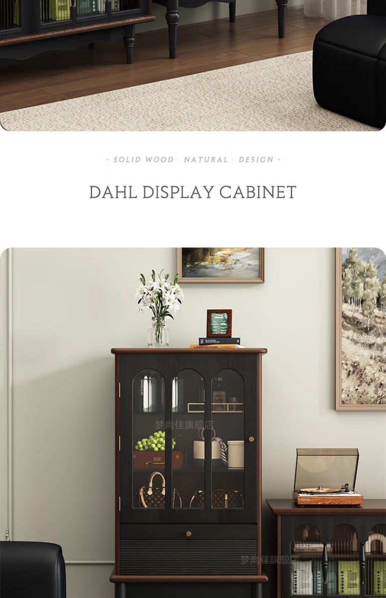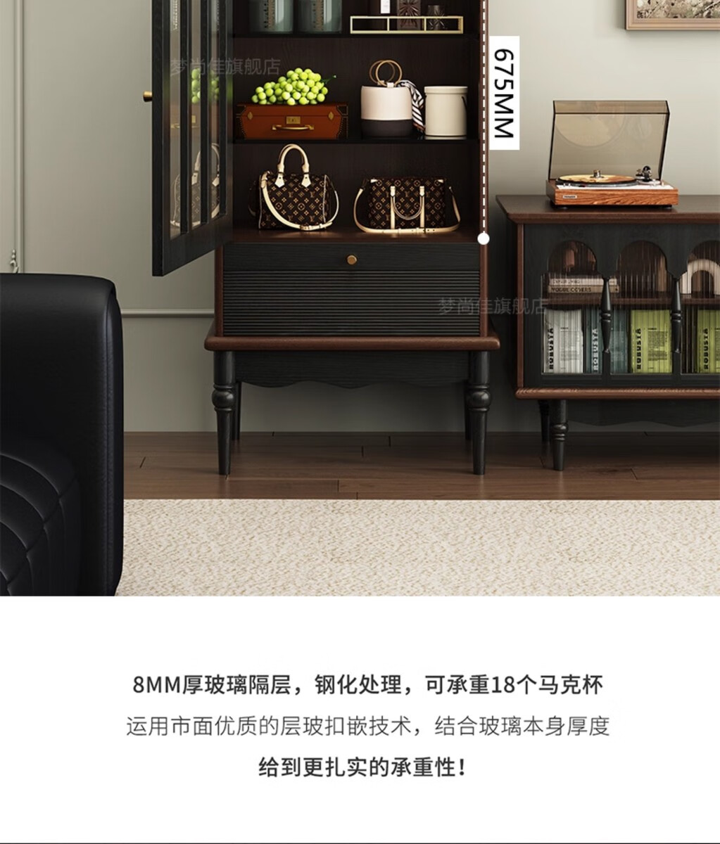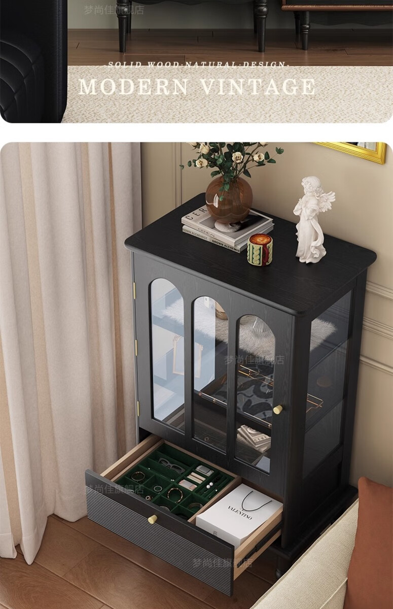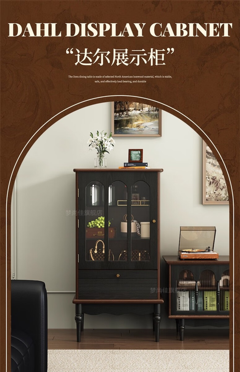 Zhong Zhang Guan French retro solid wood glass wine cabinet small living room wall display cabinet American home side cabinet Dahl side cabinet cream white