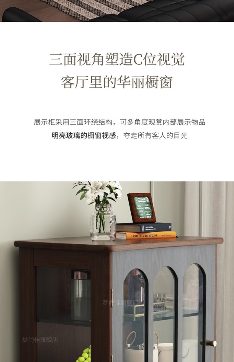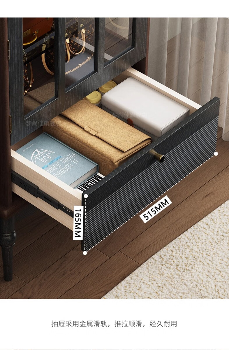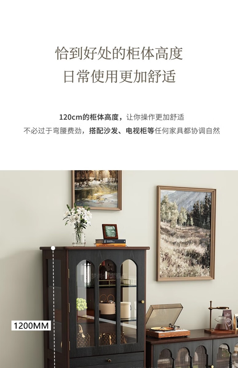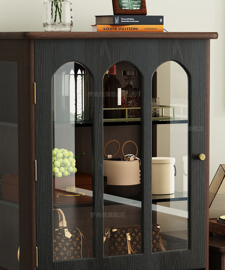 Zhong Zhang Guan French retro solid wood glass wine cabinet small living room wall display cabinet American home side cabinet Dahl side cabinet cream white