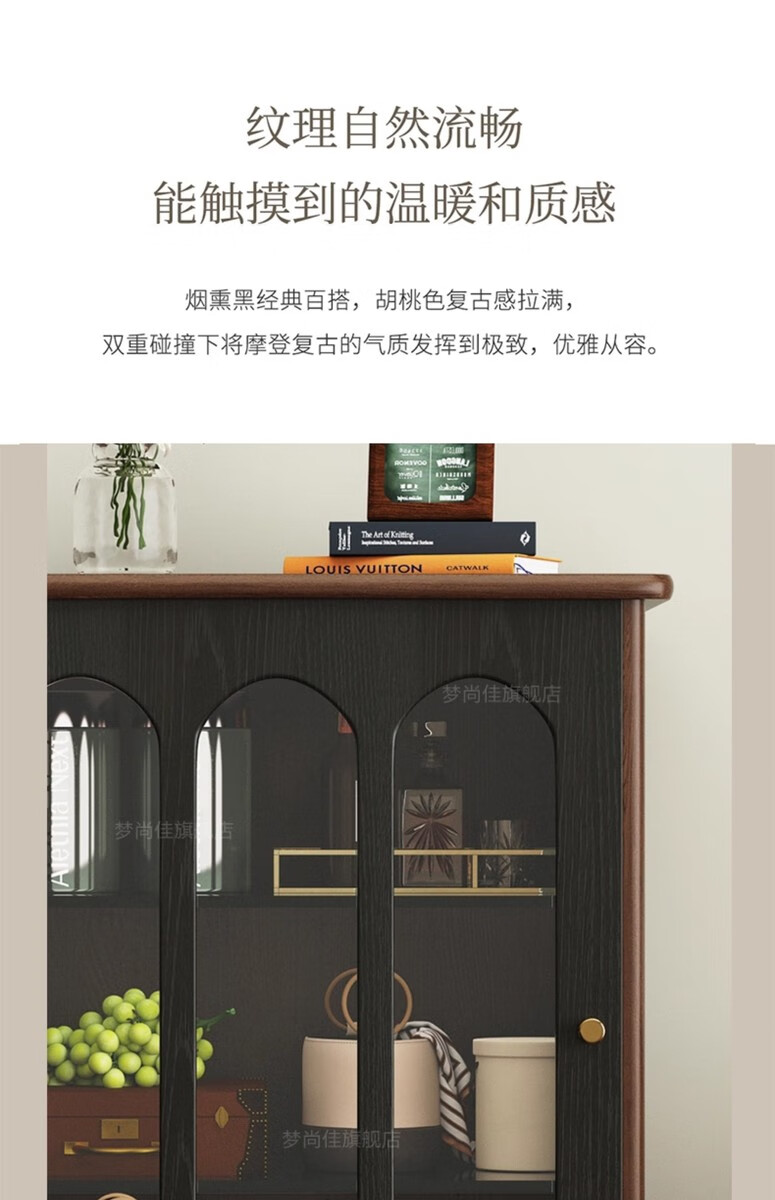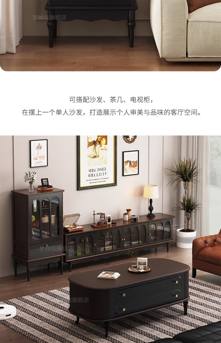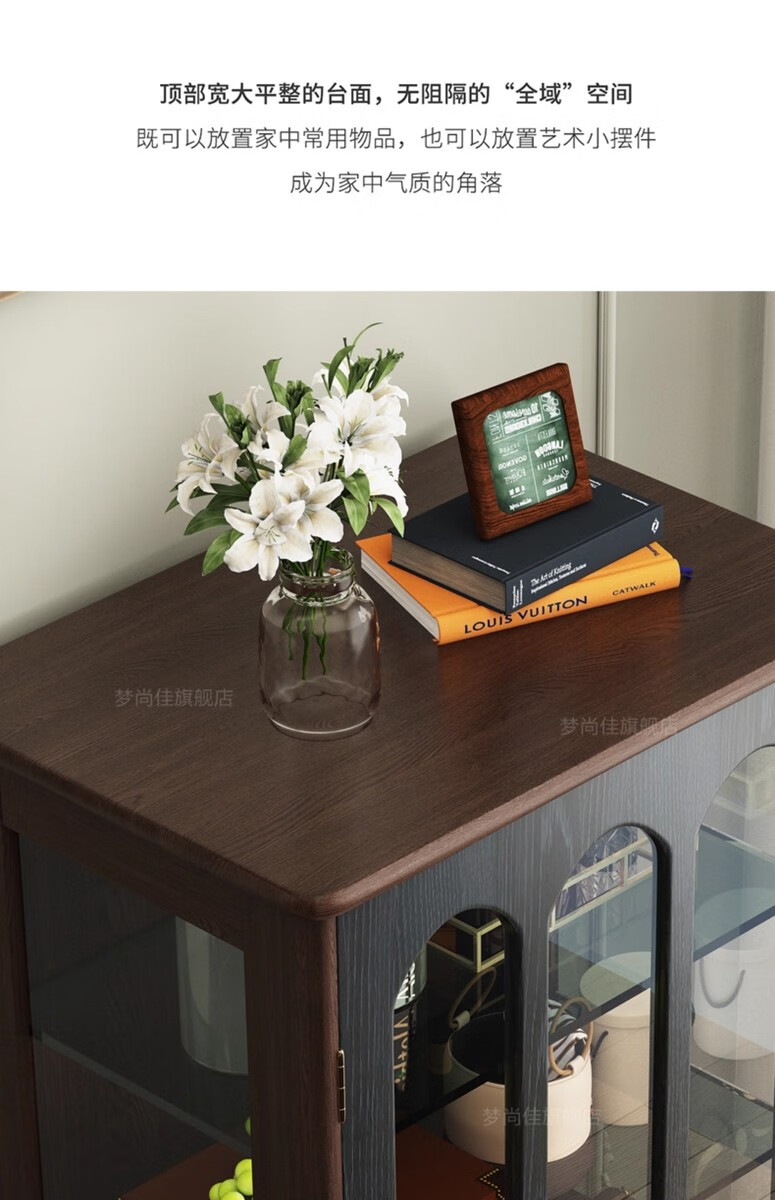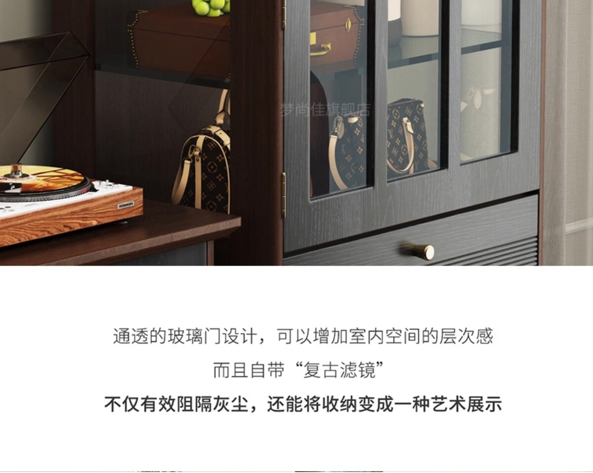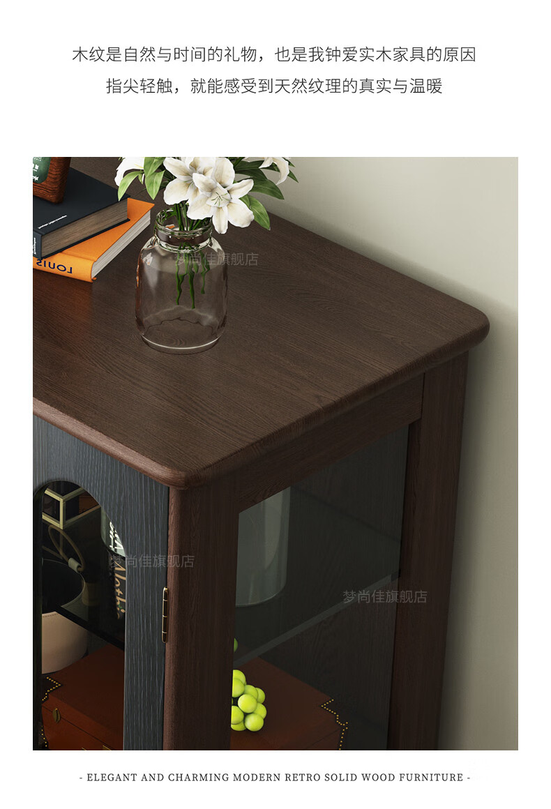 Zhong Zhang Guan French retro solid wood glass wine cabinet small living room wall display cabinet American home side cabinet Dahl side cabinet cream white