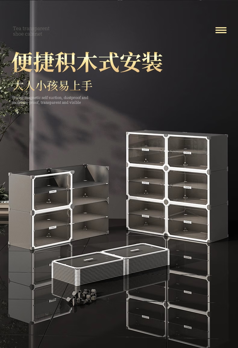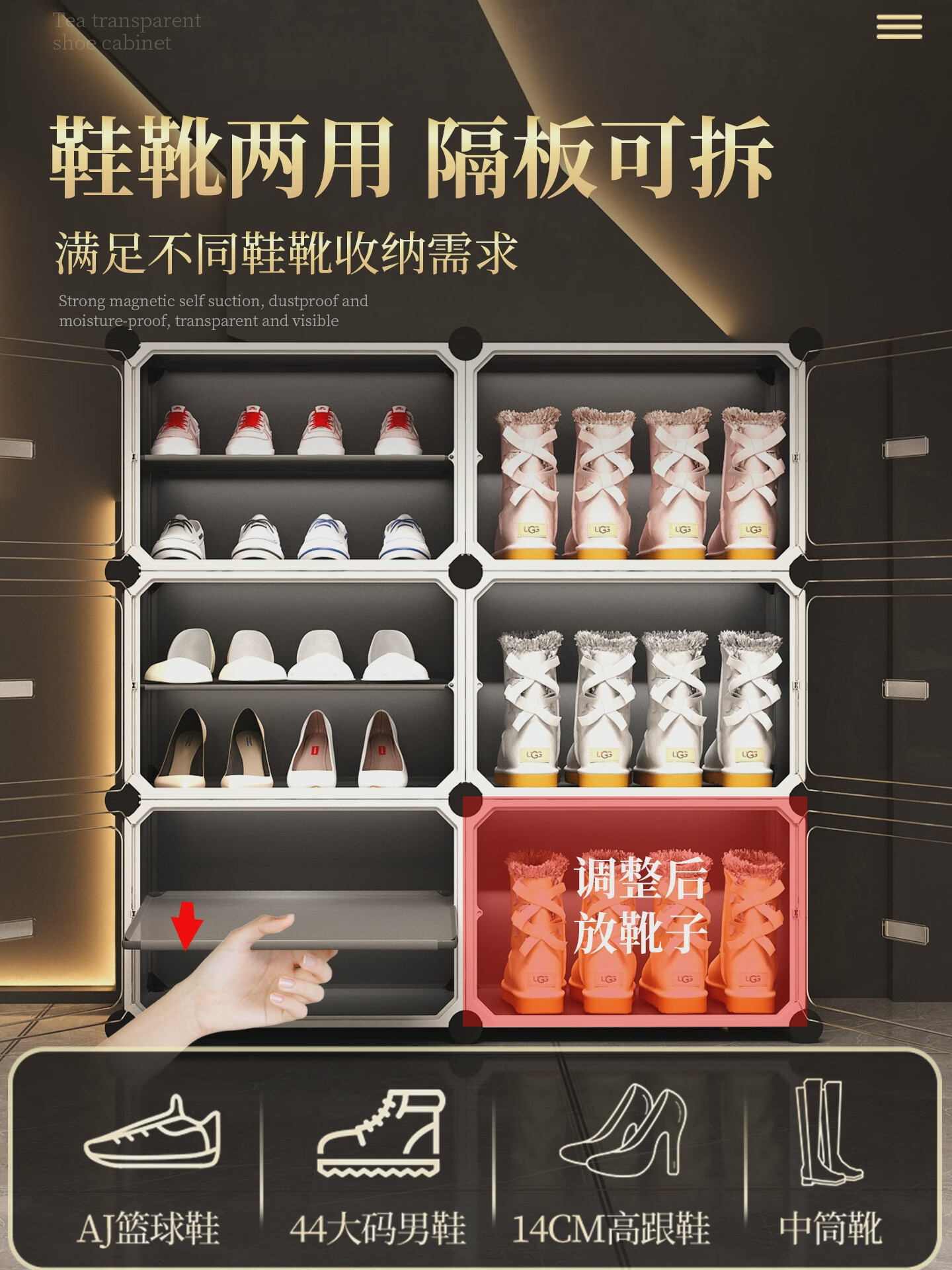 Liangpinism Shoe Cabinet 2025 New Storage Artifact Large Capacity Multi-Layer Shoe Rack at the Door Door with Transparent Magnetic High Translucent Door Thickened 3 Columns and 10 Layers - Approximately 60 pairs of boots can be placed