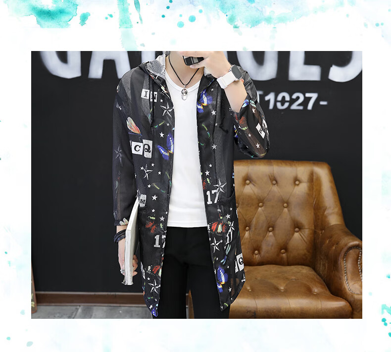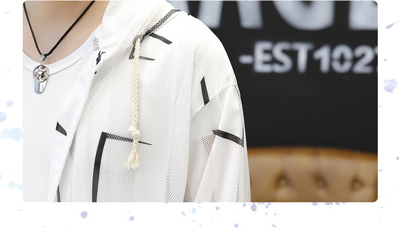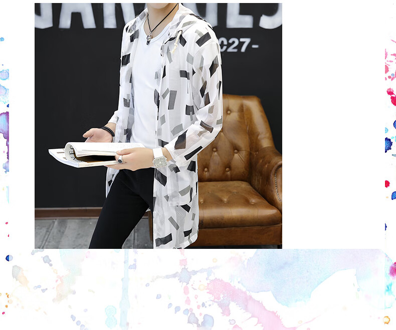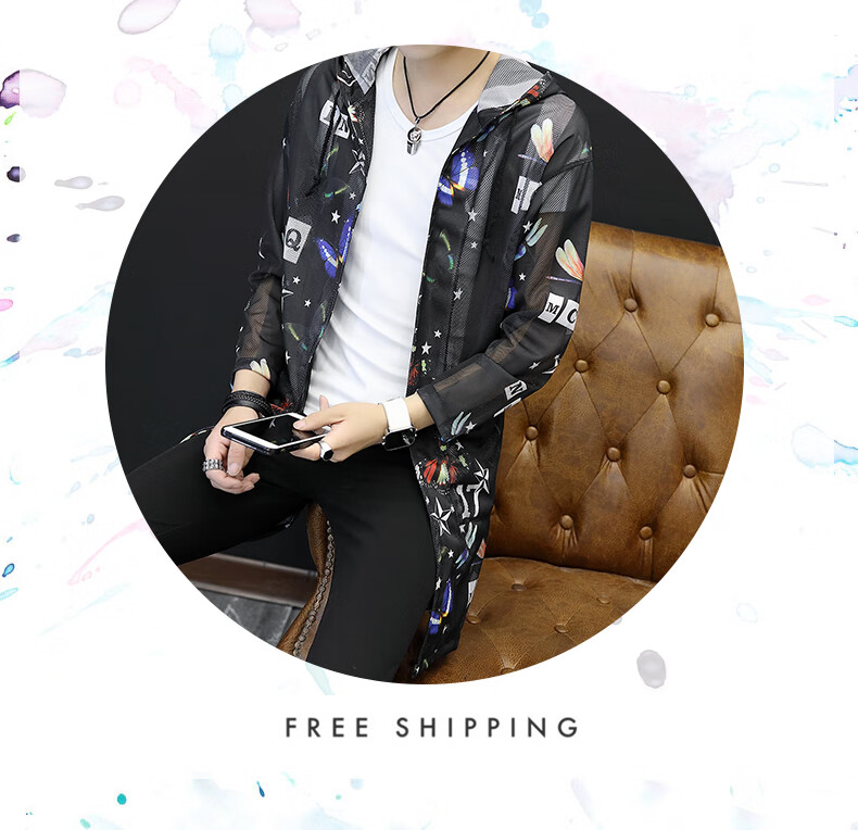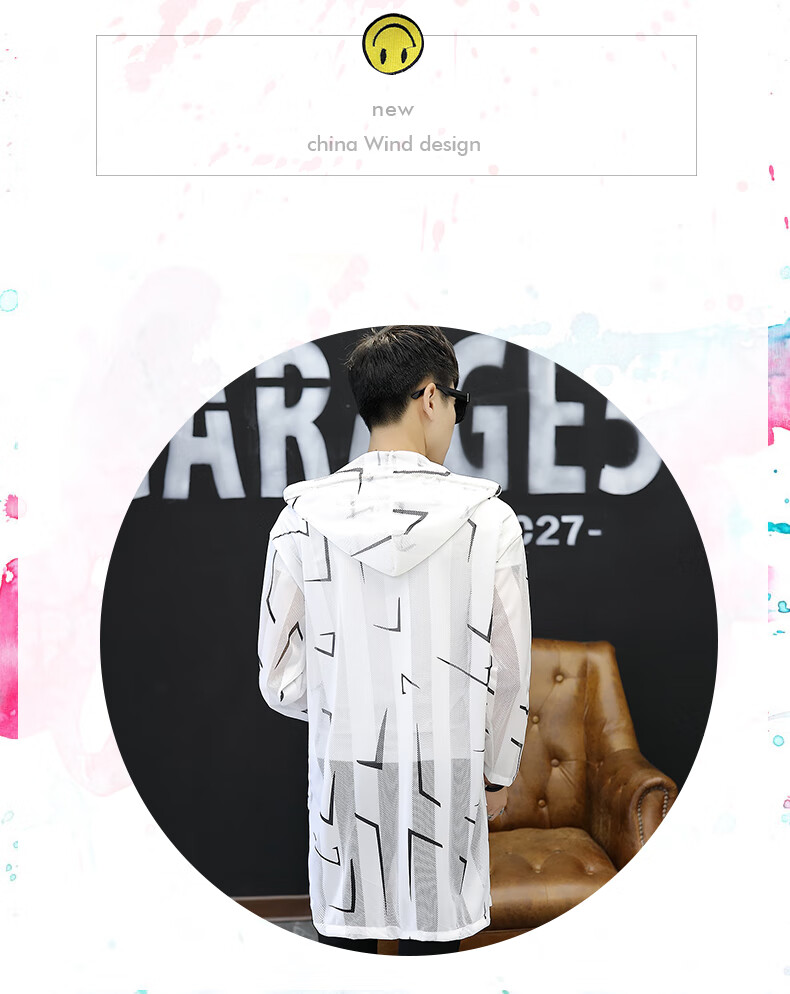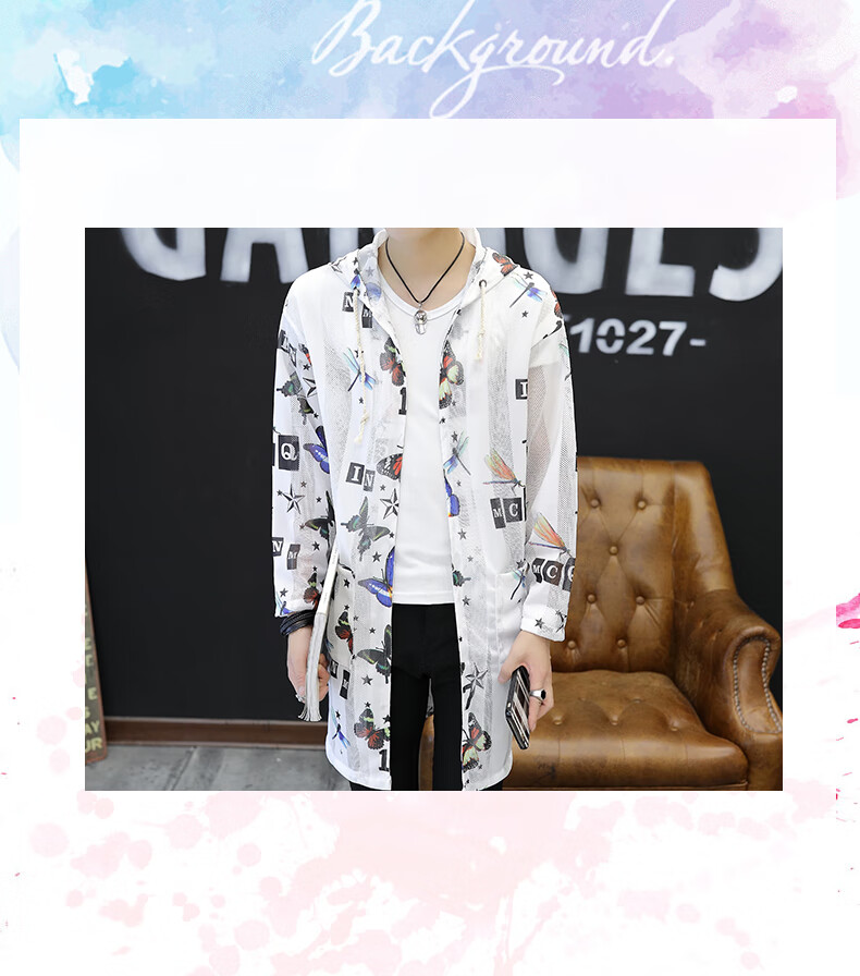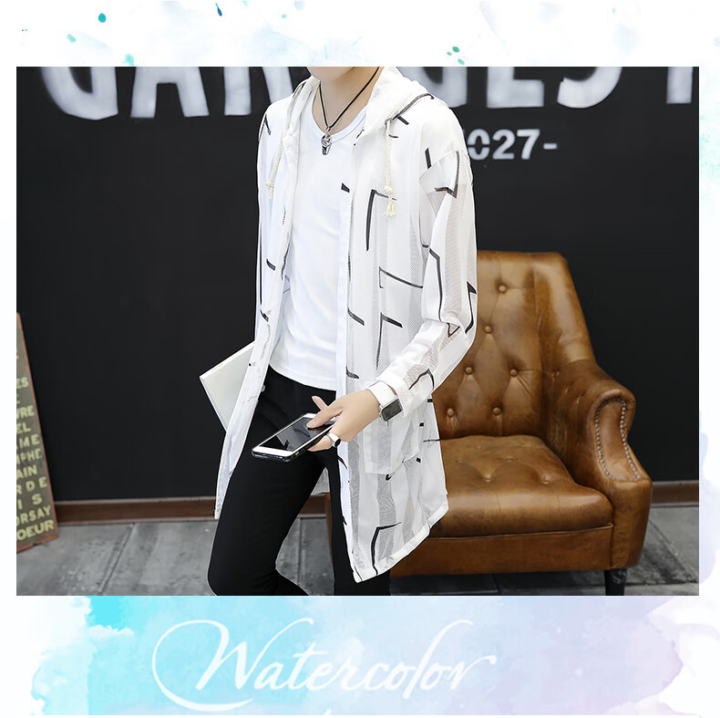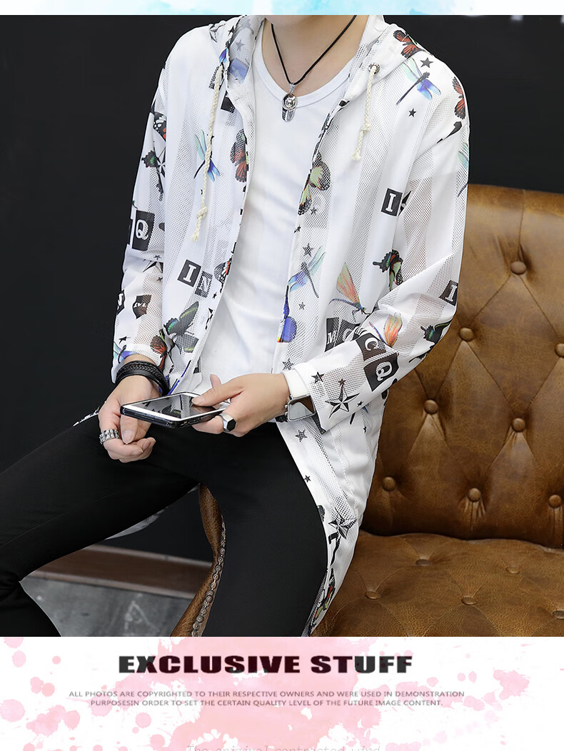 Men's Sun Protection Clothes Men's Tulle Outerwear Ice Silk Clothes Men's Cloak Summer Breathable Clothes Hooded Fishing Mesh Hollow Mid-Length Check M M