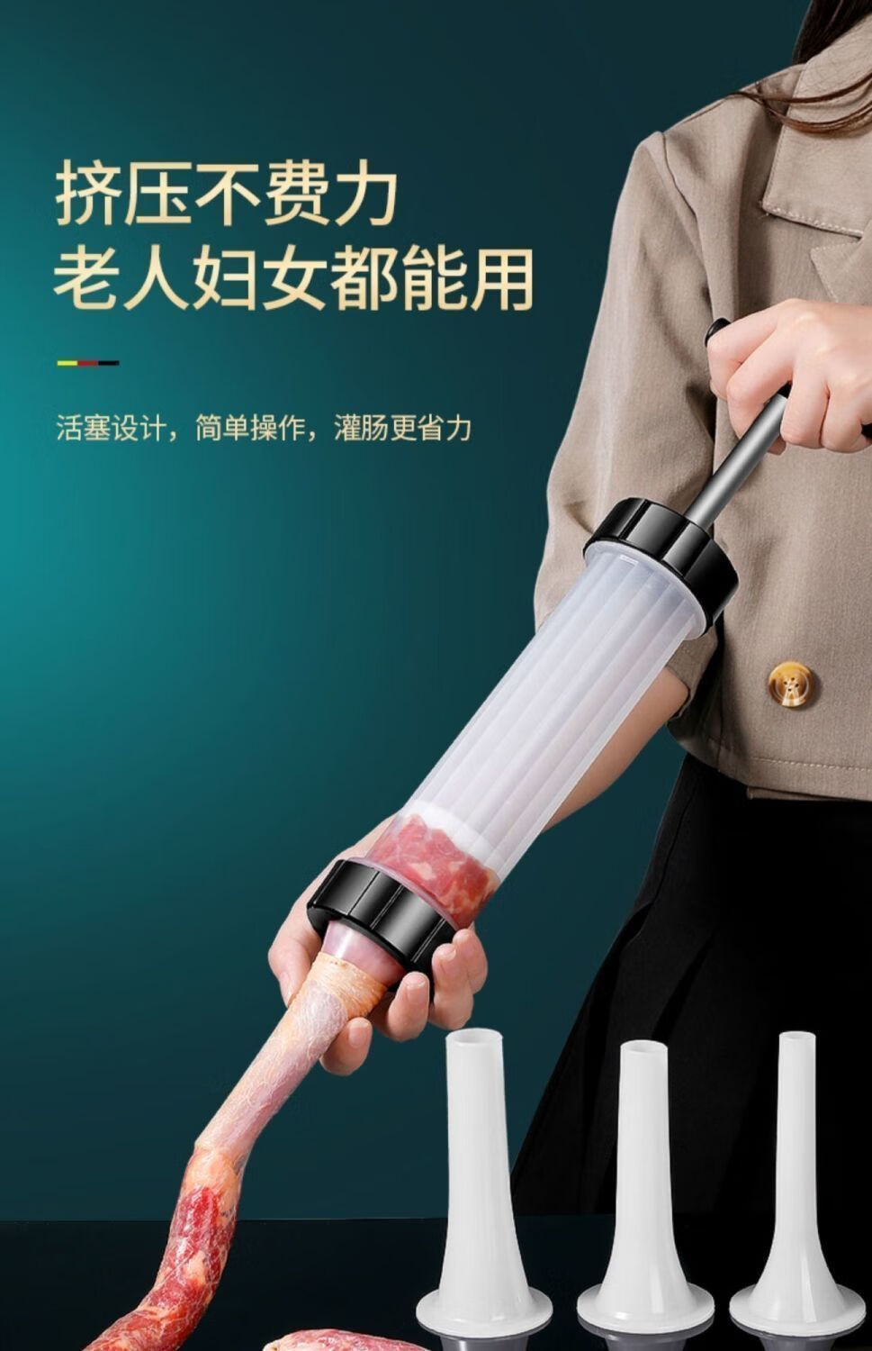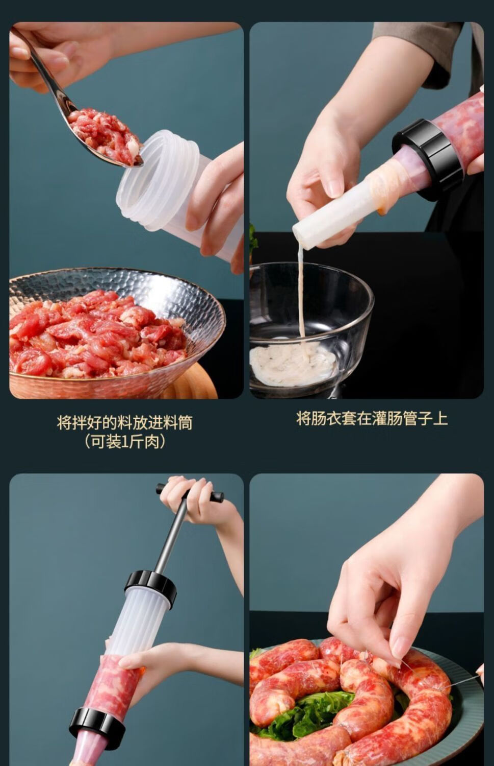 Manual enema artifact rotating enema machine household can sausage casing sausage filling tool sausage machine enema 1 set 1 hand push enema machine + 3 enema heads