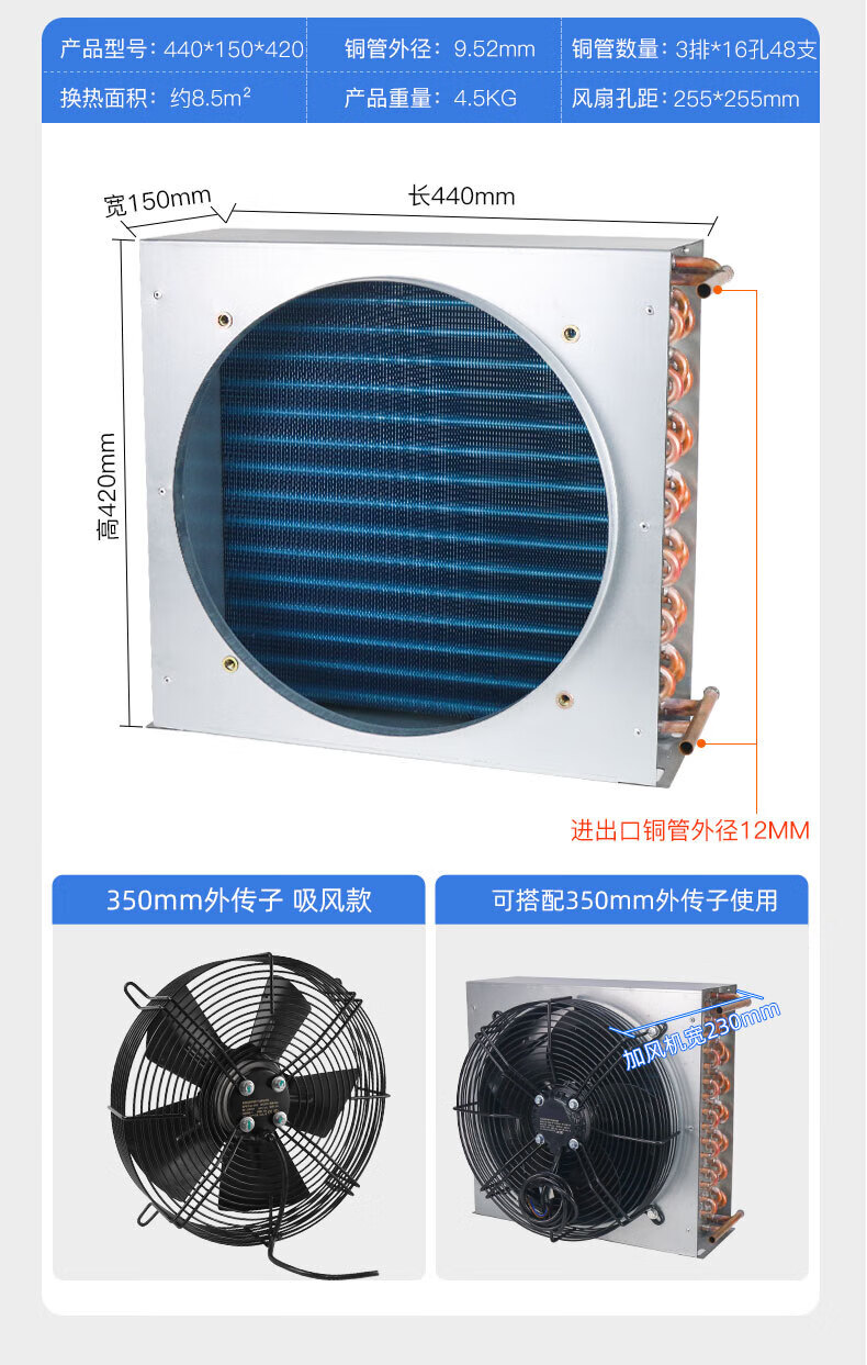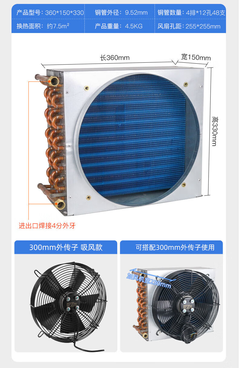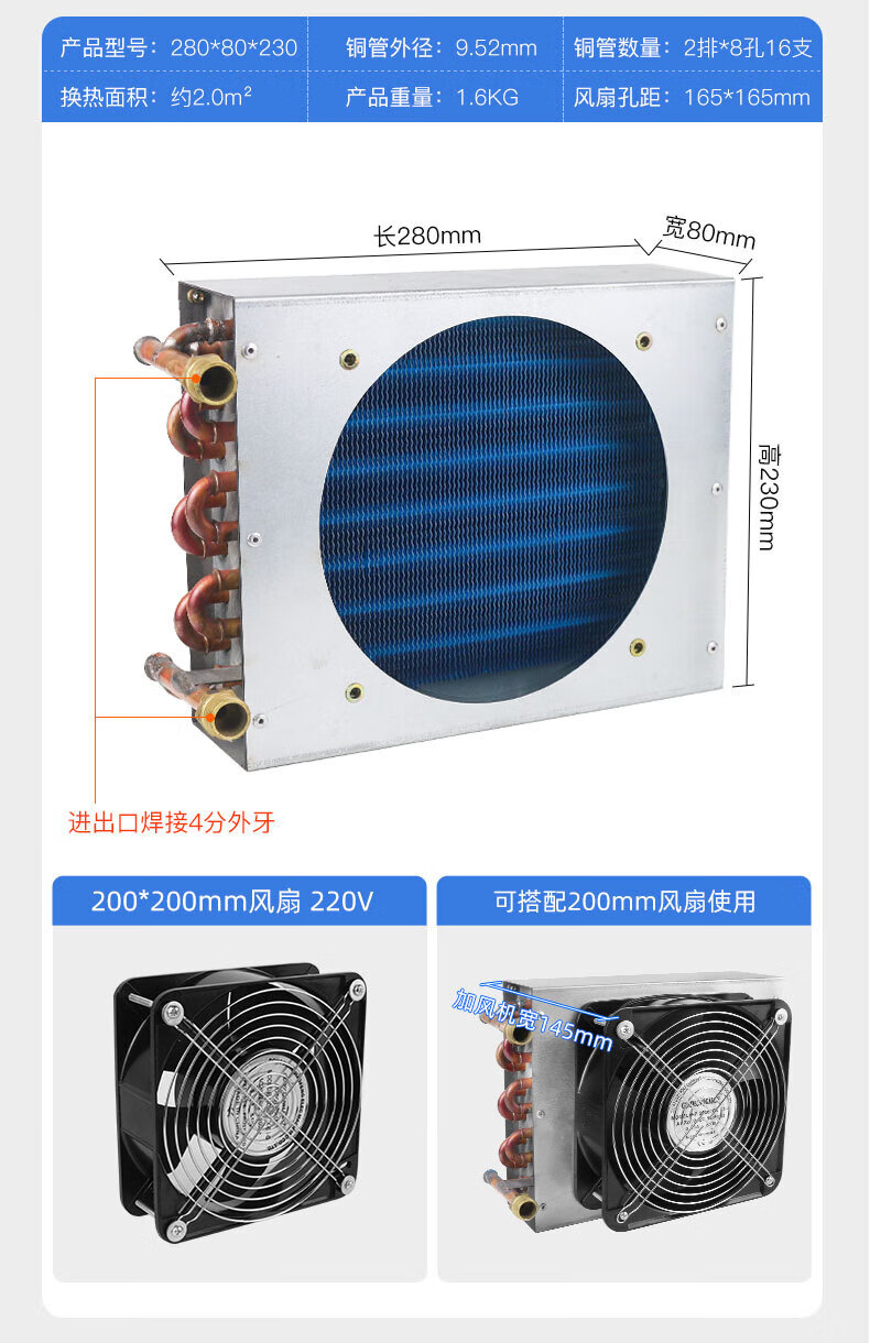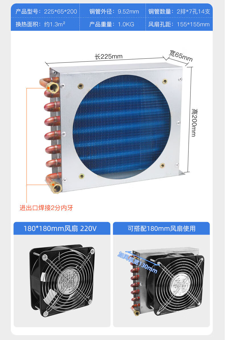 Shantou Lincun condenser radiator small refrigerator air conditioner ice machine homemade industrial water cooling circulation fan motor 225*130*200 with 180 fan