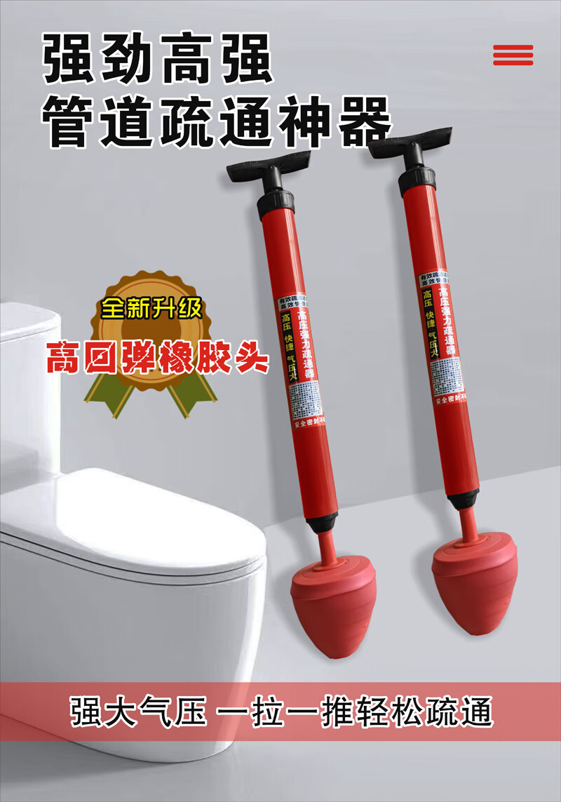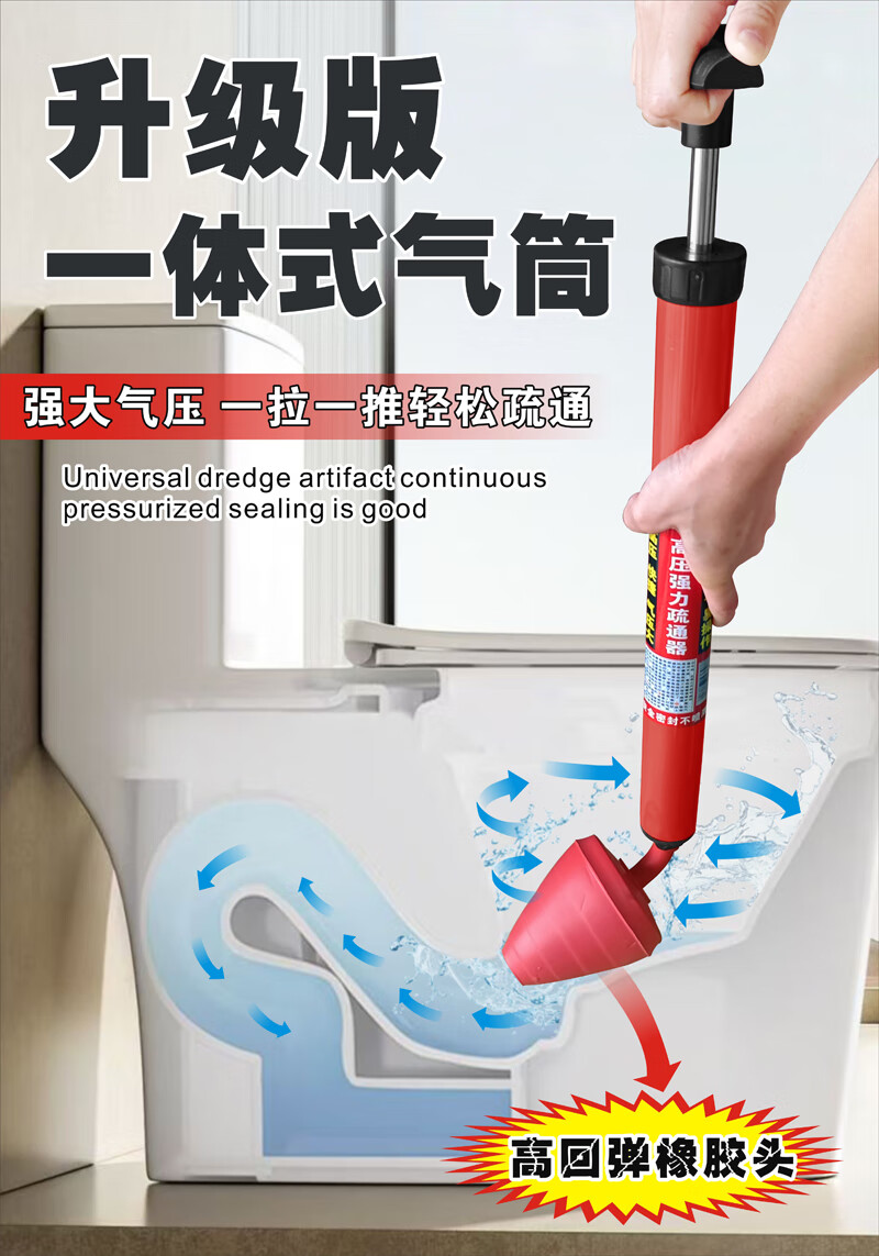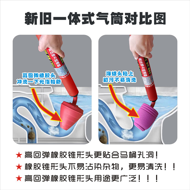 One-shot toilet unblocker to unblock the toilet and sit in the toilet. The toilet pipe blocks the sewer. Toilet suction tool. Upgraded rubber head toilet unblocker.