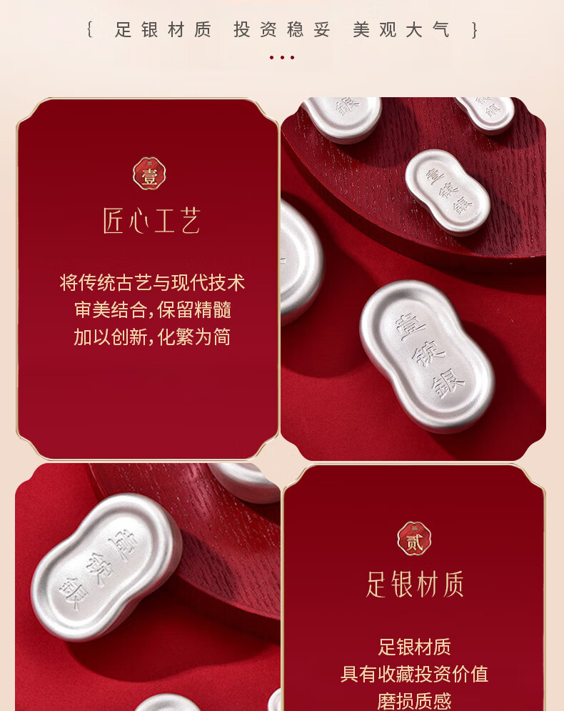 Liuguifu jewelry pure silver 9999 pure silver investment silver bar silver brick silver ingot silver nugget broken silver collection stored value for New Year gift one ingot silver bar 20g