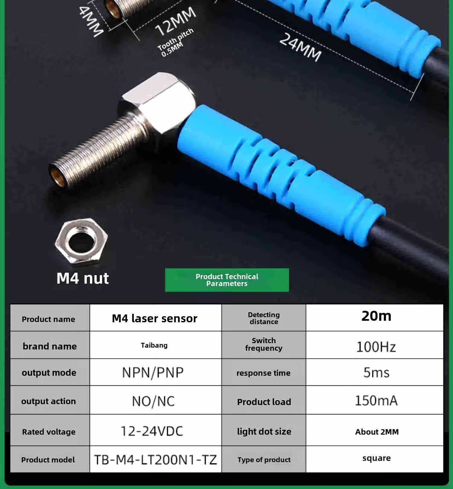 M4M6 laser sensor through beam sensor switch right angle 90 degree elbow diffuse reflection photoelectric switch visible light TB-M4-LT200N2-TZ
