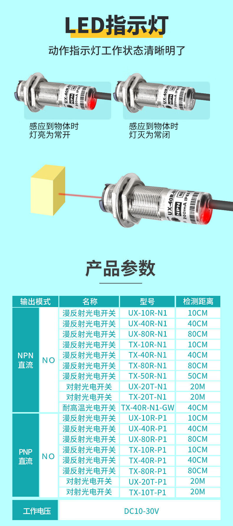 High temperature resistant diffuse reflection photoelectric switch UX-50R-N1 through-beam sensor NPN three-wire normally open TX-40R-P1 Imported laser through-beam DR-1000N (NPN normally open) pair of 20