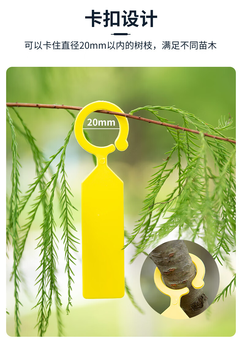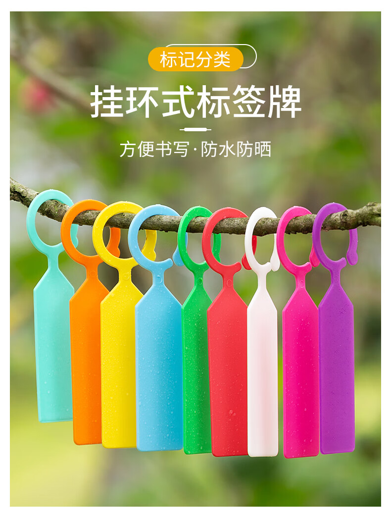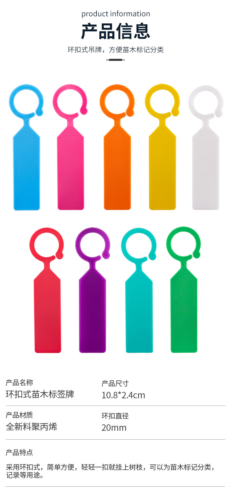 加厚葡萄西瓜授粉记号卡大树植物环扣标签塑料吊牌花卉标记牌 白色100片/包