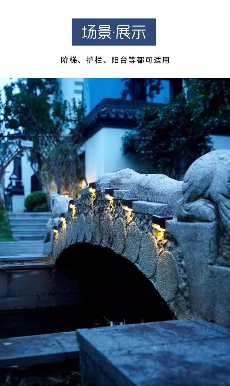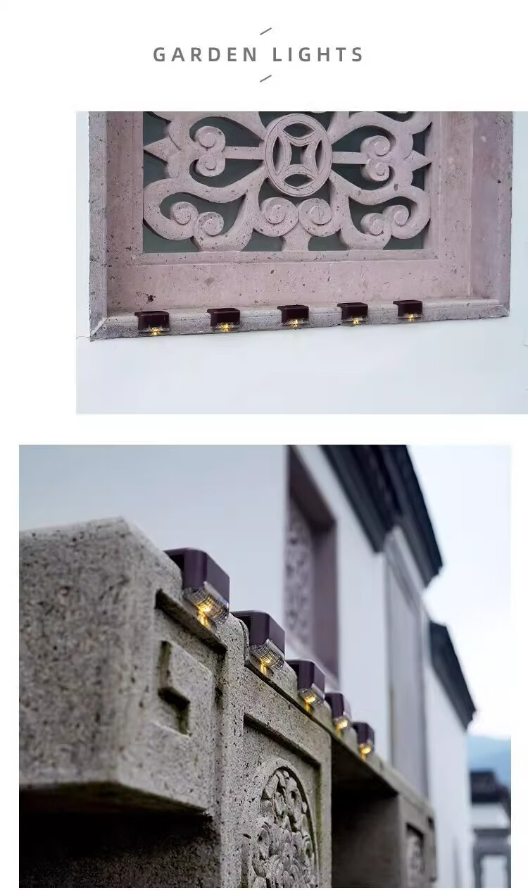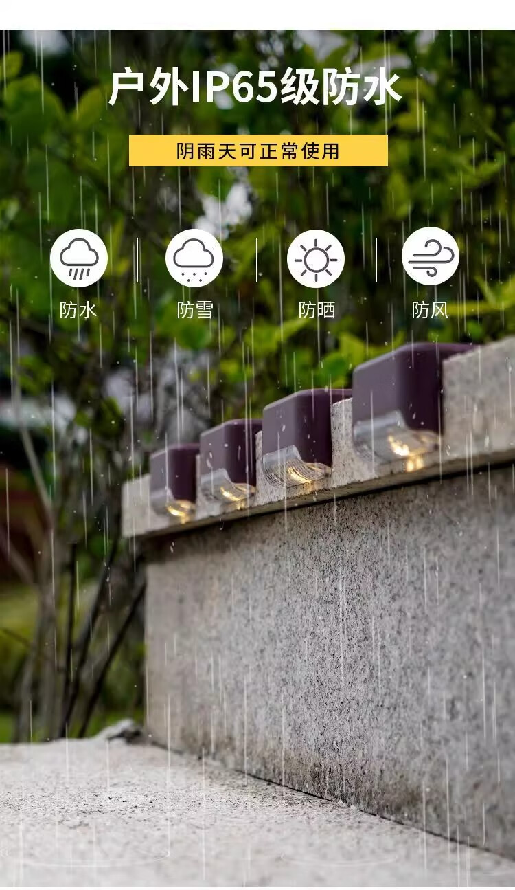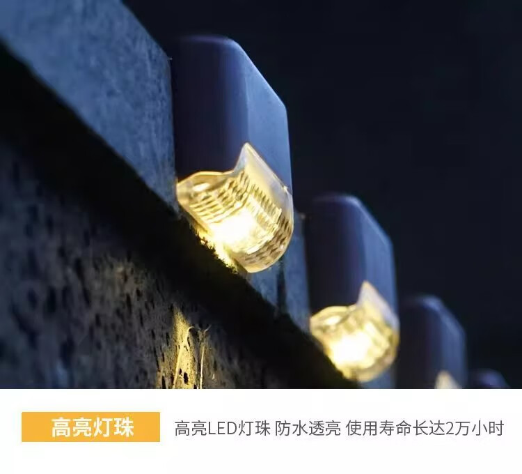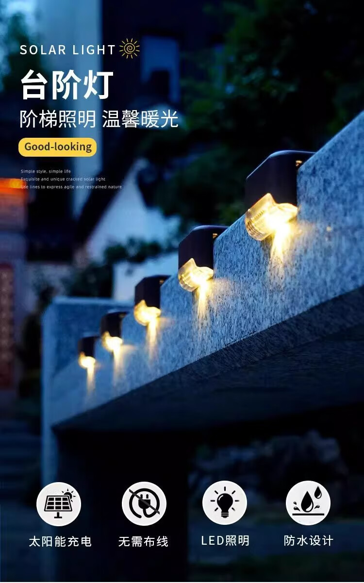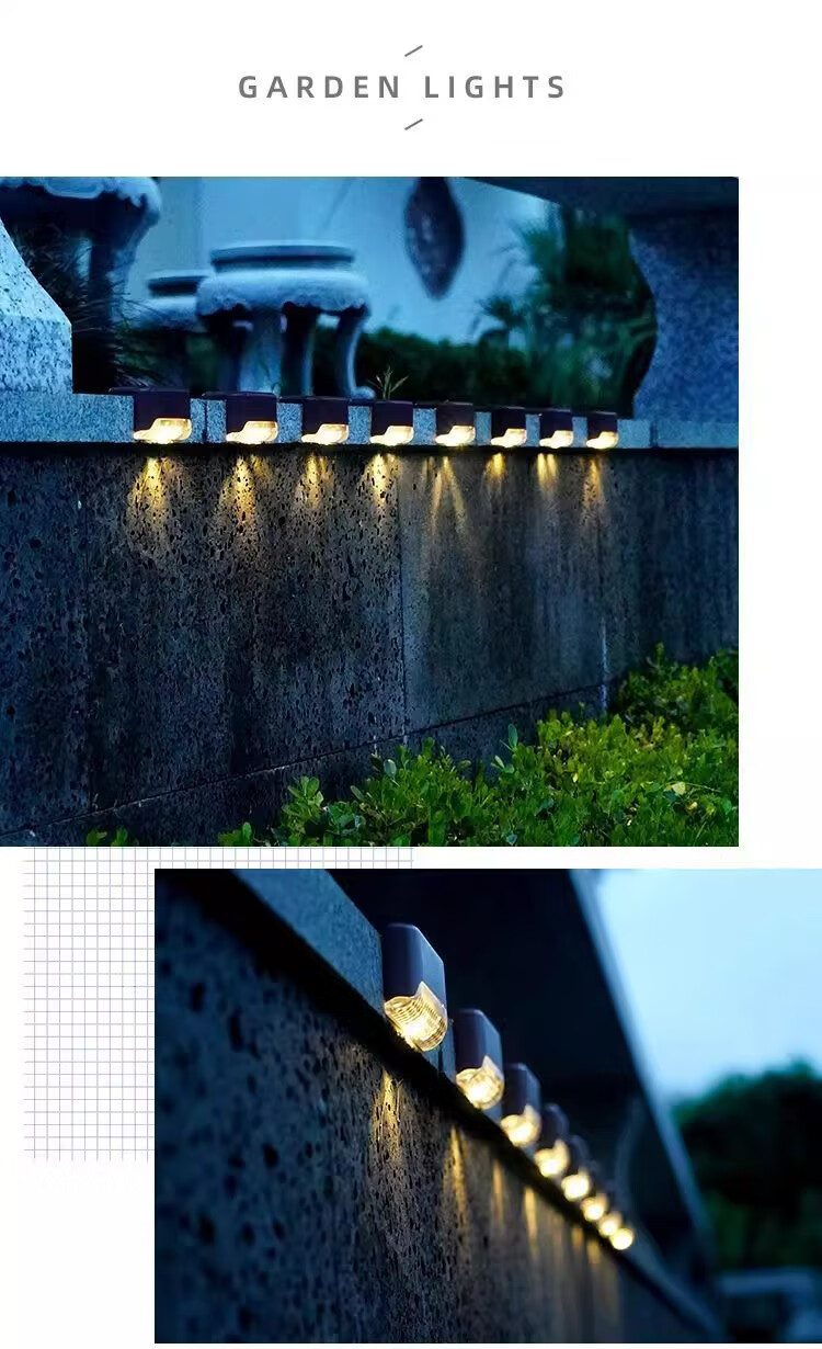 Solar courtyard step light, outdoor plant supplementary light, balcony night light, wall guide light, garden light, waterproof light, solar step light - black shell warm light (8 pieces)