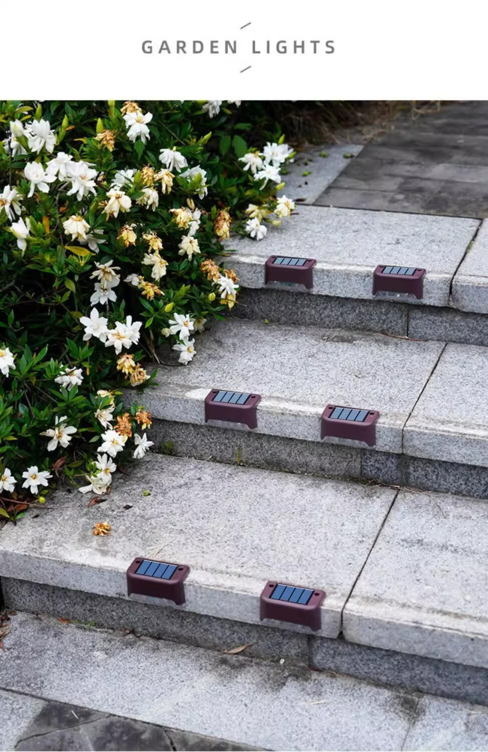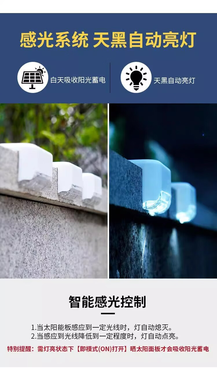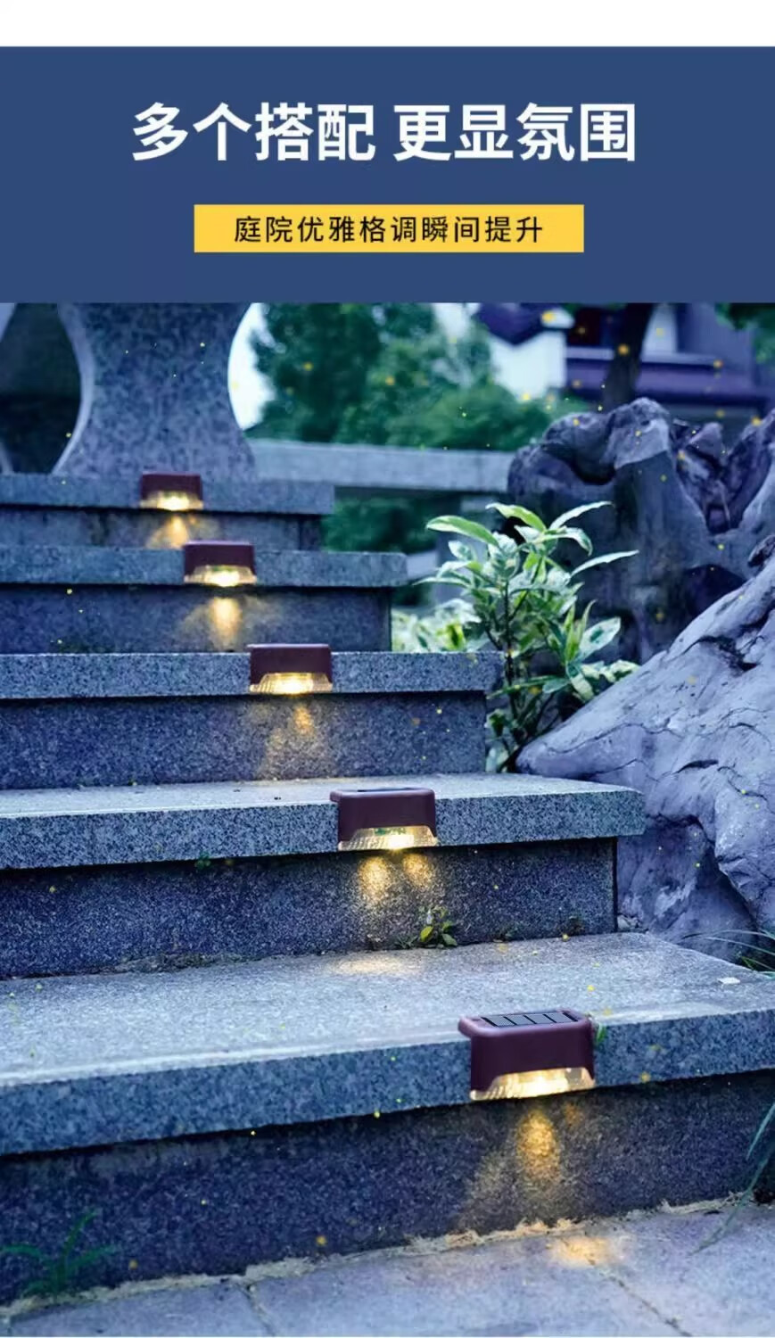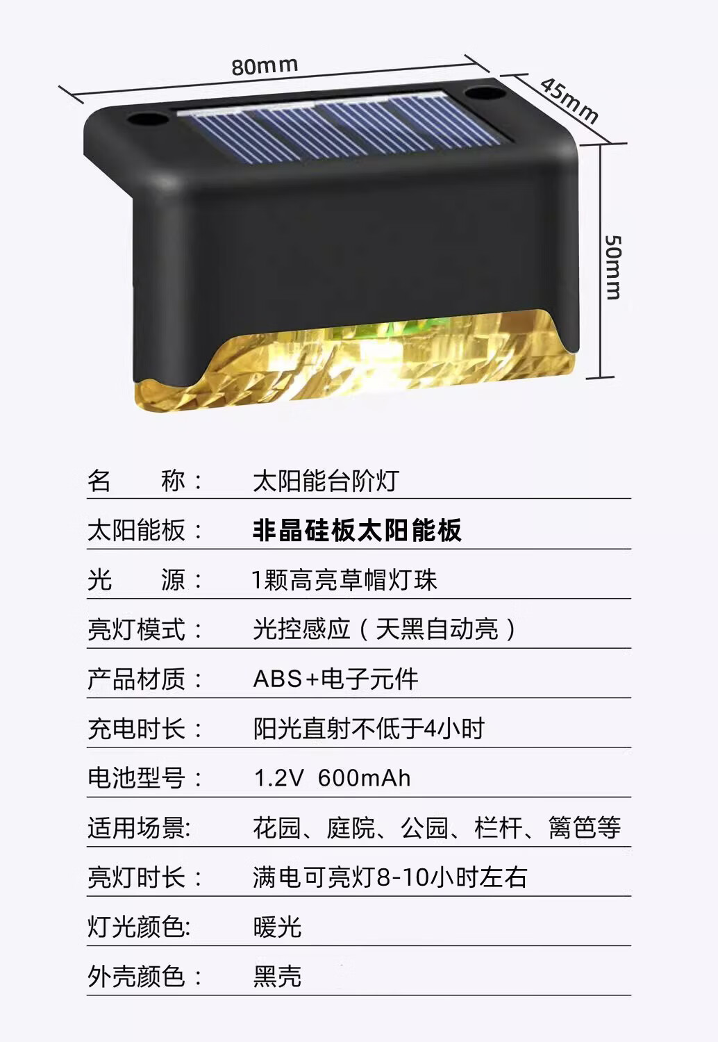 Solar courtyard step light, outdoor plant supplementary light, balcony night light, wall guide light, garden light, waterproof light, solar step light - black shell warm light (8 pieces)