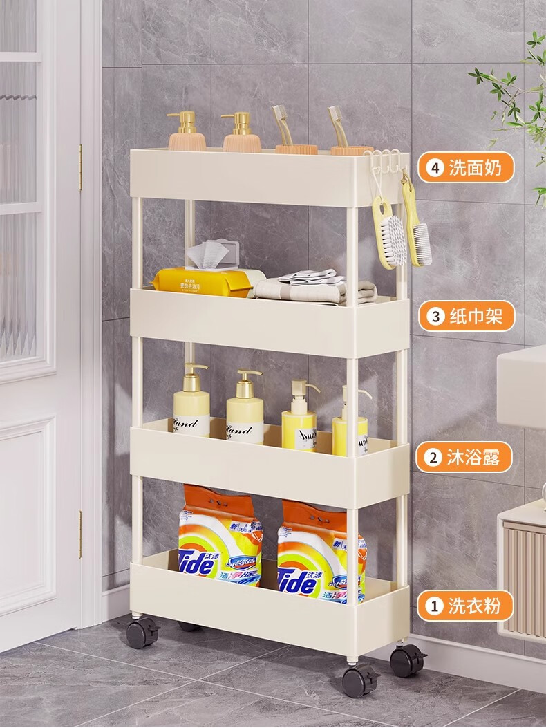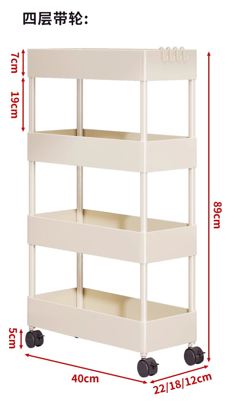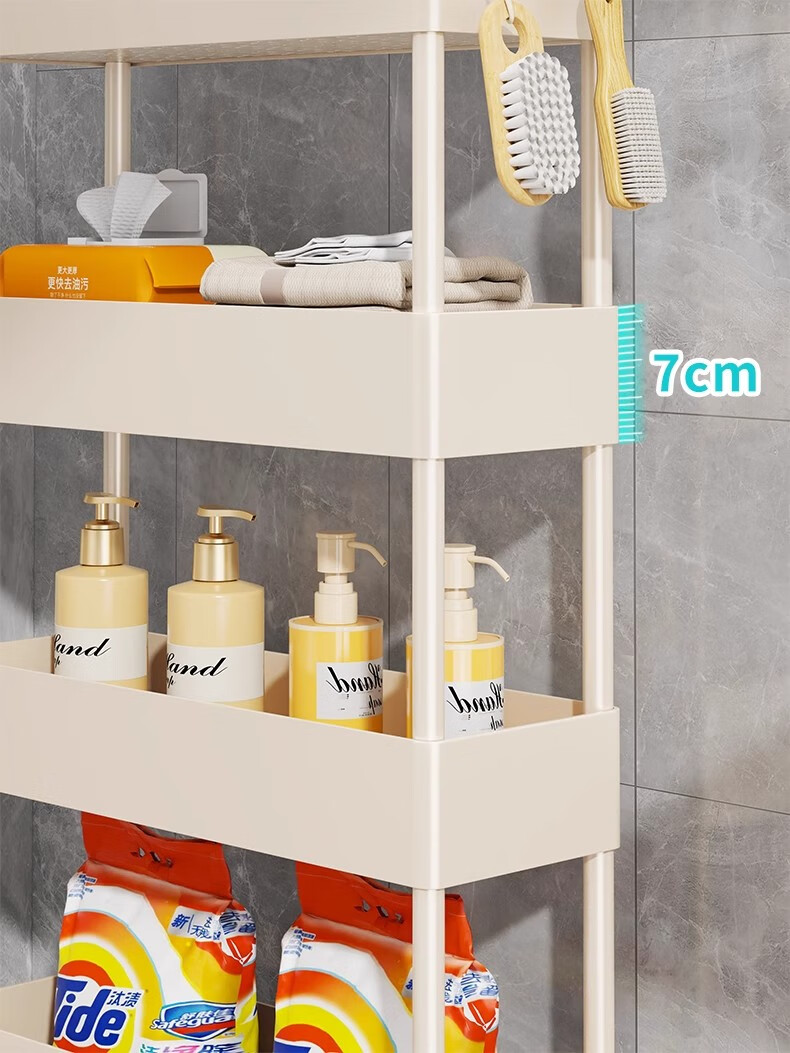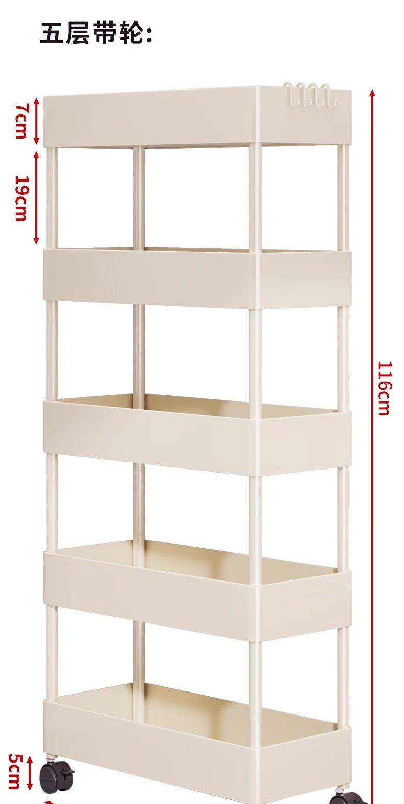 Fat Donglai's same style sandwich storage cabinet, bathroom storage rack, floor-standing trolley in the gap behind the bathroom door, kitchen wall, white five layers - with wheels, 22cm wide