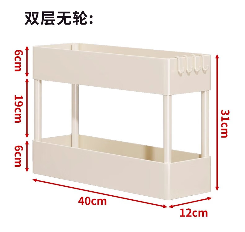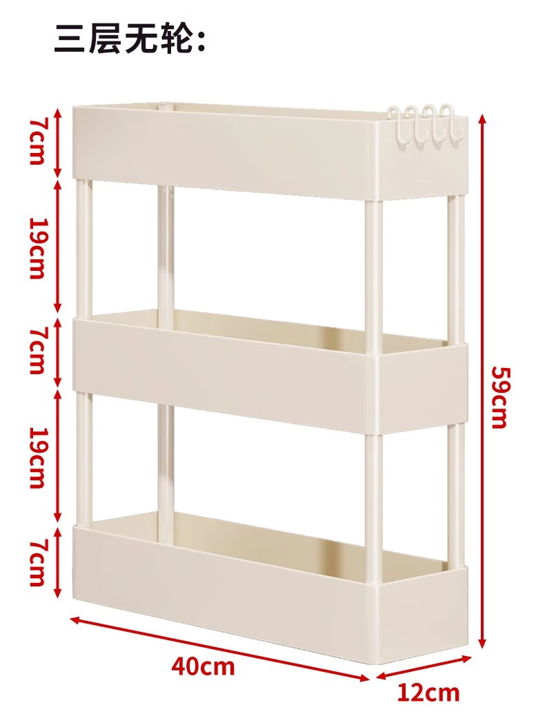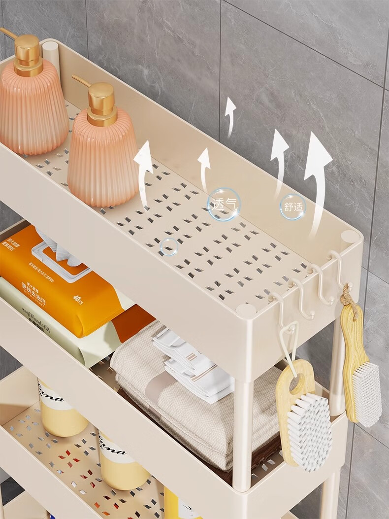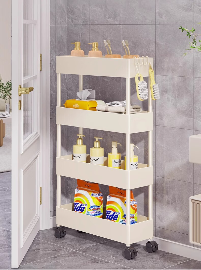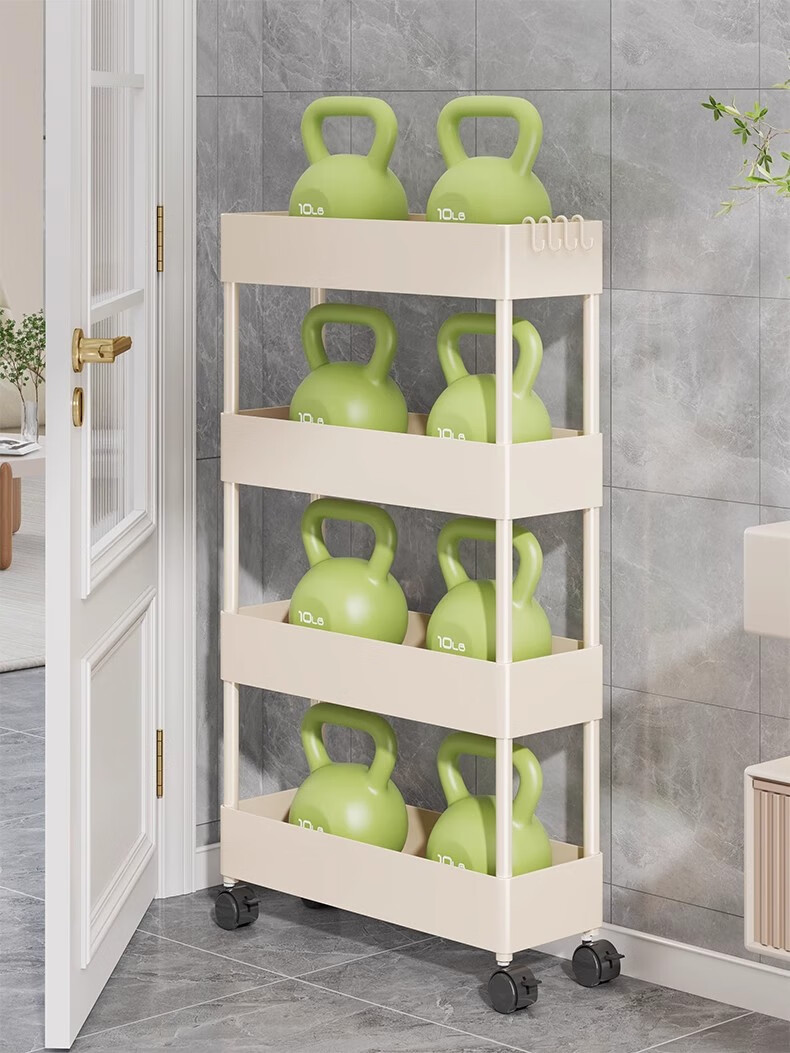 Fat Donglai's same style sandwich storage cabinet, bathroom storage rack, floor-standing trolley in the gap behind the bathroom door, kitchen wall, white five layers - with wheels, 22cm wide