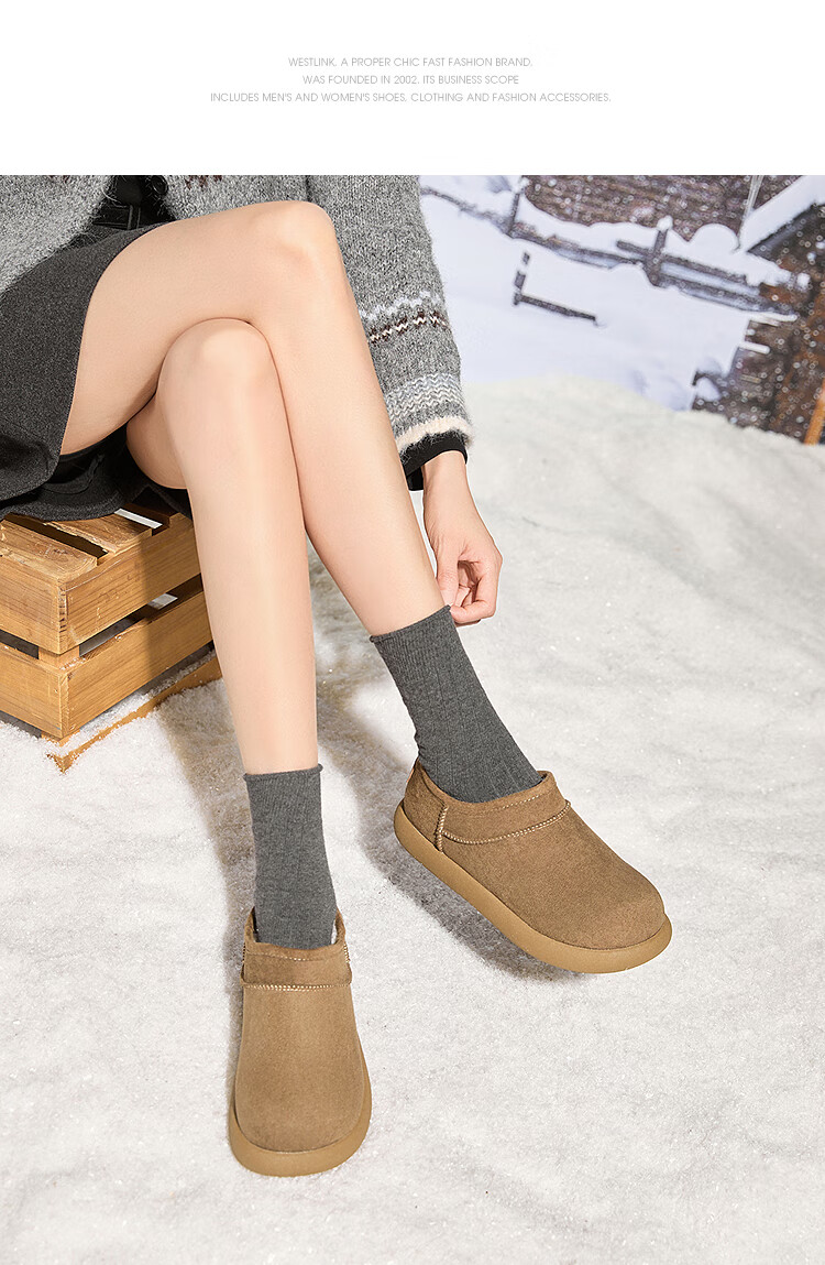 Westlink velvet snow boots for women 2025 new winter retro versatile low-cut short boots for outer wear warm thickened cotton shoes camel 38 (240)