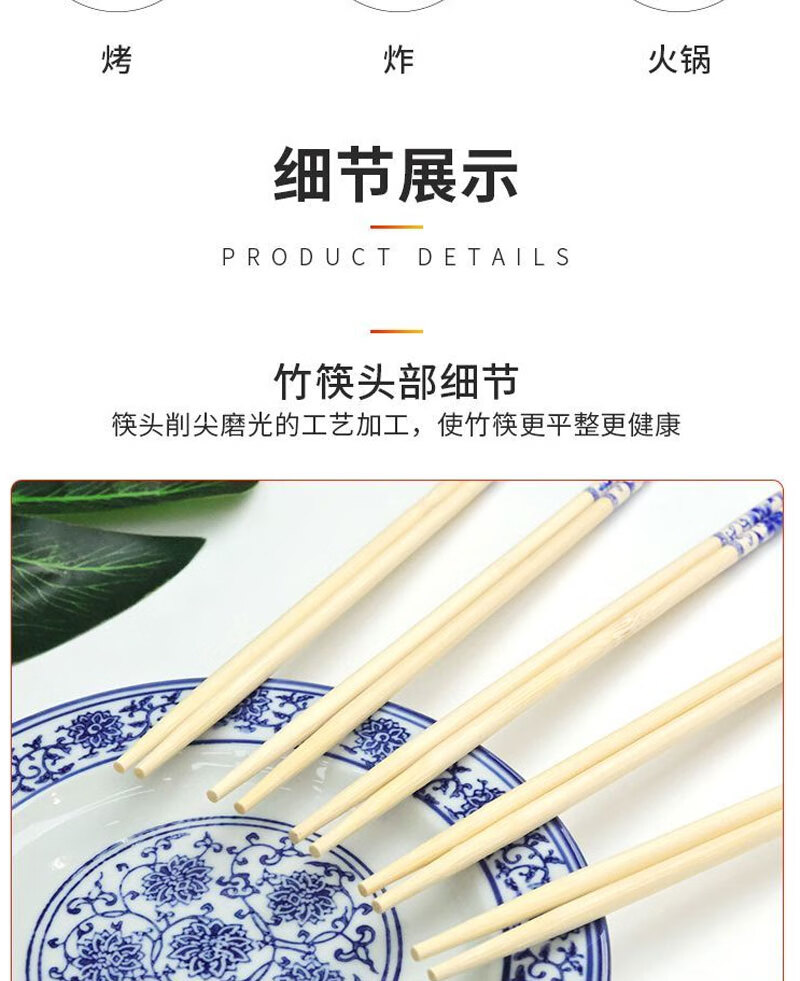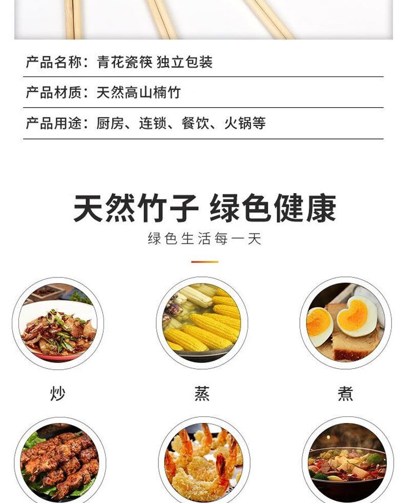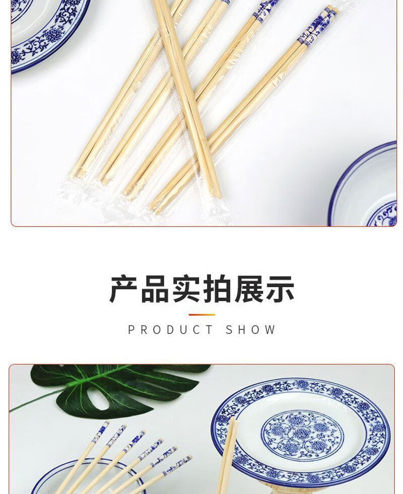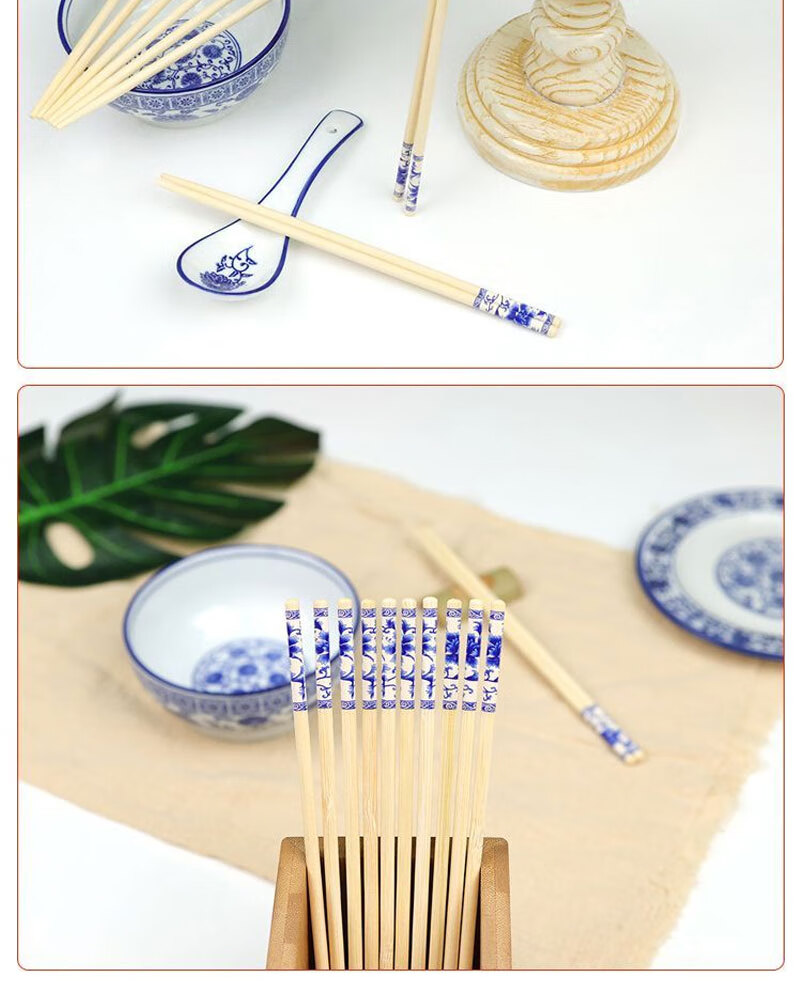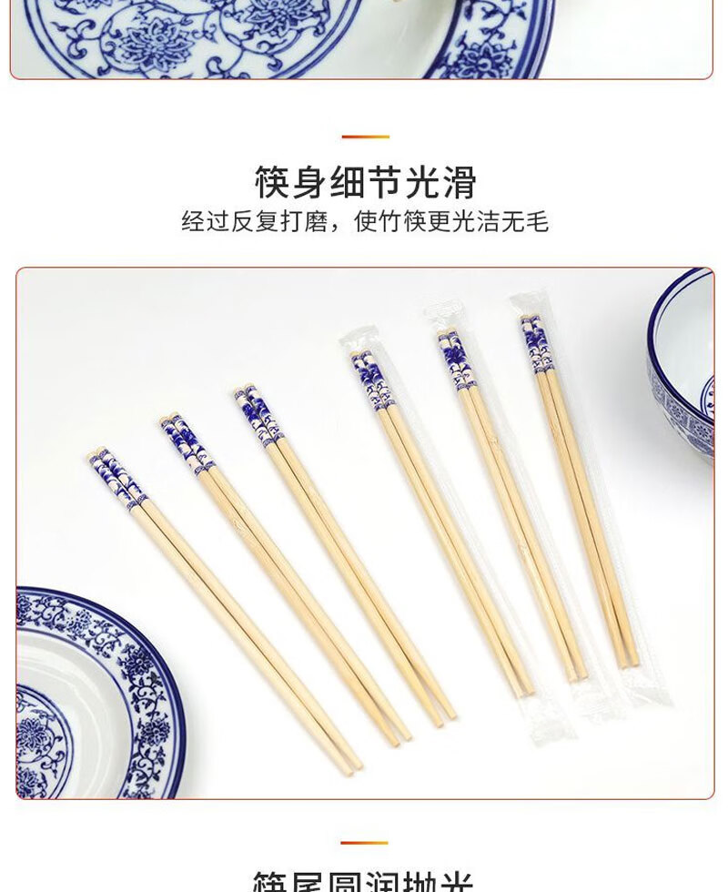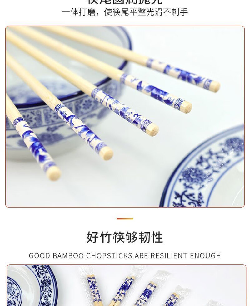 Disposable blue and white porcelain chopsticks individually packaged for home dinners and banquets packaged for commercial takeout, individually packaged, 50 pairs of blue and white chopsticks