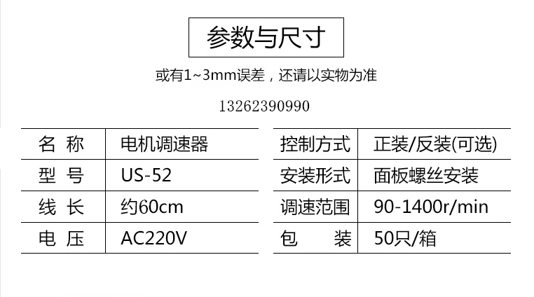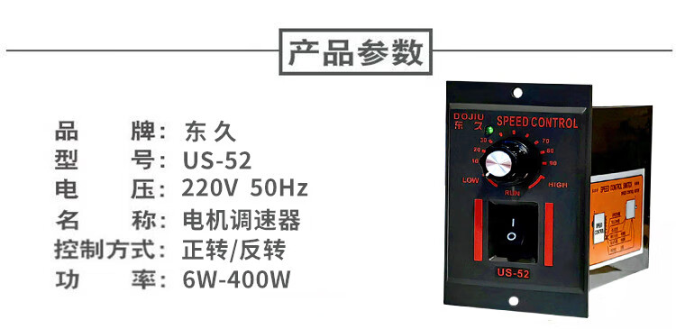 Dongjiu US-52 single-phase motor AC speed regulator 6W-250W motor switch 90W controller DC-51 US-52 25W