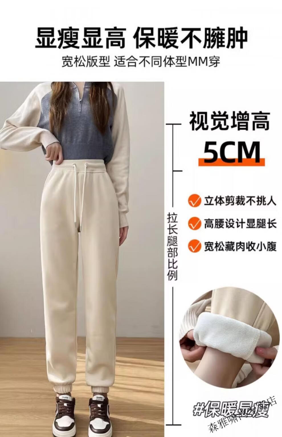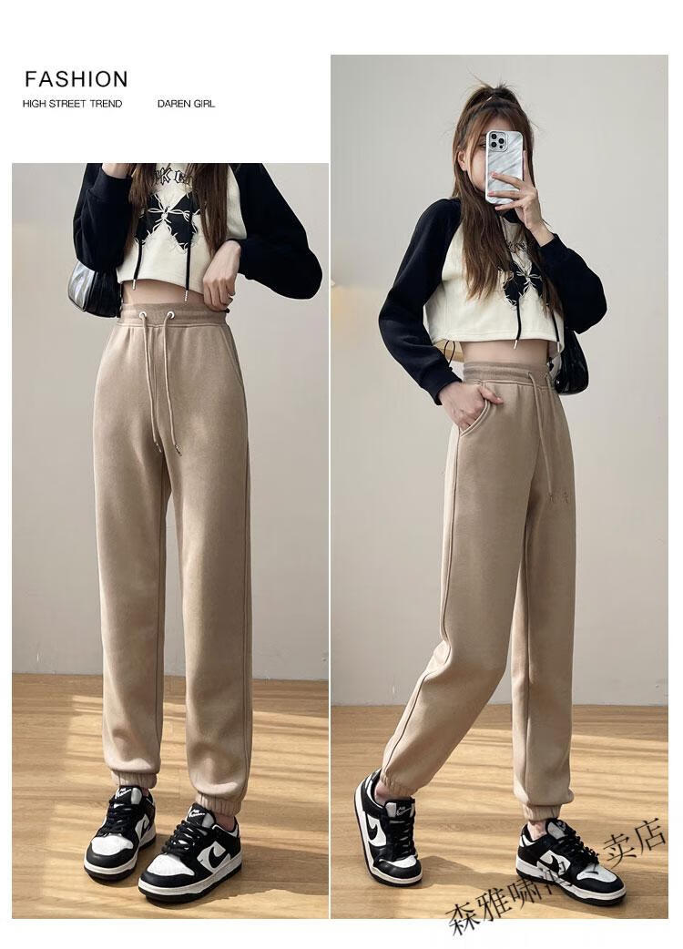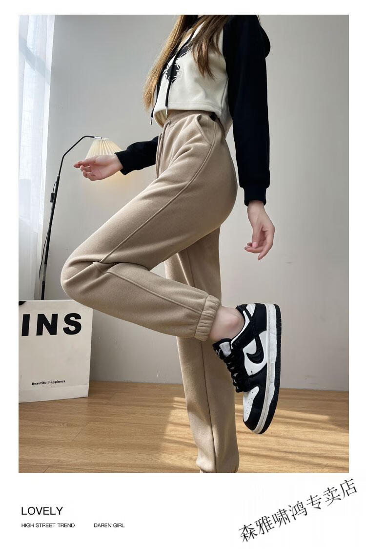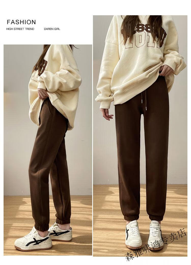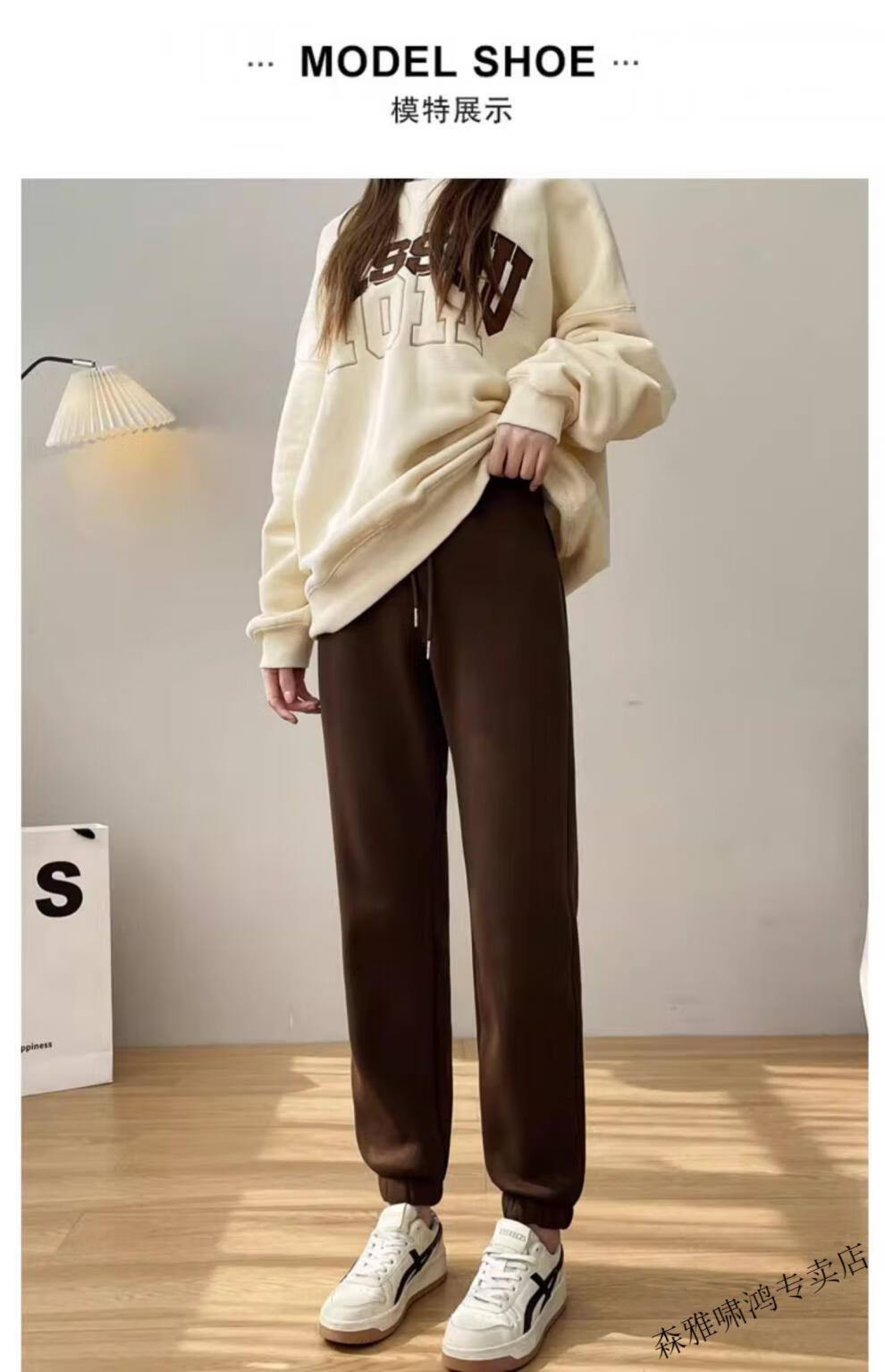 Ceium Kifmim special long pants for tall women, extra long winter warm plus velvet thickened sweatpants, loose legged casual pants, 100cm long, caramel color, polar fleece bloomers, M
