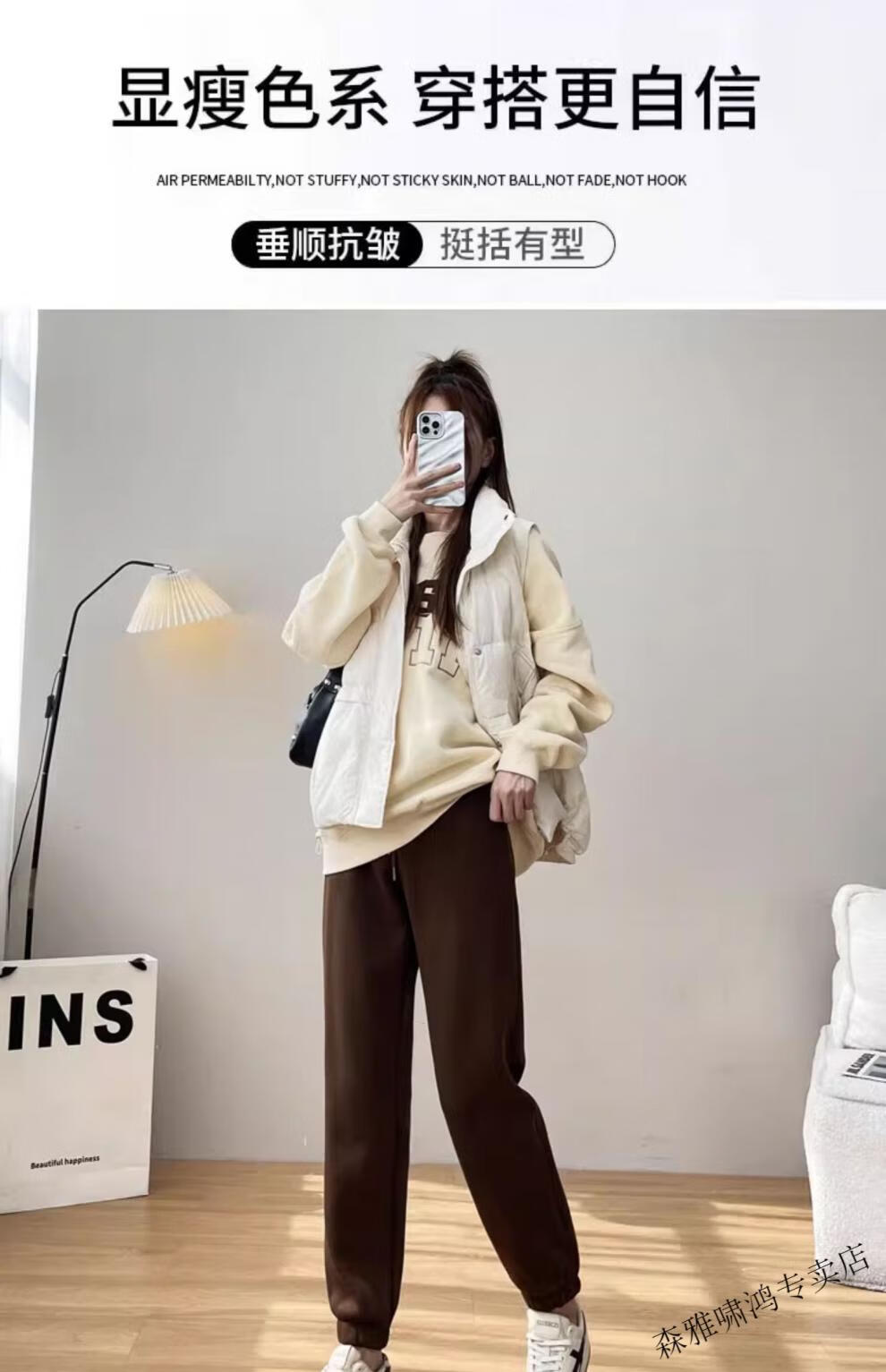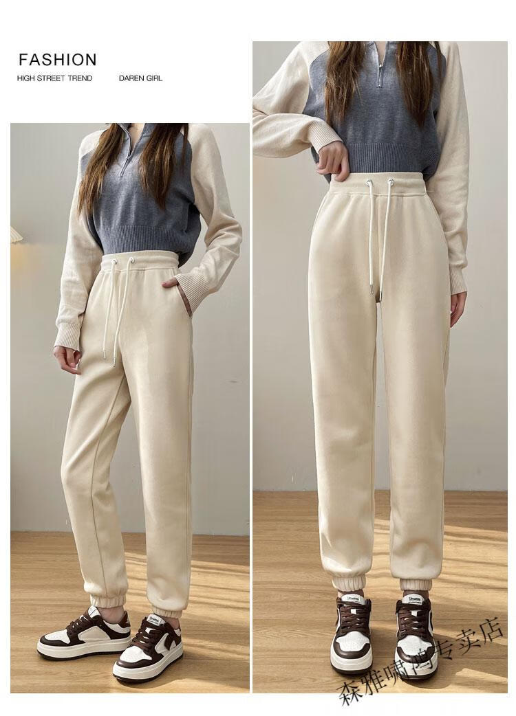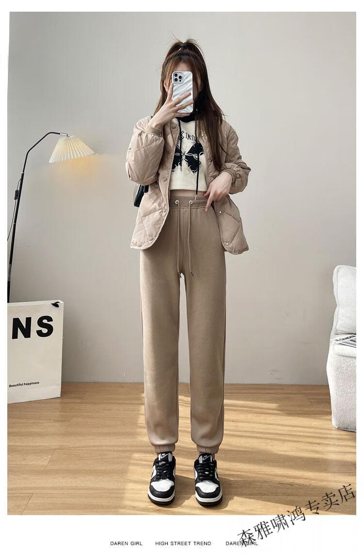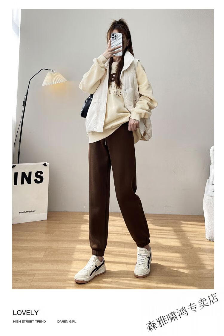 Ceium Kifmim special long pants for tall women, extra long winter warm plus velvet thickened sweatpants, loose legged casual pants, 100cm long, caramel color, polar fleece bloomers, M