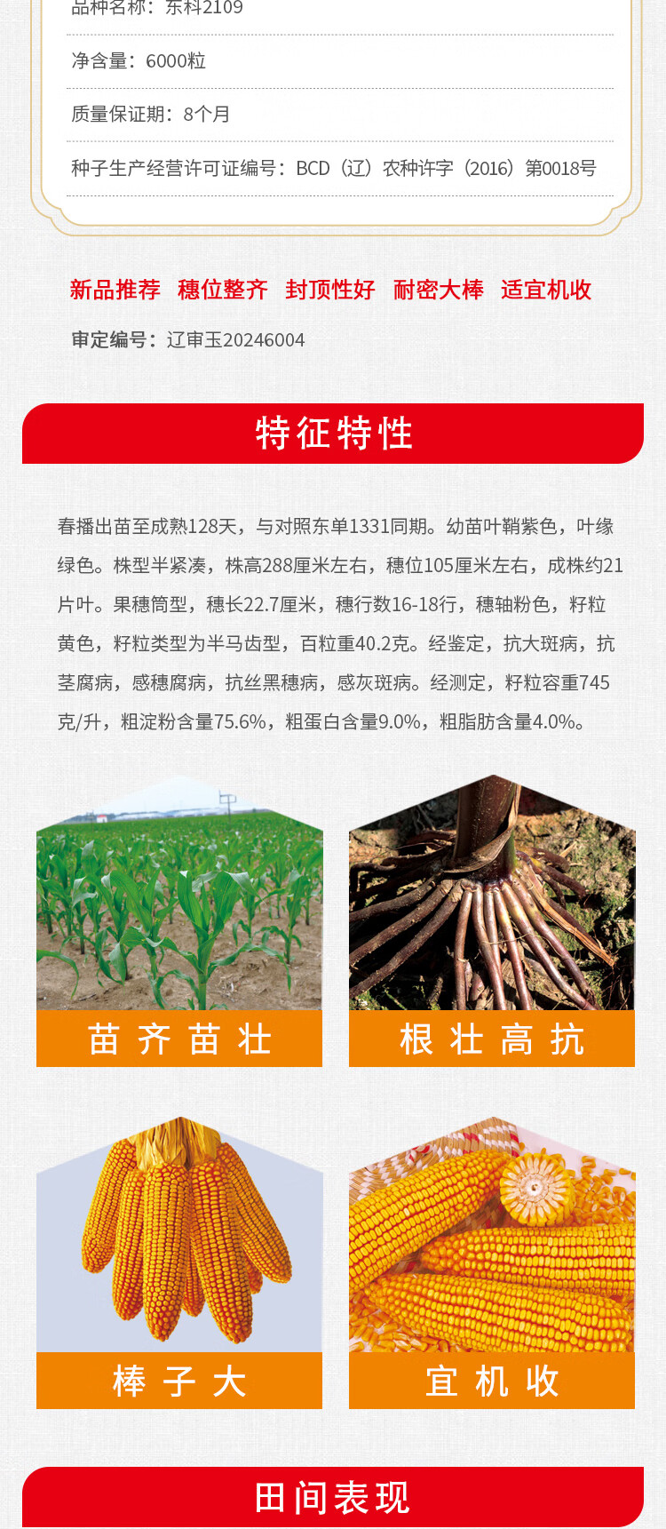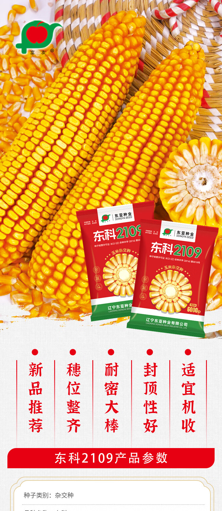 Штаб-квартира Fuyou, прямая доставка полевых семян кукурузы Dongke 2109, положение уха Ци Наими, большая палка, укупорочная, хорошая машина, урожай 6000 зерен
