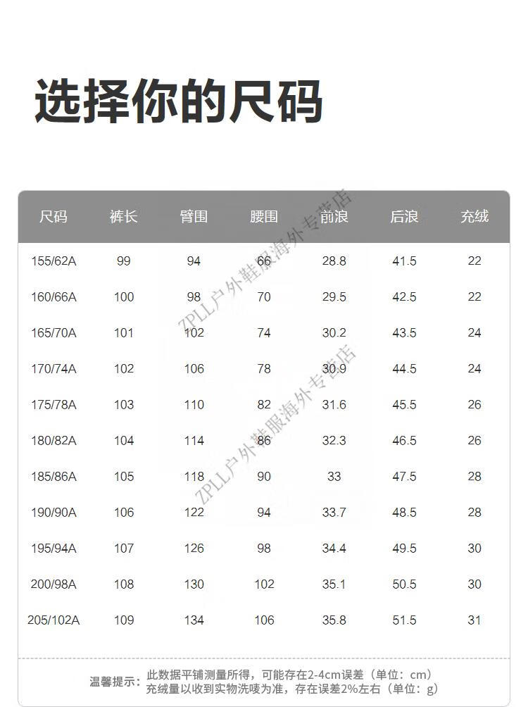 China (cm) 160-165/84-86 165-170 / 88-90 167-172 / 92-96 168-173 / 98-102 170-176 / 106-110