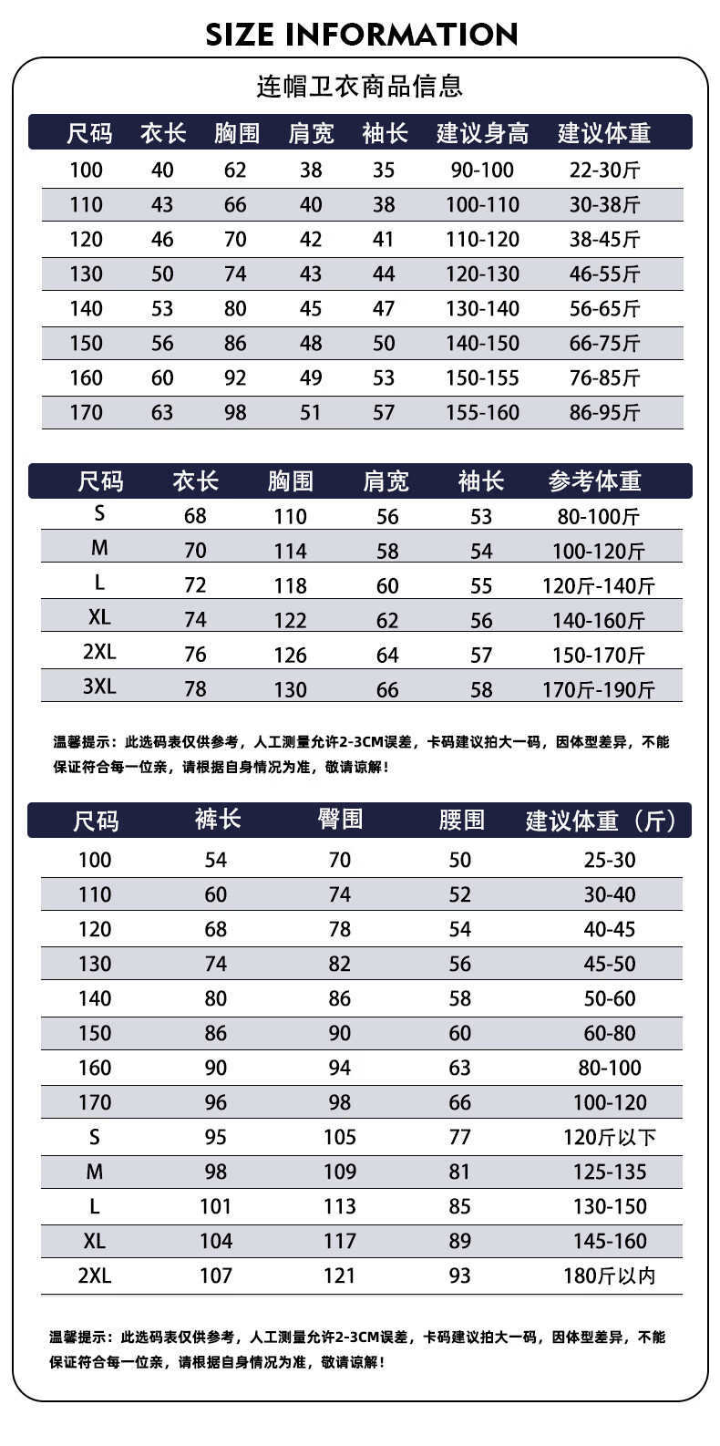 China (cm) 165 / 88-90 170 / 96-98 175 / 108-110 180 / 118-122 185 / 126-130
