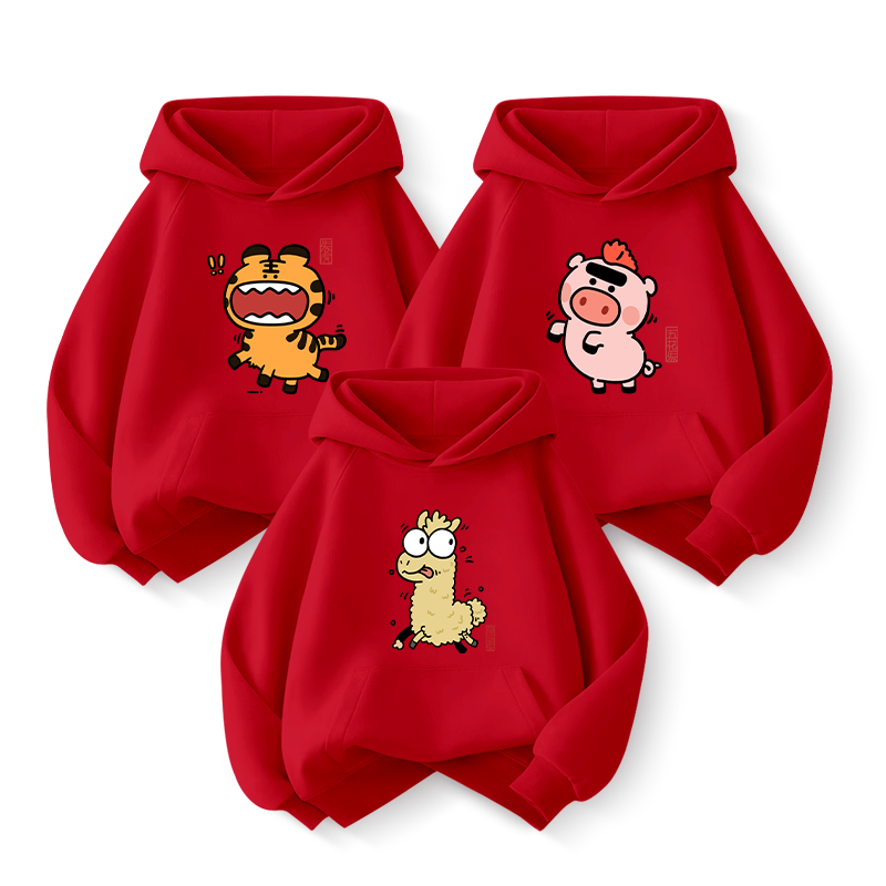 NASA STONE parent-child wear red sweatshirt plus velvet 2026 Year of the Horse animal year clothes plus velvet New Year's greeting clothes for a family of three or four red plus velvet style 2 110 children's size recommendation 30-38Jin Jin is equal to 0.5 kg