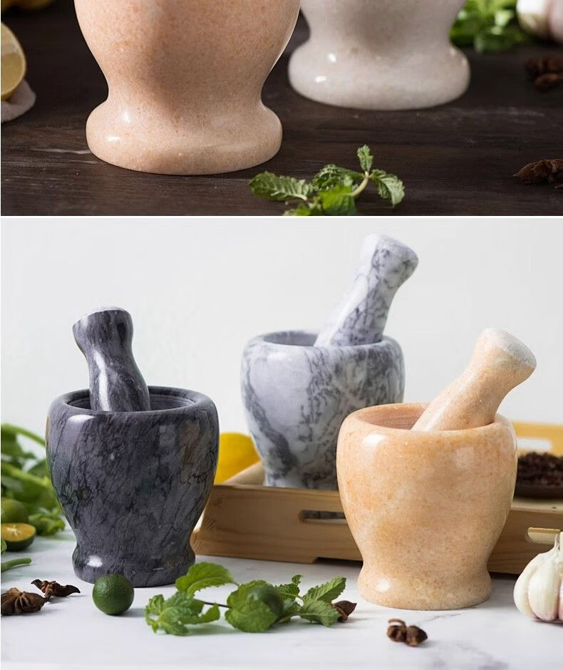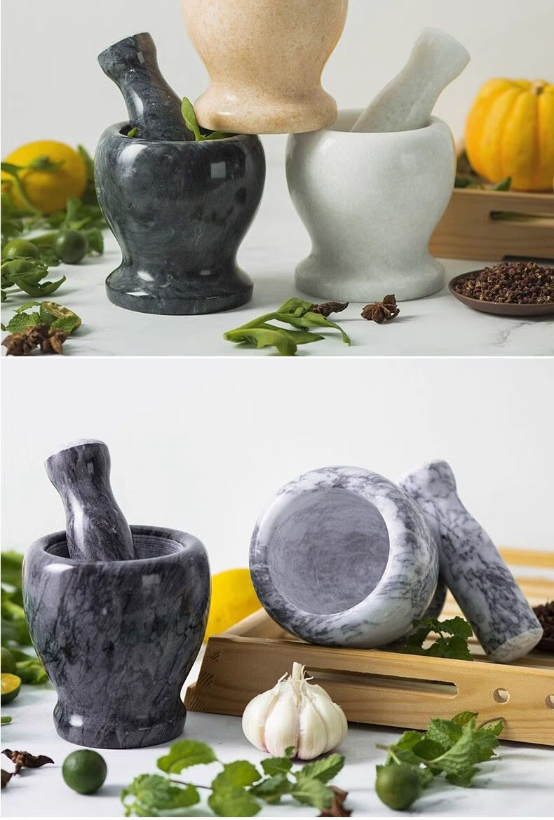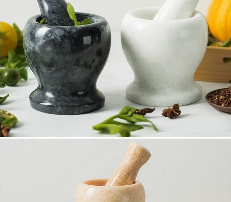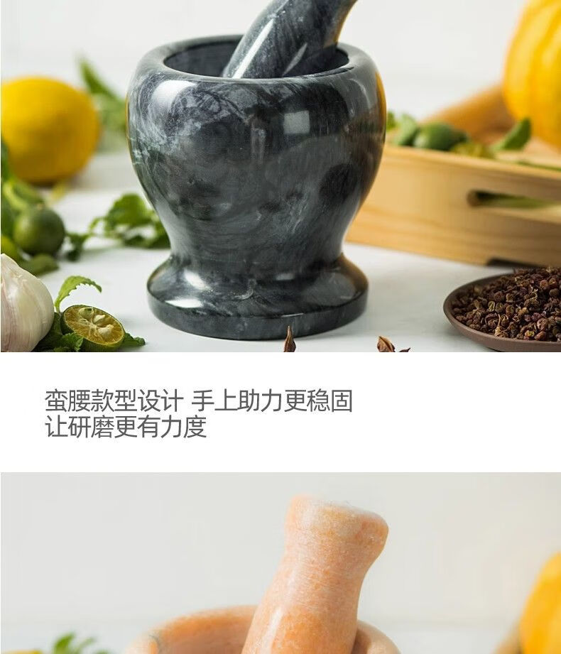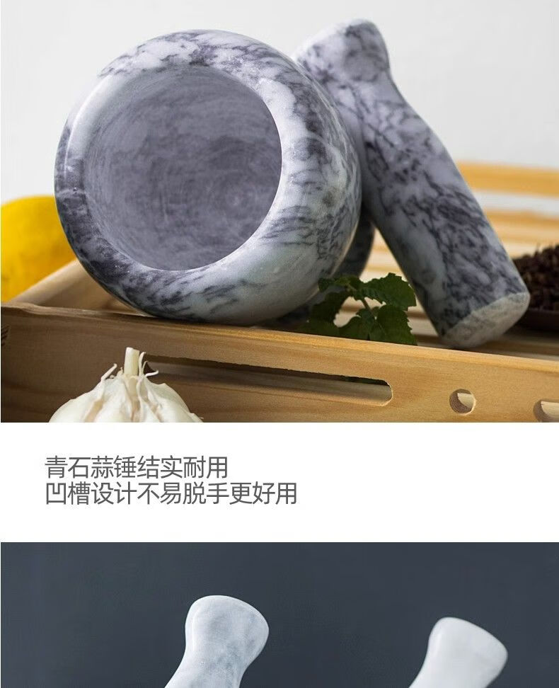 Garlic mortar, stone garlic pounder, stone mortar, household mashing jar, medicine pounding bowl, manual old-fashioned garlic masher, natural stone, Taishan stone black stone mortar with stone hammer