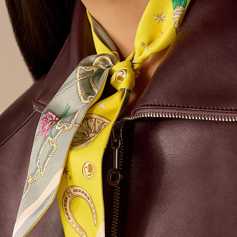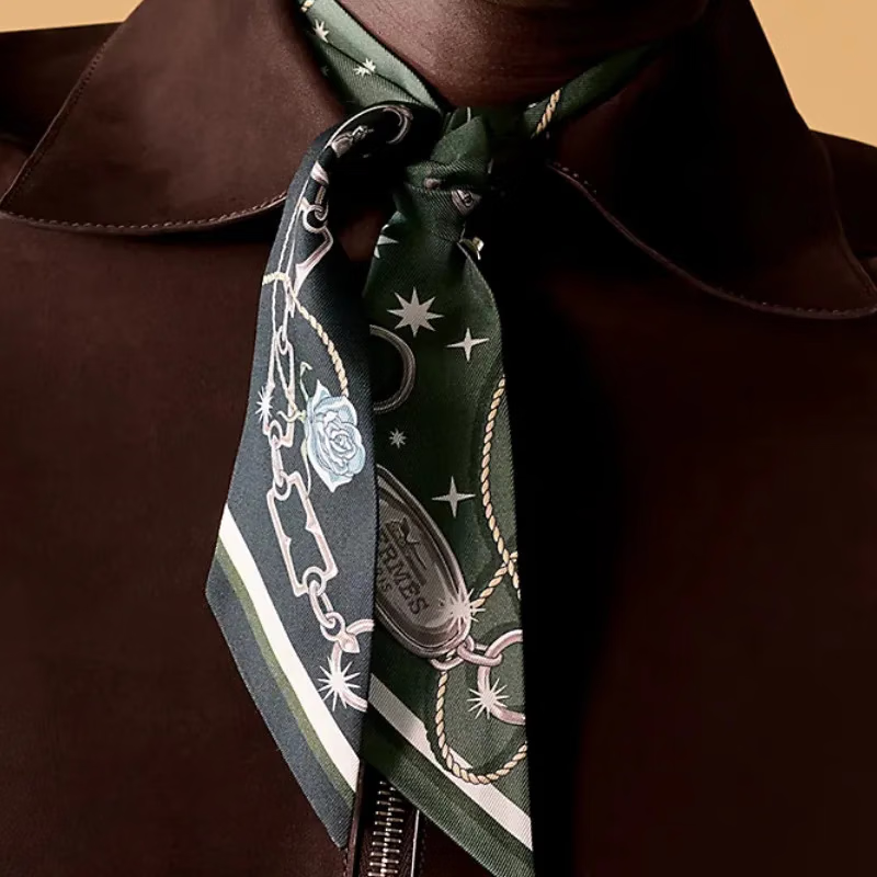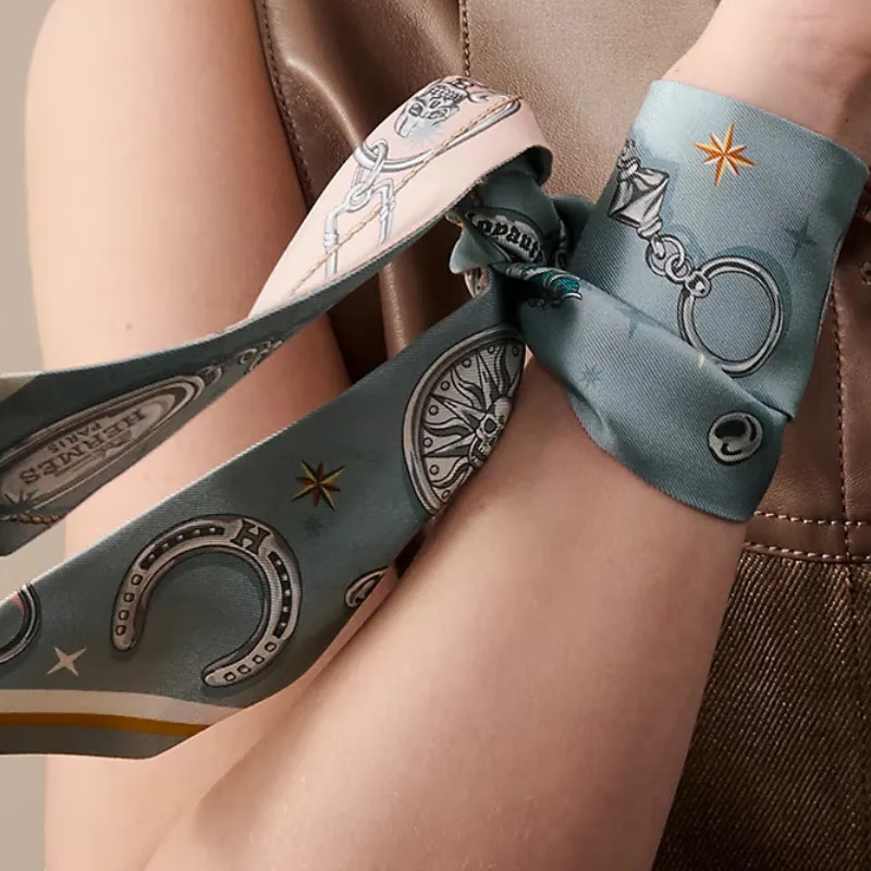 Hermes (HERMES) 25-year new style original design ribbon silk scarf fashionable and exquisite New Year gift for girlfriend H062743S 14 ice blue 86.5*5cm