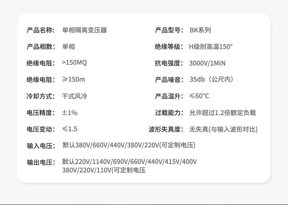 BK single-phase isolation transformer controls 380V to 220V to 110V127V36V24V1KVA2KW3K5KW10 BK-15KVA Remarks voltage