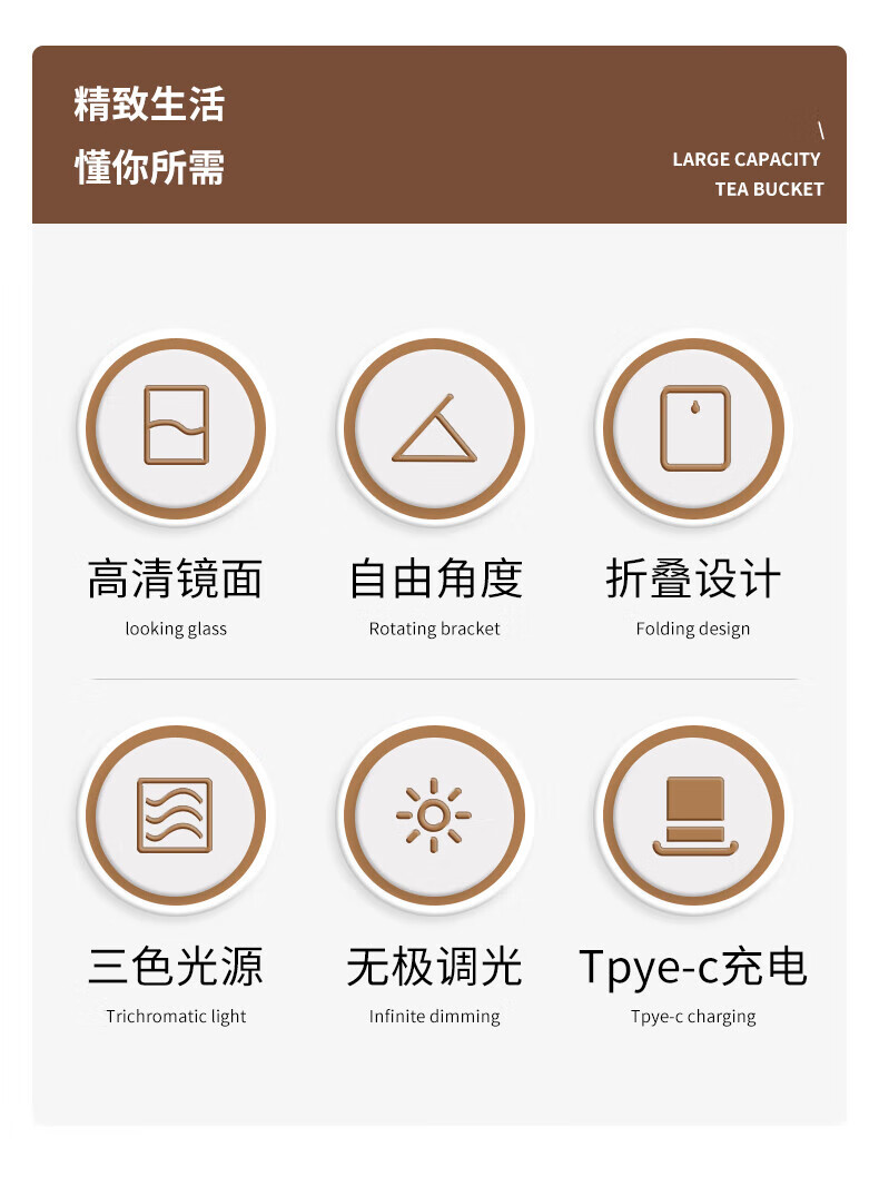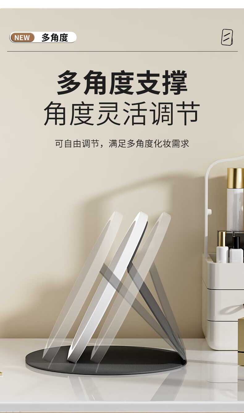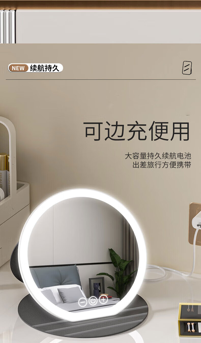 The same beauty device smart makeup mirror with light LED three-color high-definition rechargeable foldable dressing mirror for student dormitory desktop travel portable handheld small 2025 round makeup mirror