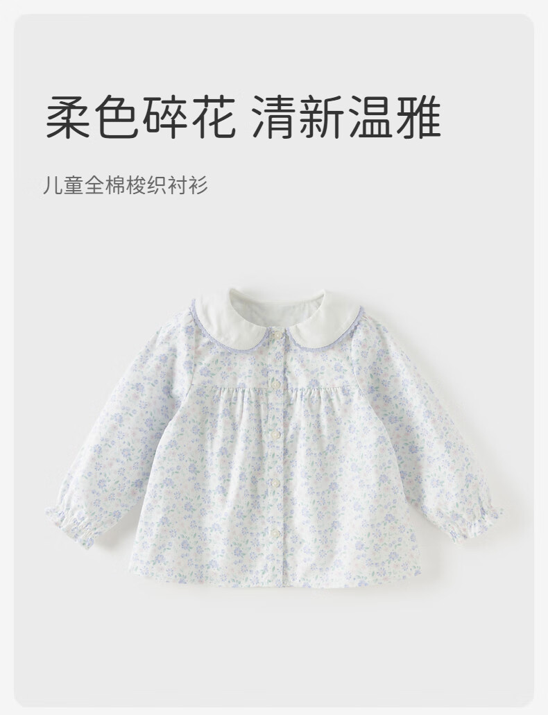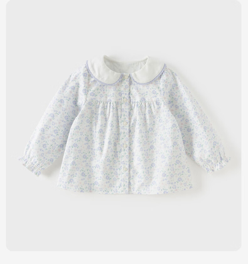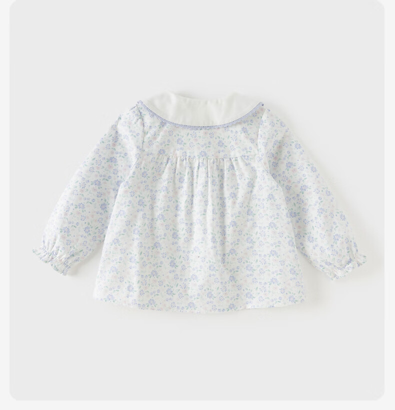 DAVE&BELLA children's shirt 2026 spring new pure cotton girls' shirt baby girl long-sleeved bottoming shirt children's top small floral print ready stock 90 cm (recommended height 80-90cm)