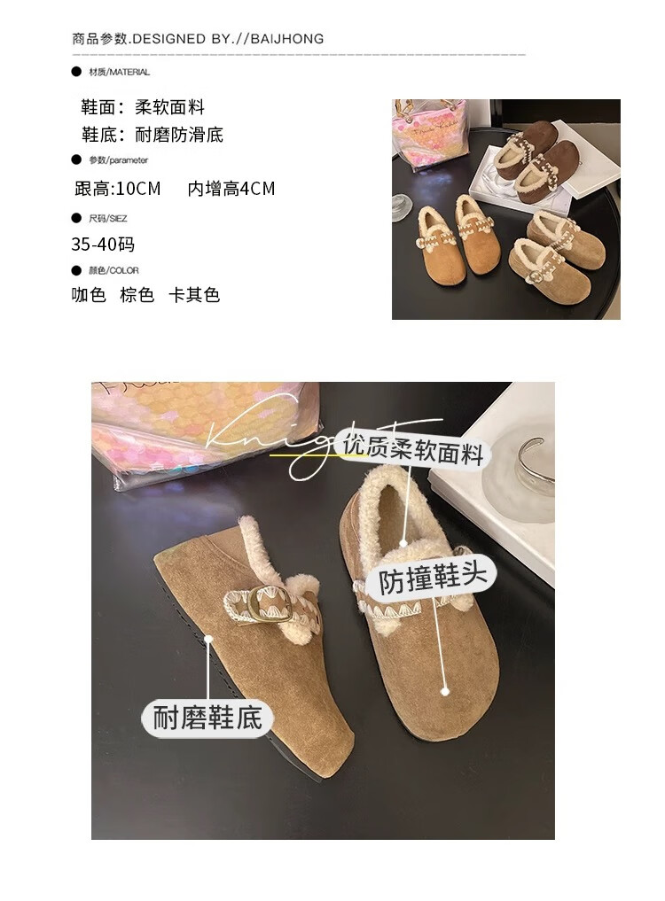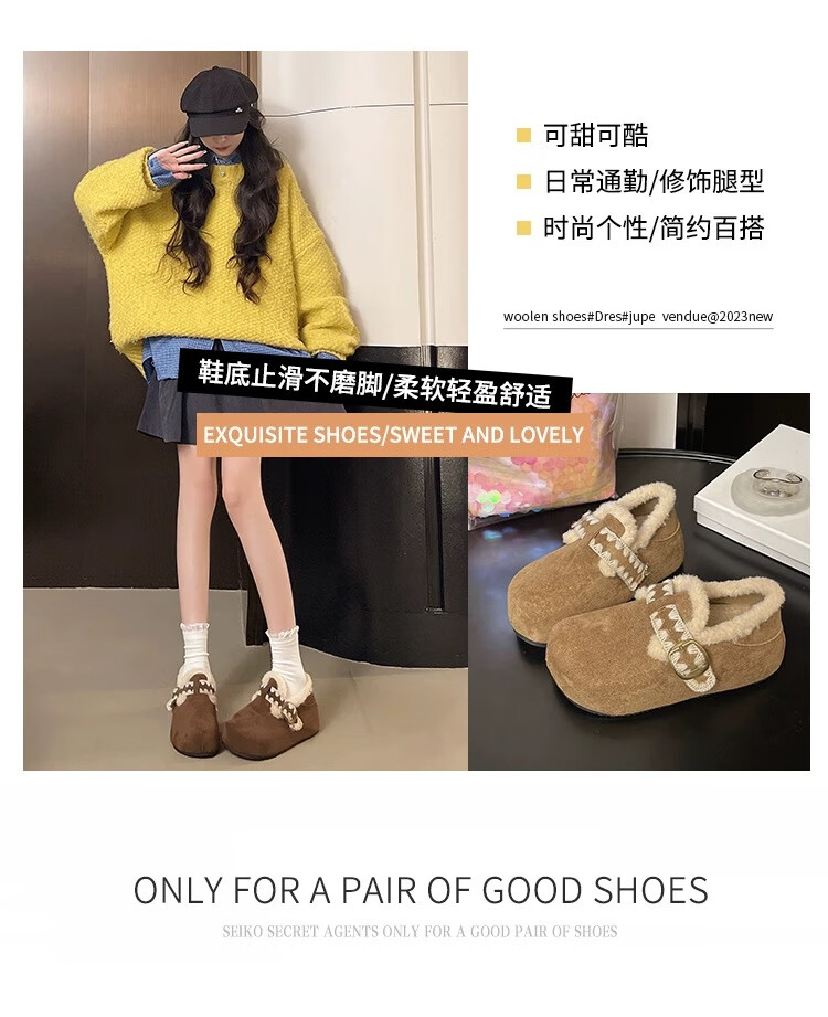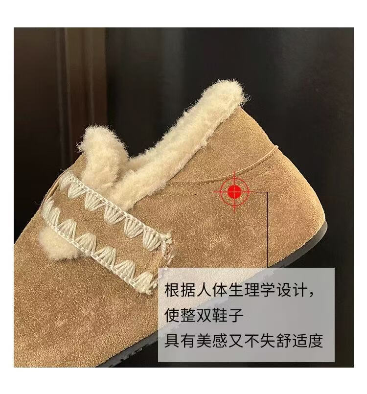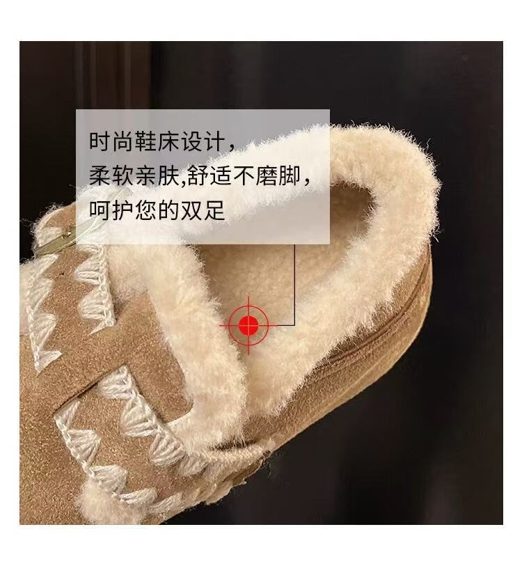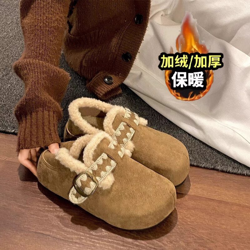 Woodpecker Retro Khaki Thick Sole Plus Velvet Cotton Shoes Women's 2025 Winter New Warm Birkenstock Shoes Furry Snow Boots Khaki 38 (240mm)