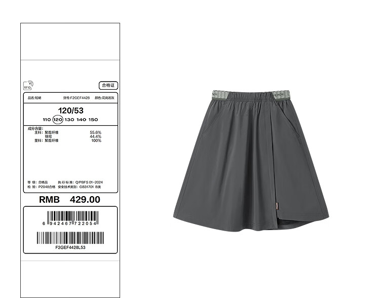 MiniPeace Children's Clothing Winter New Girls Short Skirt F2GEF4428 Granite Gray 110