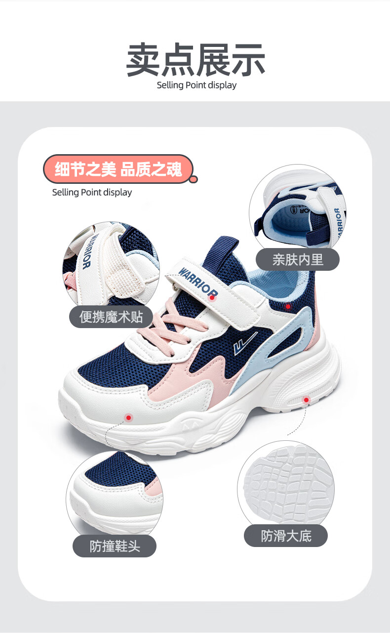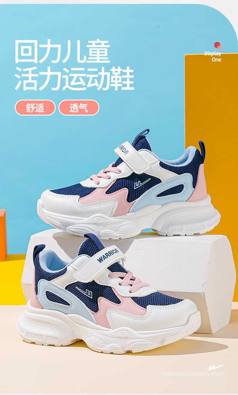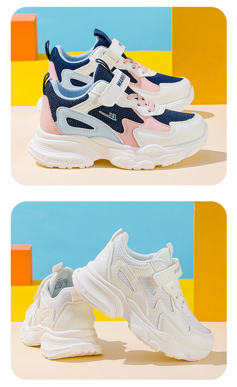 Pull back children's shoes children's sports shoes 2026 spring new girls campus breathable casual shoes fashionable soft sole dad shoes dark blue white light blue -2042 34