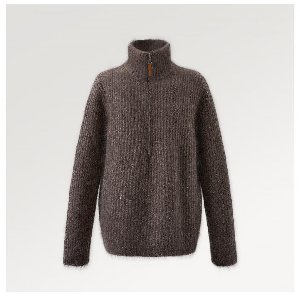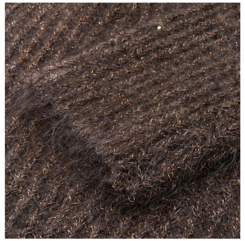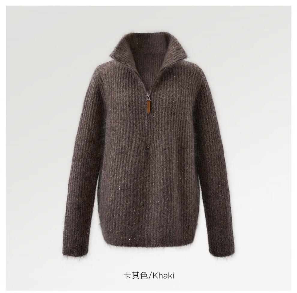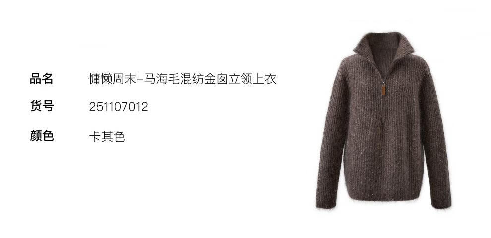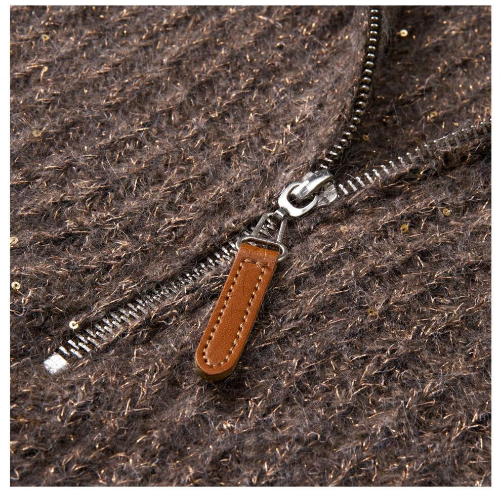 SIQIYOUNG Lazy Weekend-Mohair Blended Gold Chimney Stand Collar Top Simple Retro Zipper Sweater Khaki One Size F