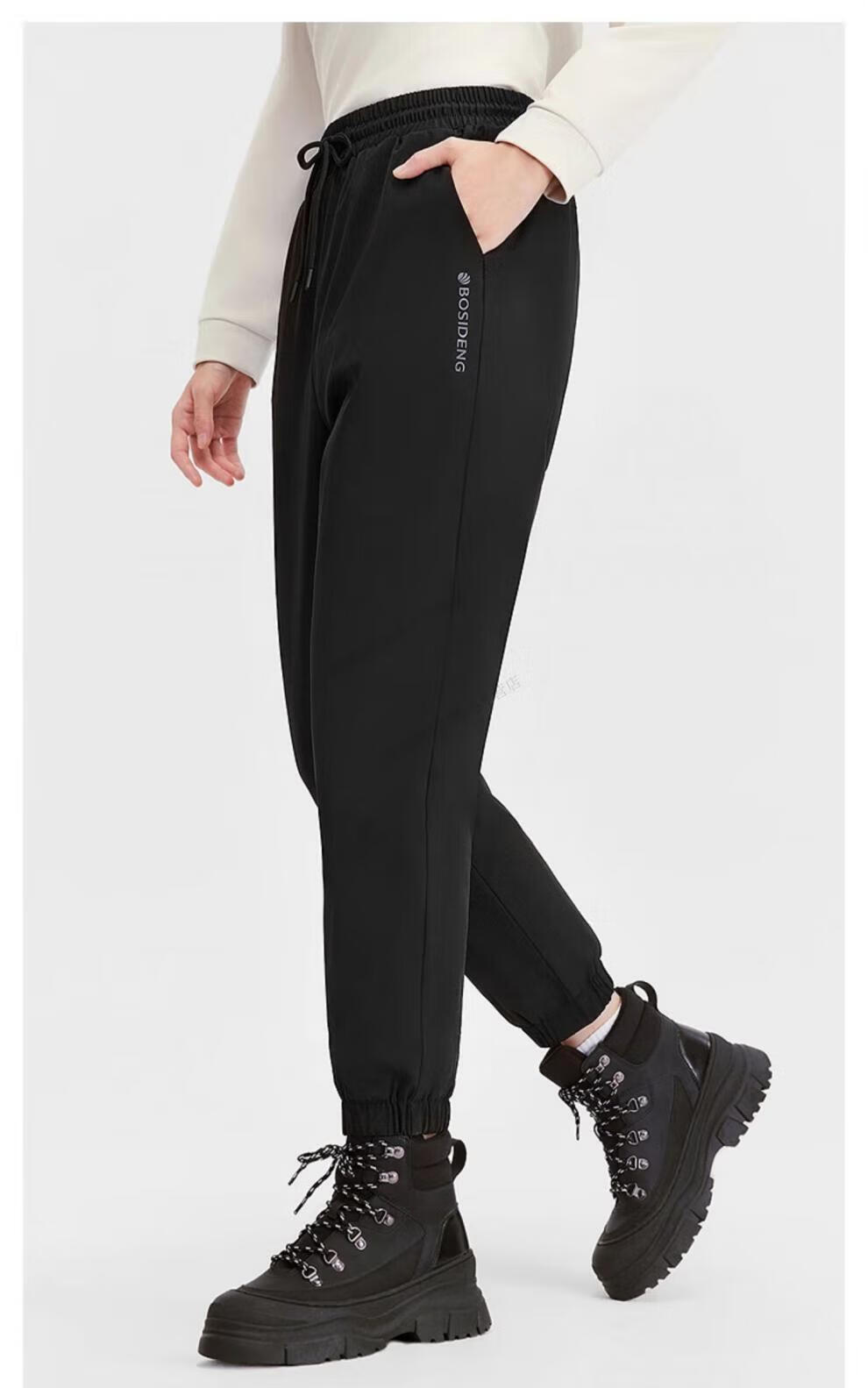 BOSIDENG 2025 New Women's Outerwear Autumn and Winter Down Pants Home Casual Tie-Leg Cotton Pants B250445102 Black 8056 XS 155_62A