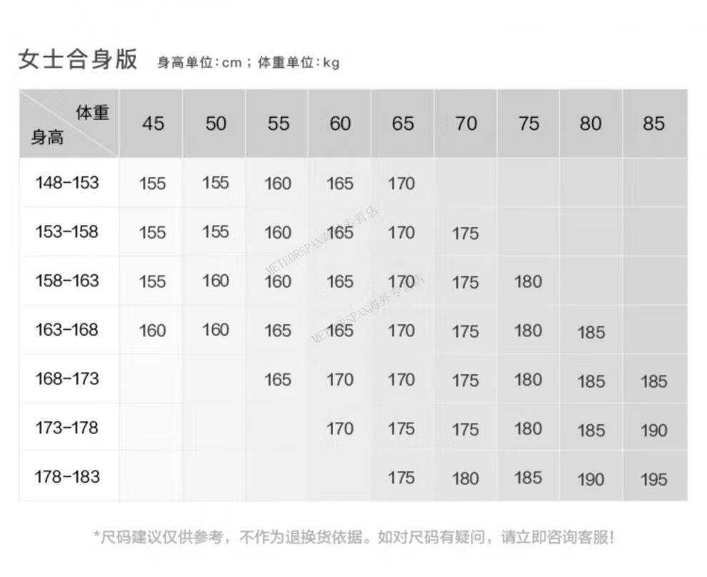 China (cm) 160-165/84-86 165-170 / 88-90 167-172 / 92-96 168-173 / 98-102 170-176 / 106-110