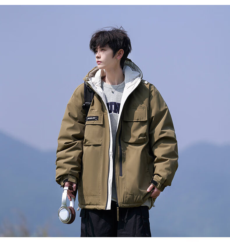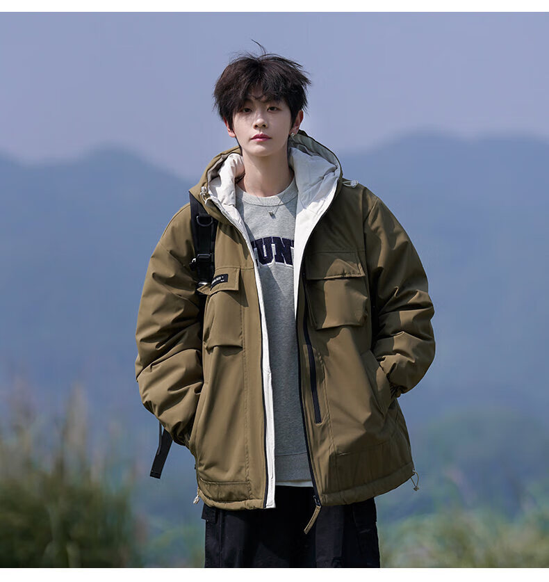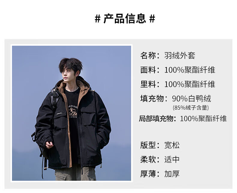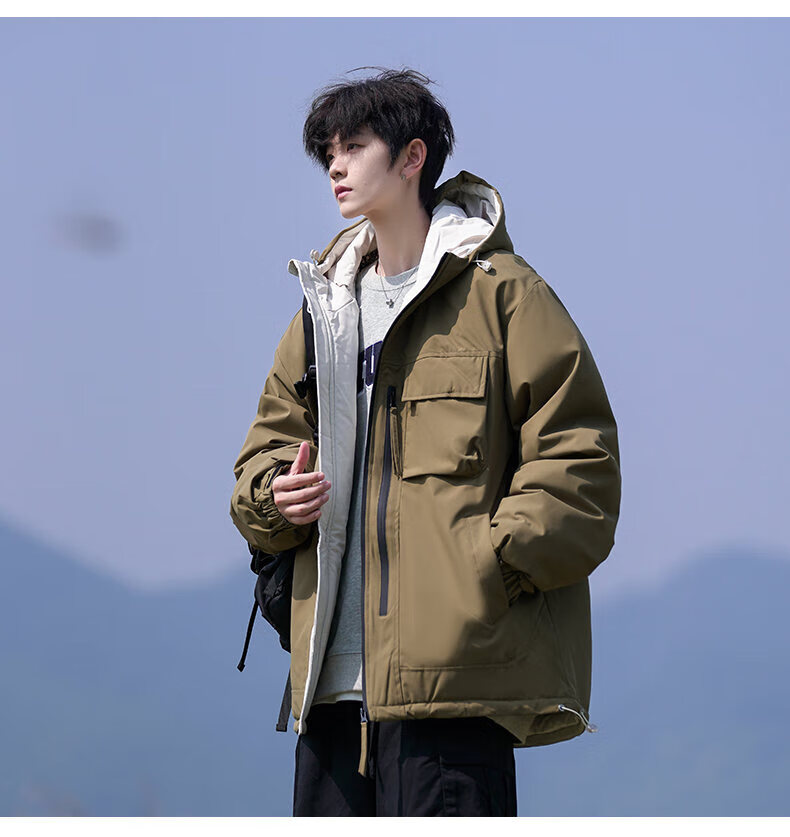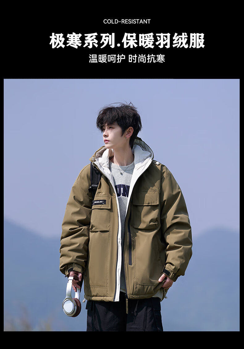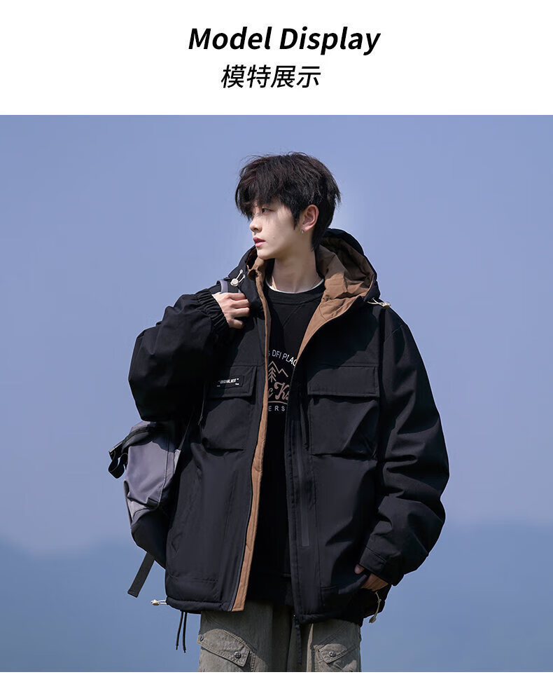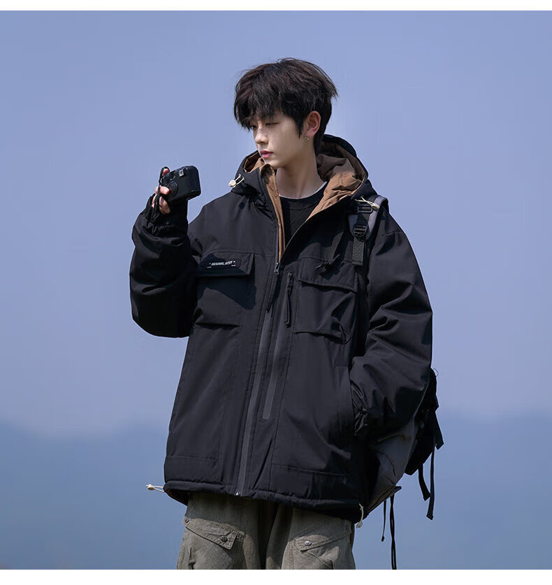 JEEP SPIRIT Daunenjacke Herren 2025 Winter American Plus Size Weiße Entendaunen Warme Daunenjacke mit Kapuze Schwarz 2XL