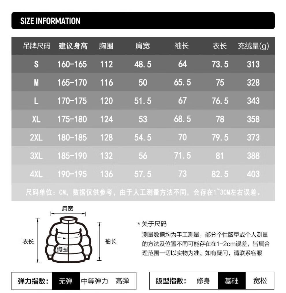 China (cm) 165 / 88-90 170 / 96-98 175 / 108-110 180 / 118-122 185 / 126-130