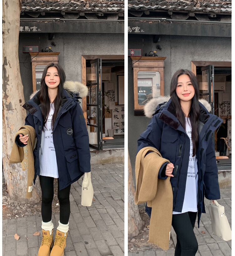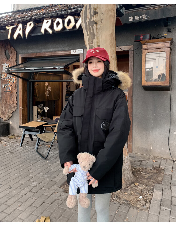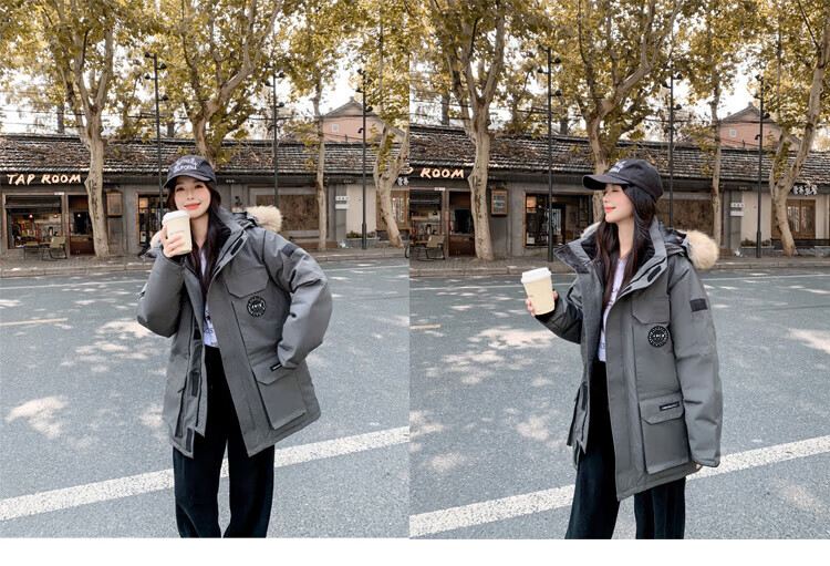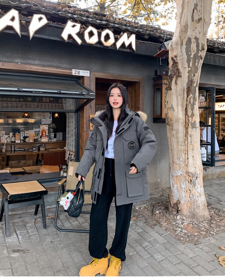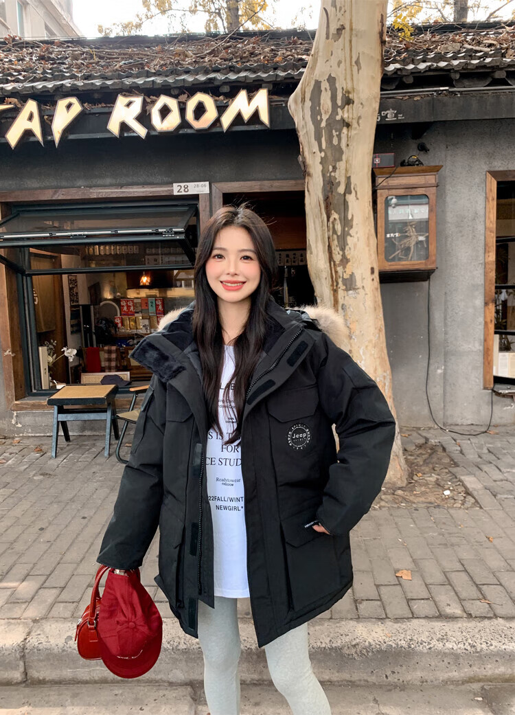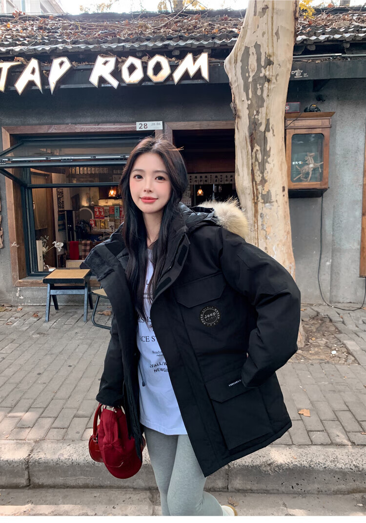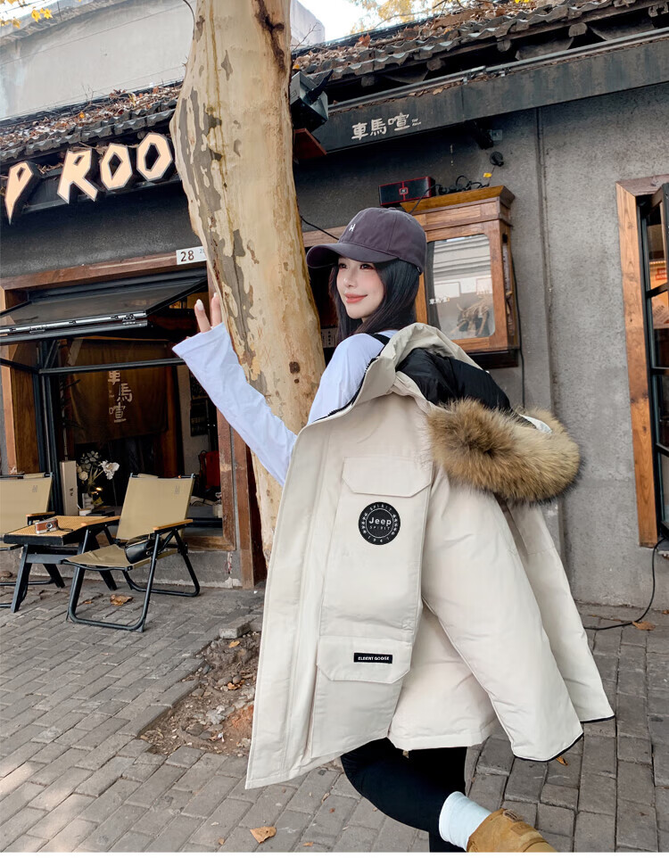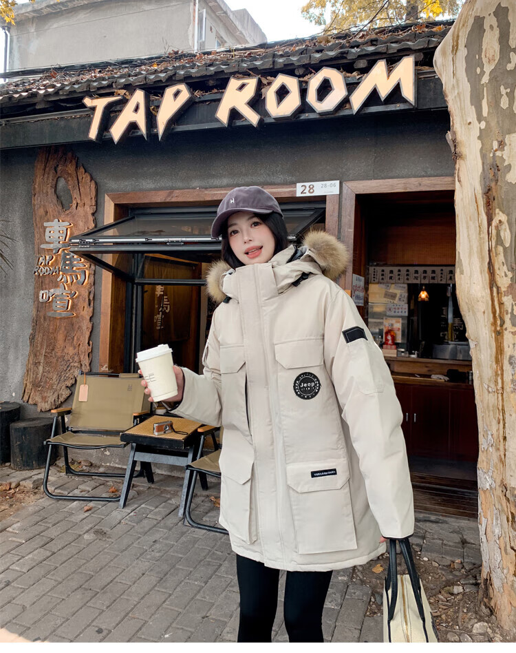 JEEP SPIRIT Jeep Parker Down Jacket Men's and Women's Winter Mid-Length Outdoor Extreme Cold Workwear Thickened Jacket Gray S