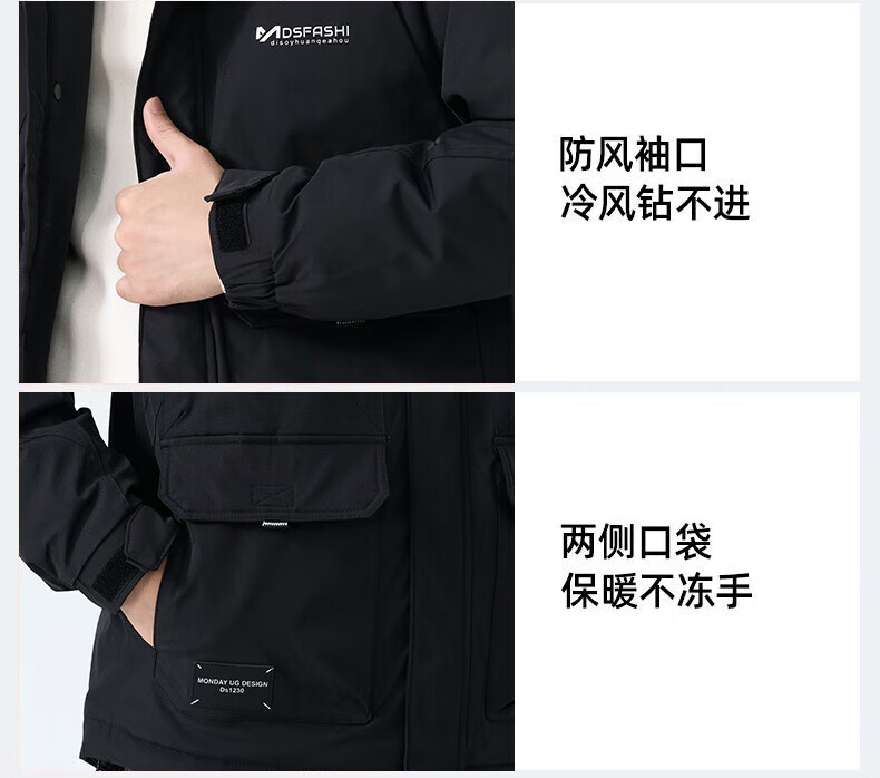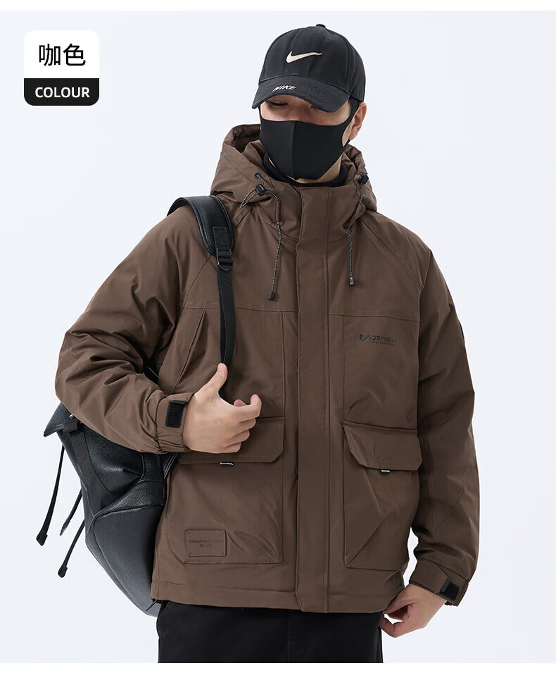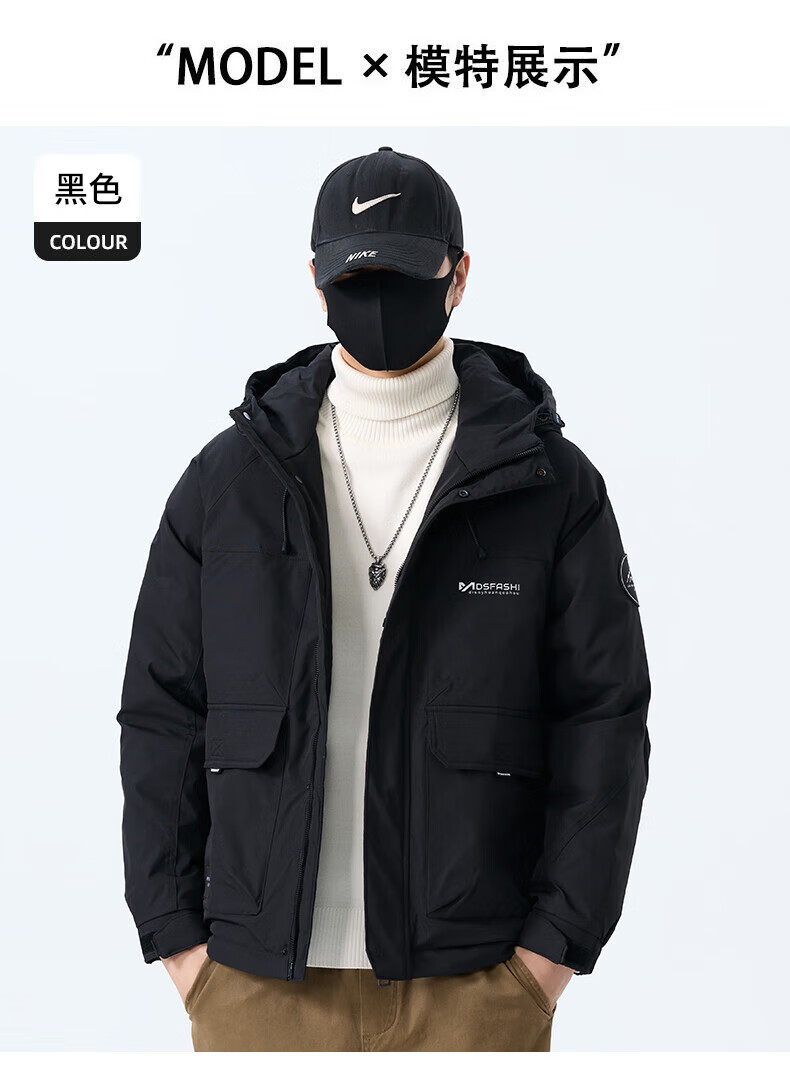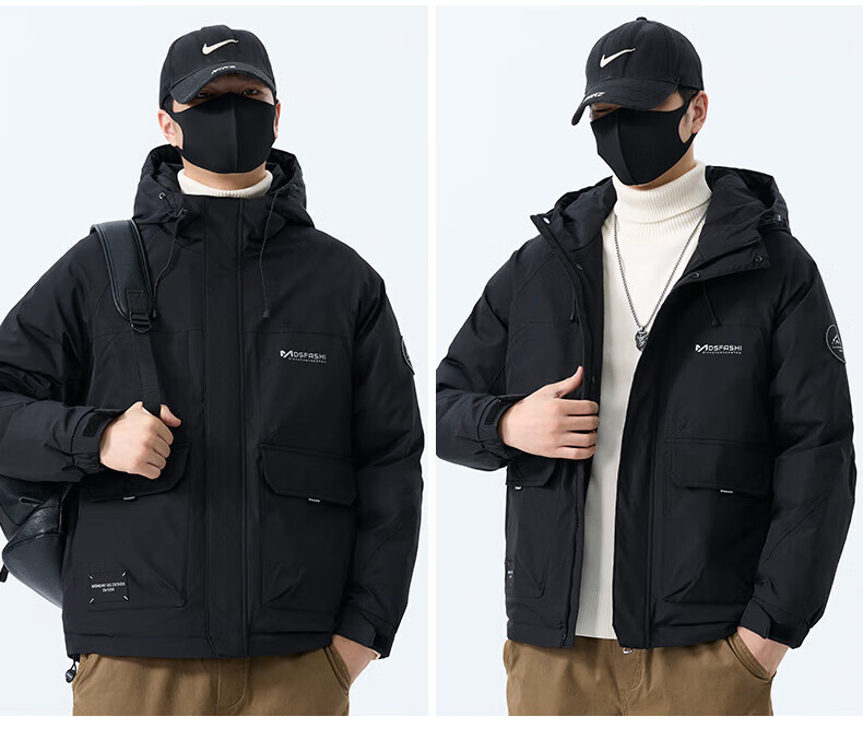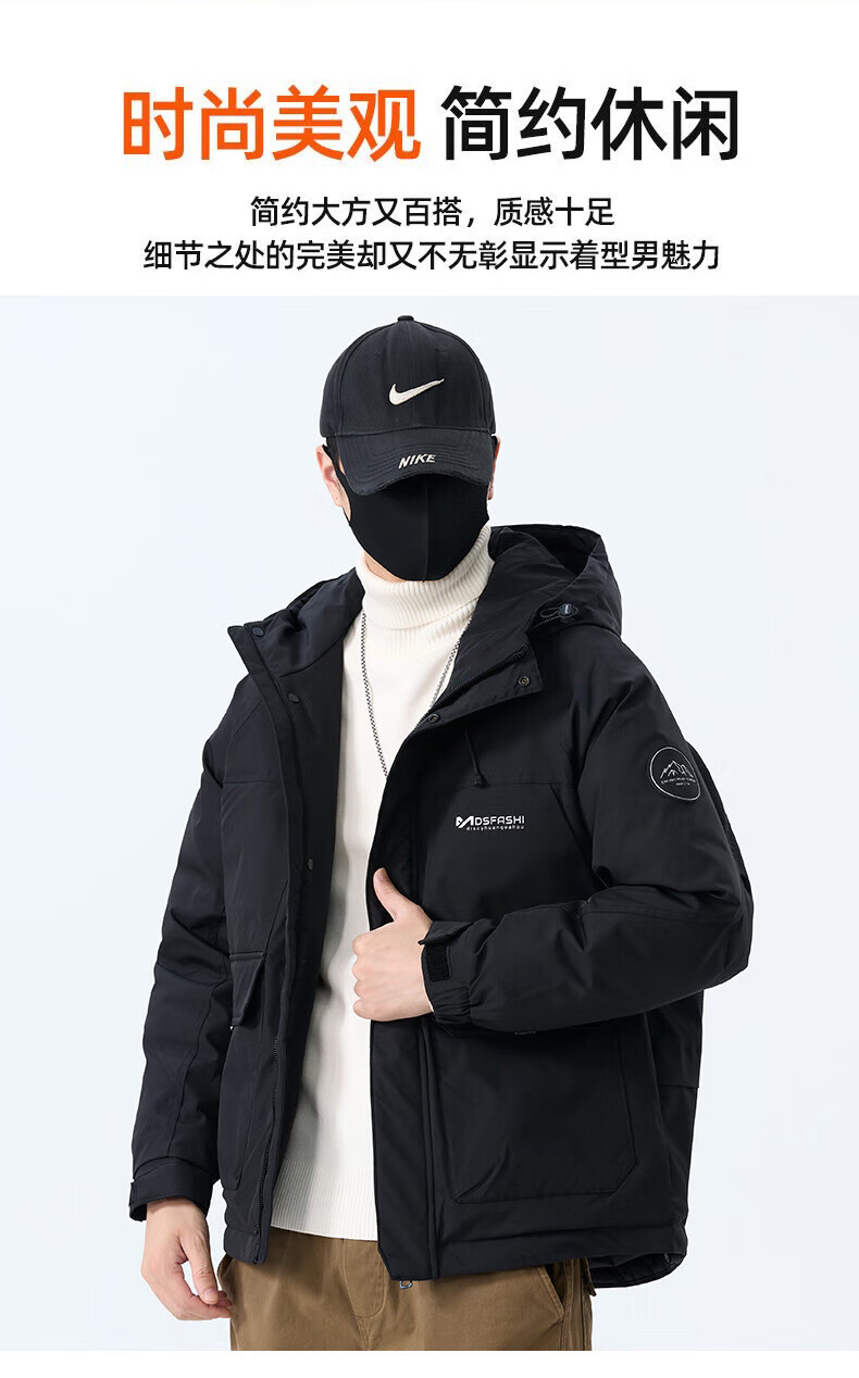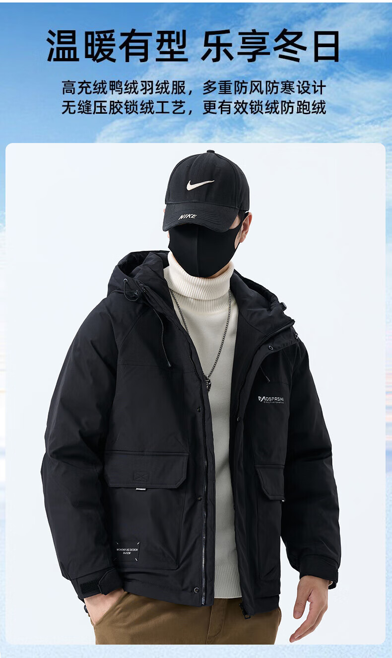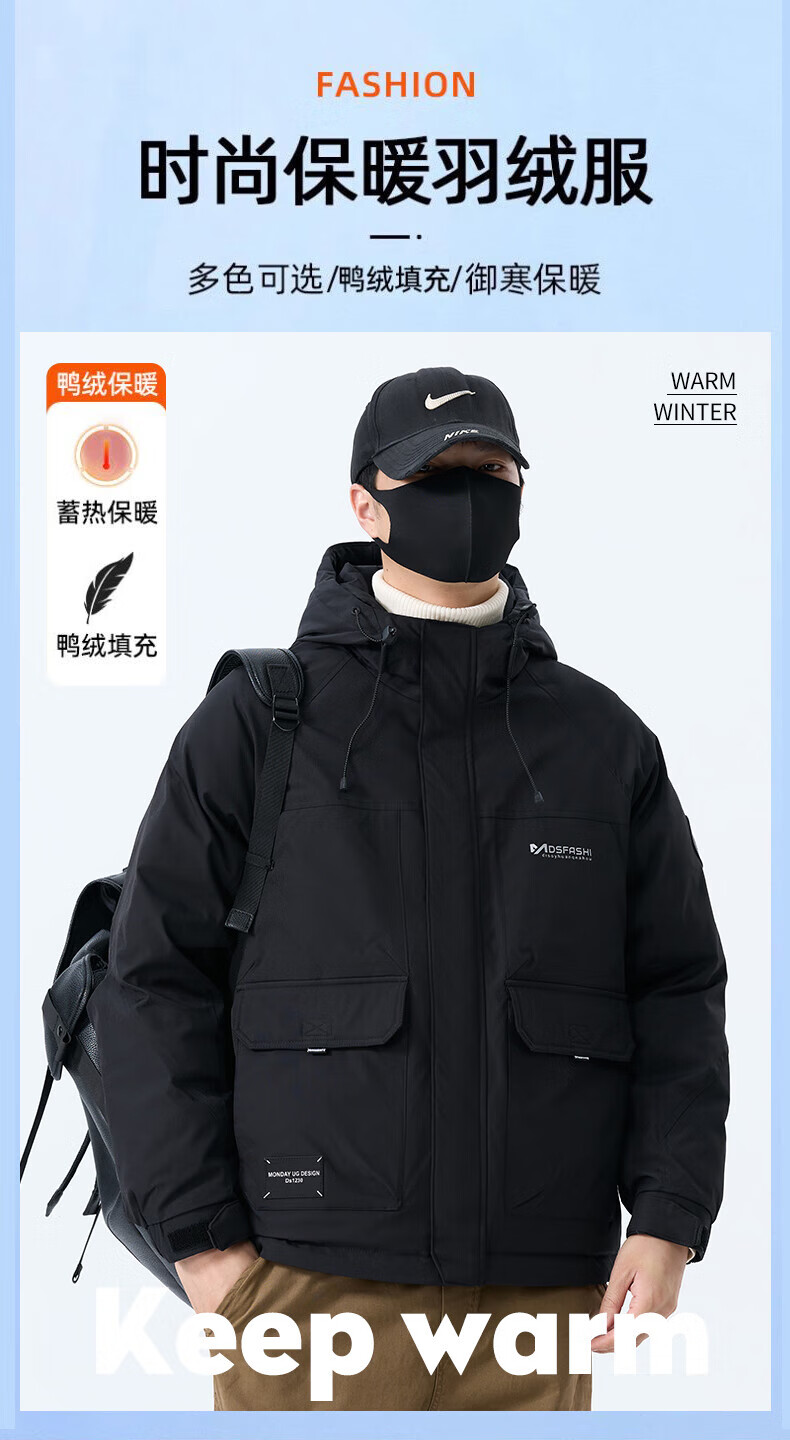 JEEP SPIRIT American Workwear Down Jacket Men's Winter 2025 New Thick Warm Jacket Men's White Duck Down Jacket Black M