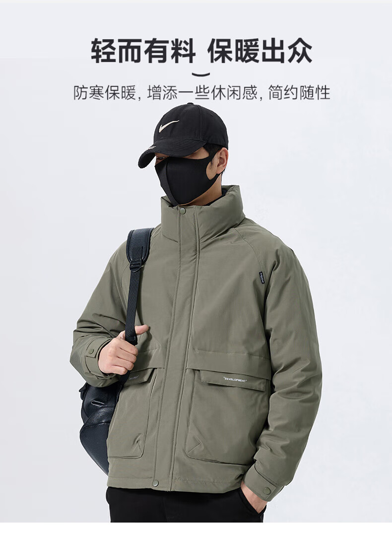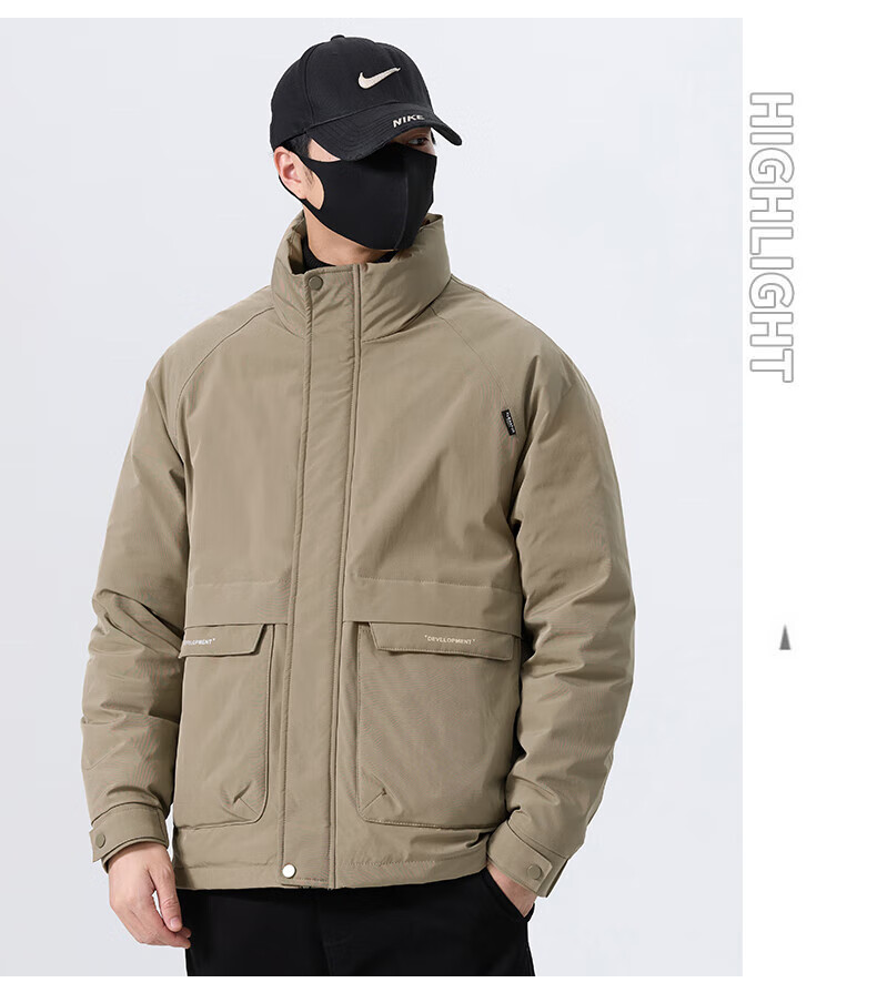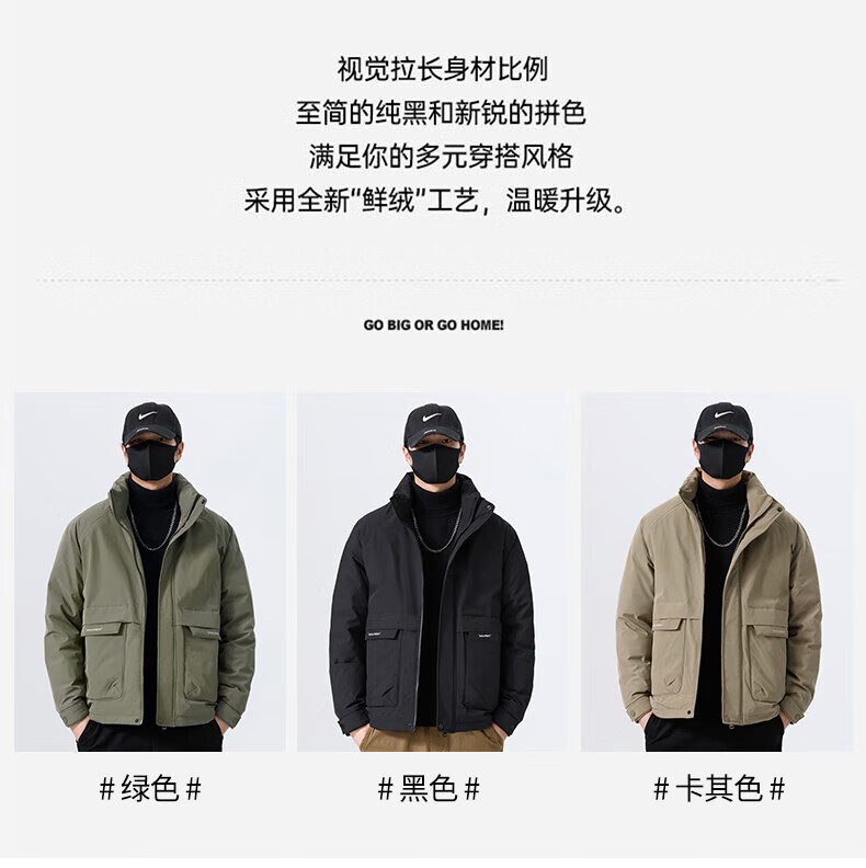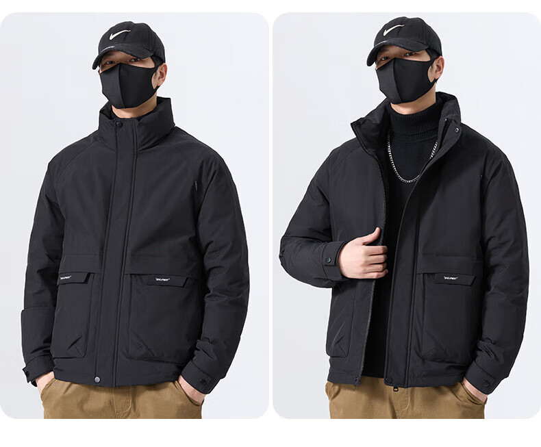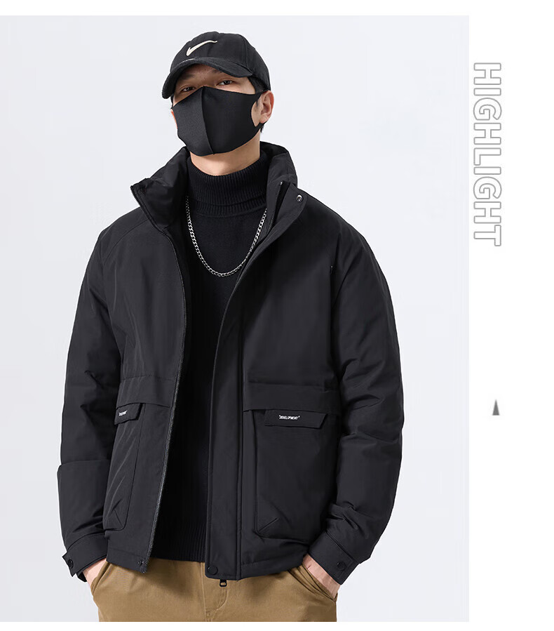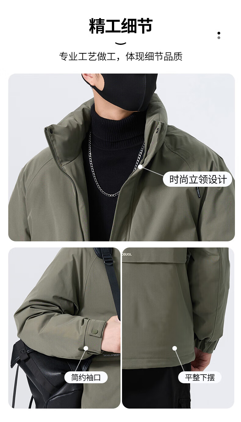 JEEP SPIRIT立领工装羽绒服男款2025新款冬季感加厚保暖外套男士休闲夹克 黑色 L