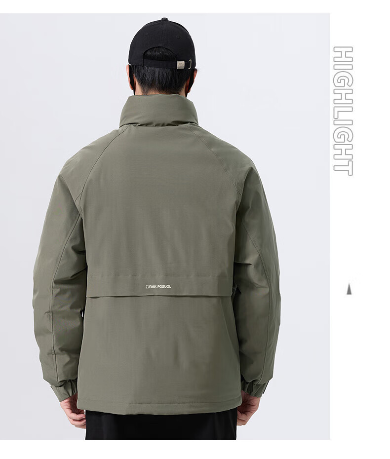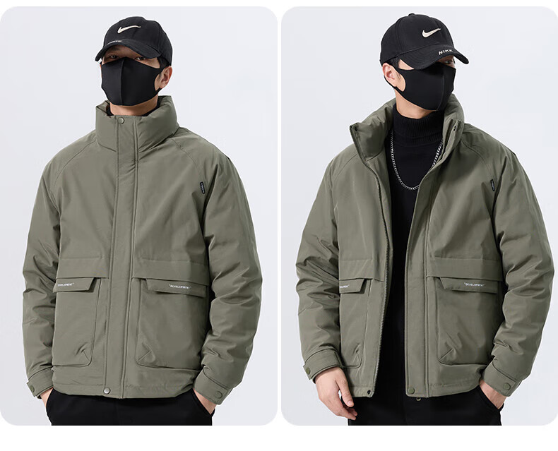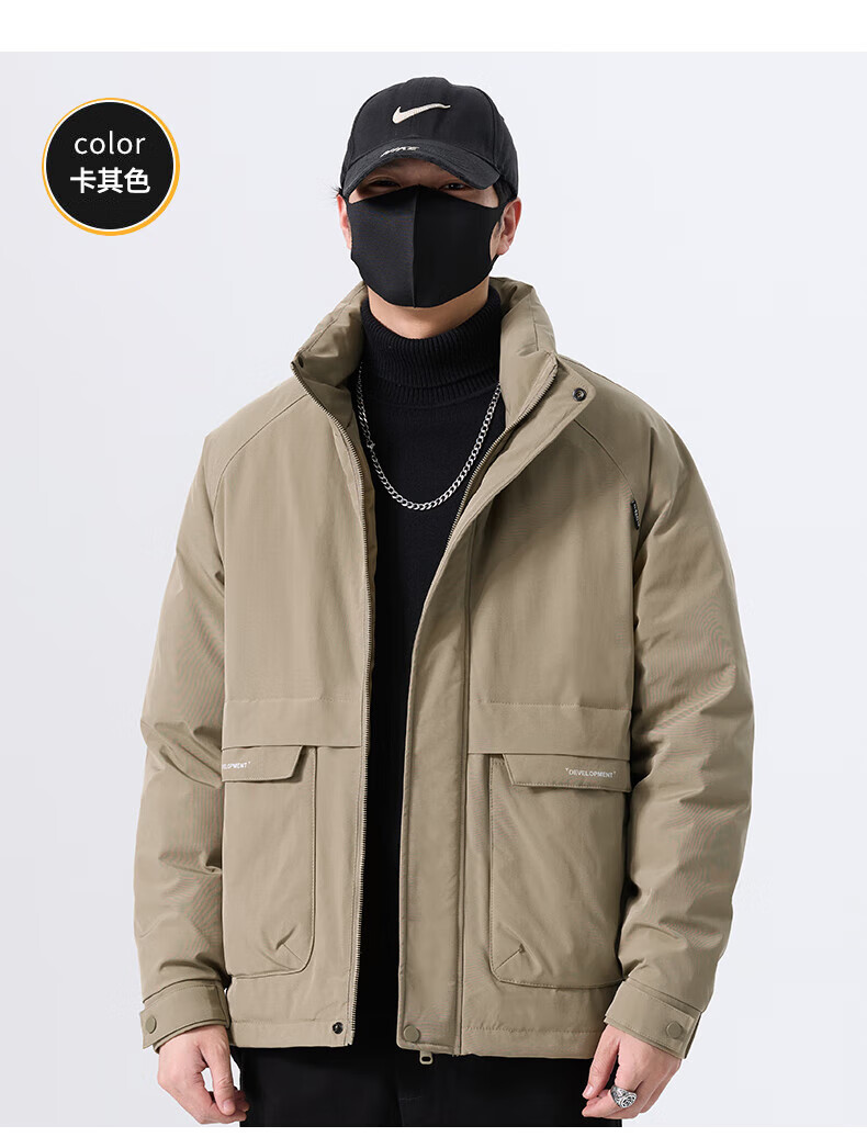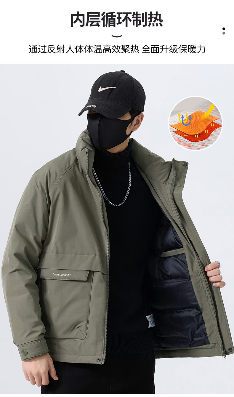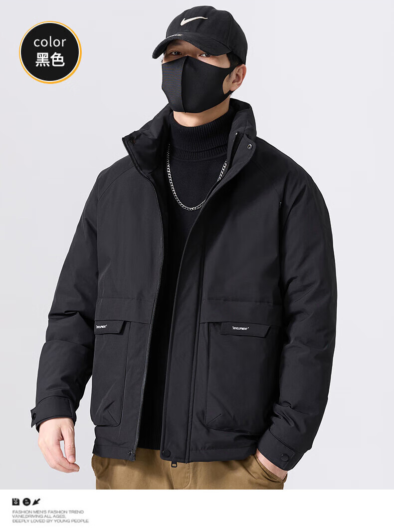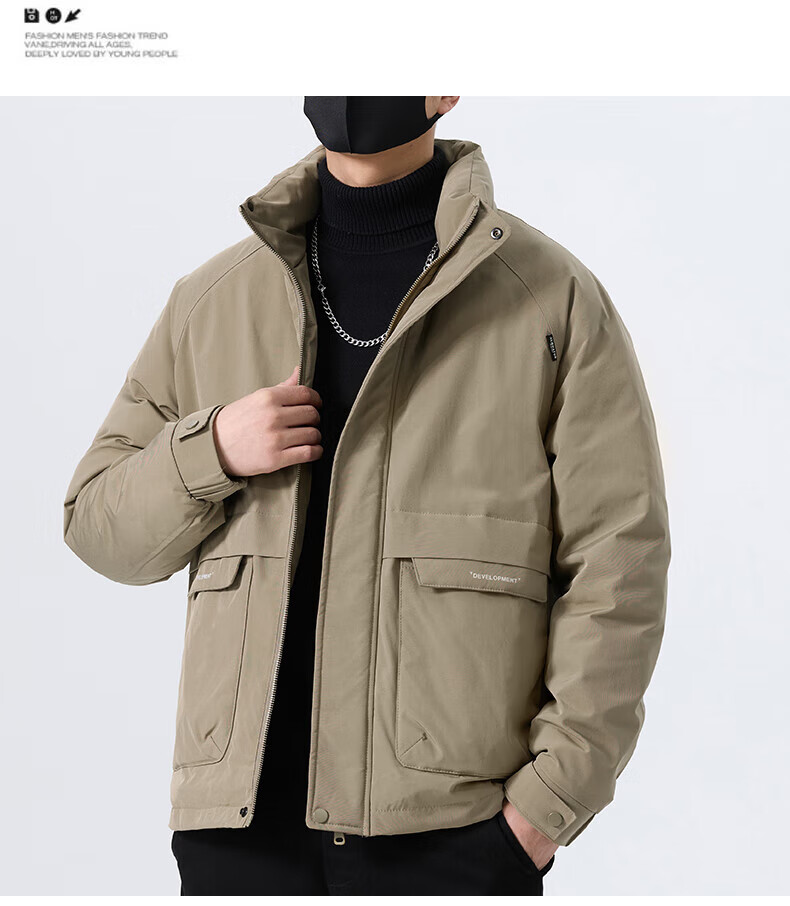 JEEP SPIRIT立领工装羽绒服男款2025新款冬季感加厚保暖外套男士休闲夹克 黑色 L