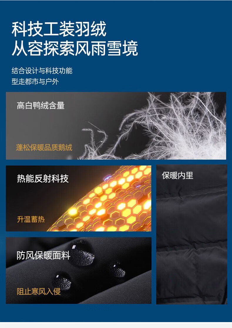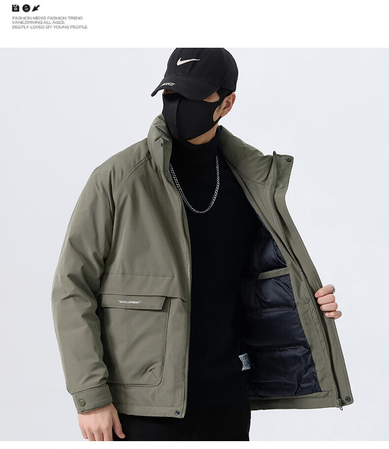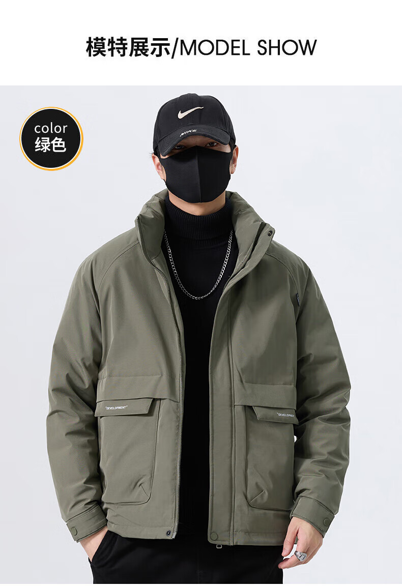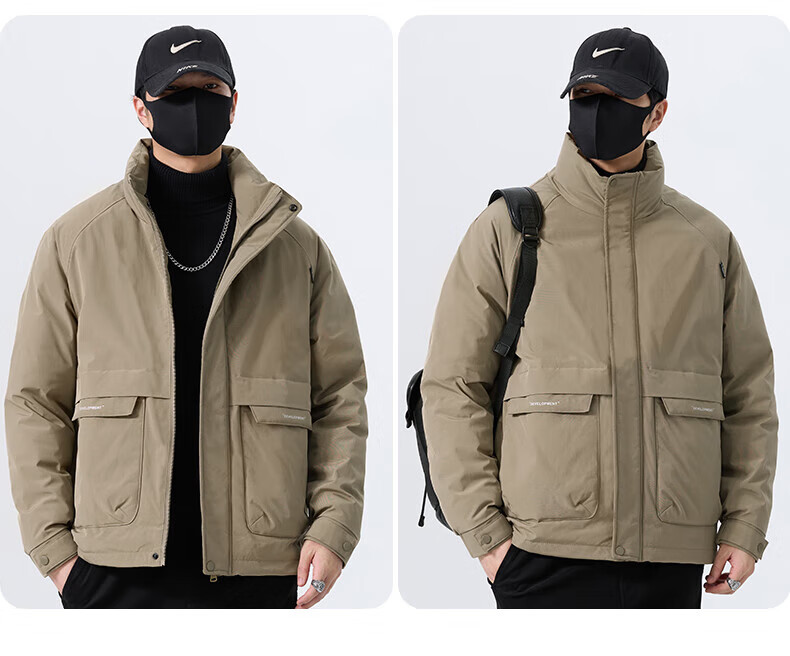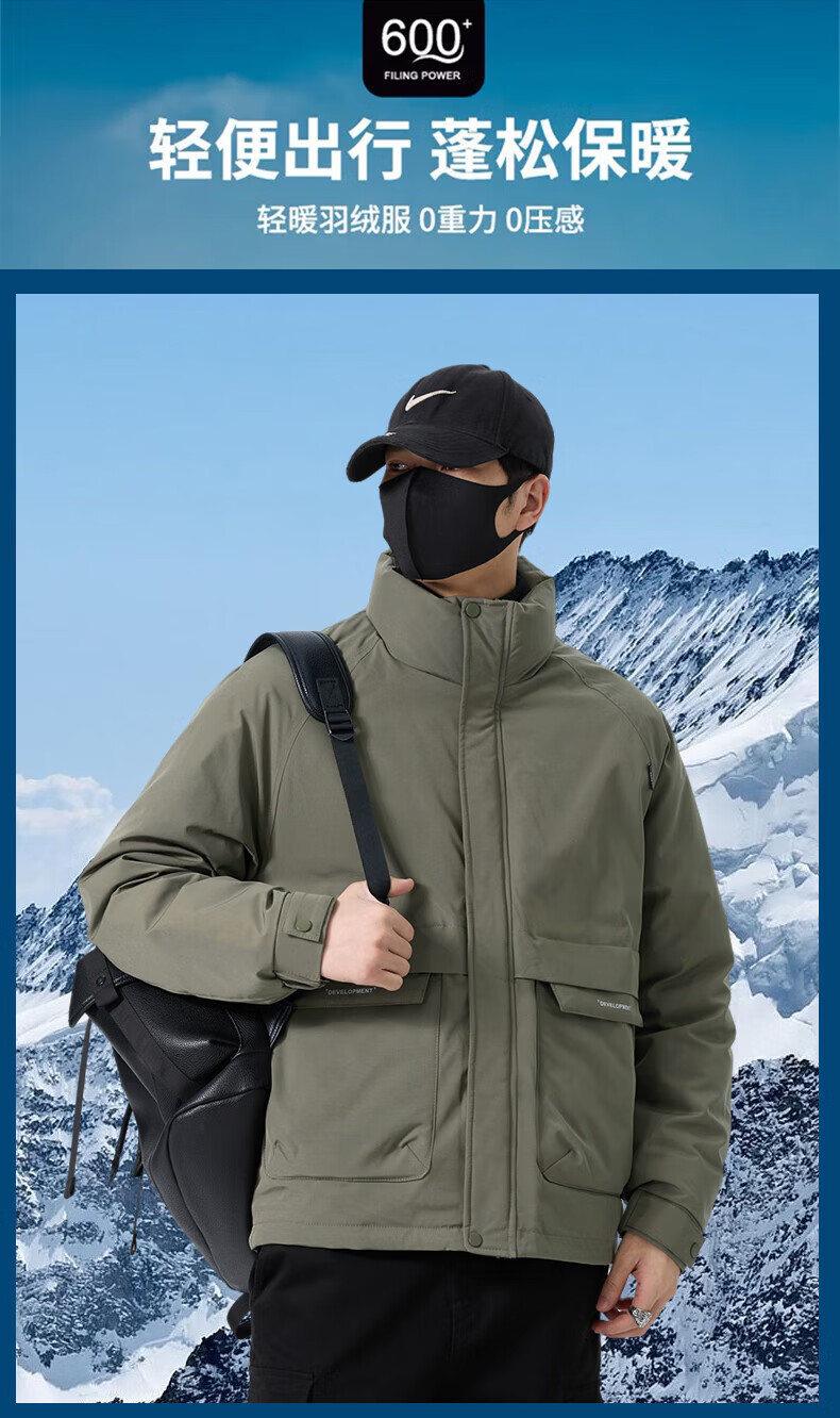 JEEP SPIRIT立领工装羽绒服男款2025新款冬季感加厚保暖外套男士休闲夹克 黑色 L