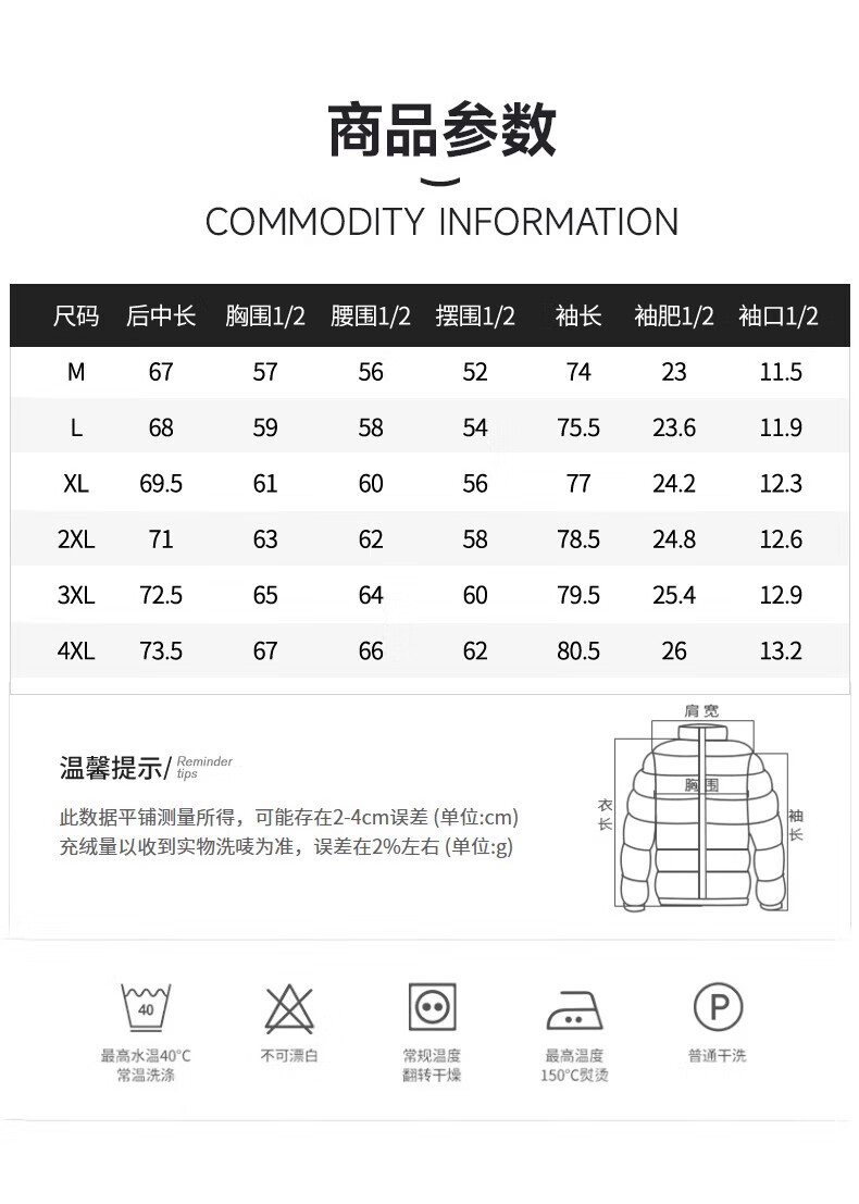 China (cm) 165 / 88-90 170 / 96-98 175 / 108-110 180 / 118-122 185 / 126-130