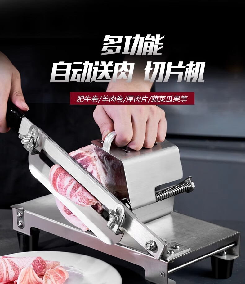 KDISV German mutton roll slicer household meat slicer rice cake knife commercial meat slicing artifact beef and mutton slice machine hot pot upgrade and thickening 304 total two blades + 10 frozen meat bags non-slip base | sharp blade | long-term cutting without fatigue