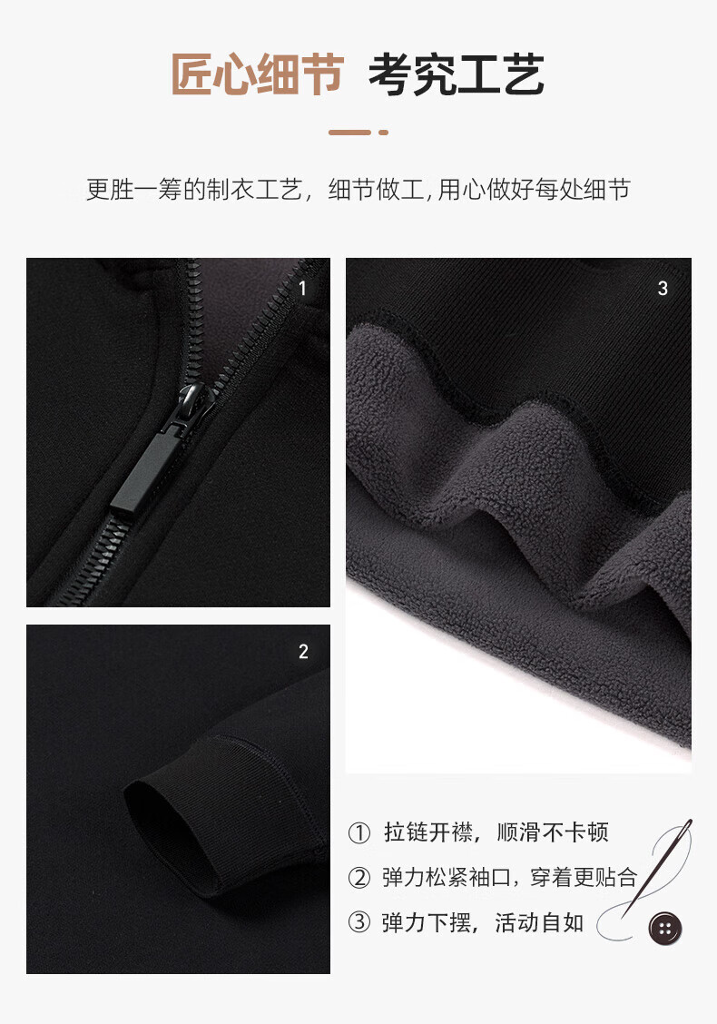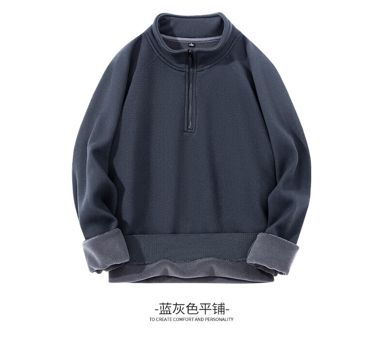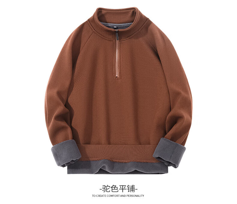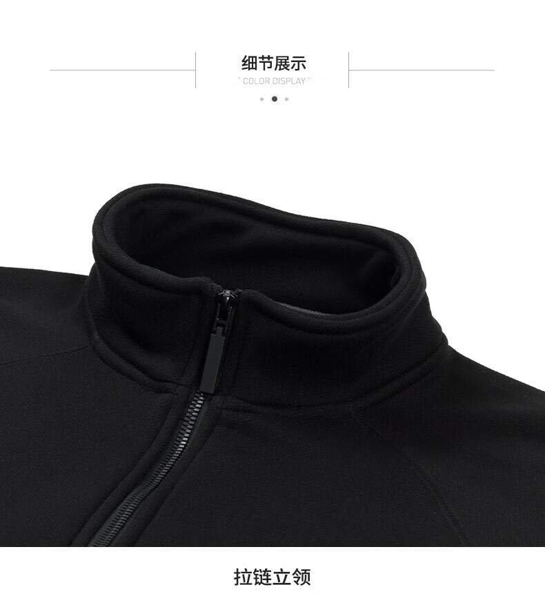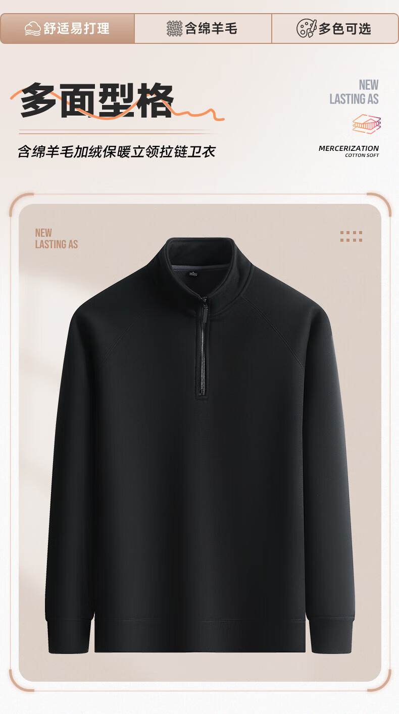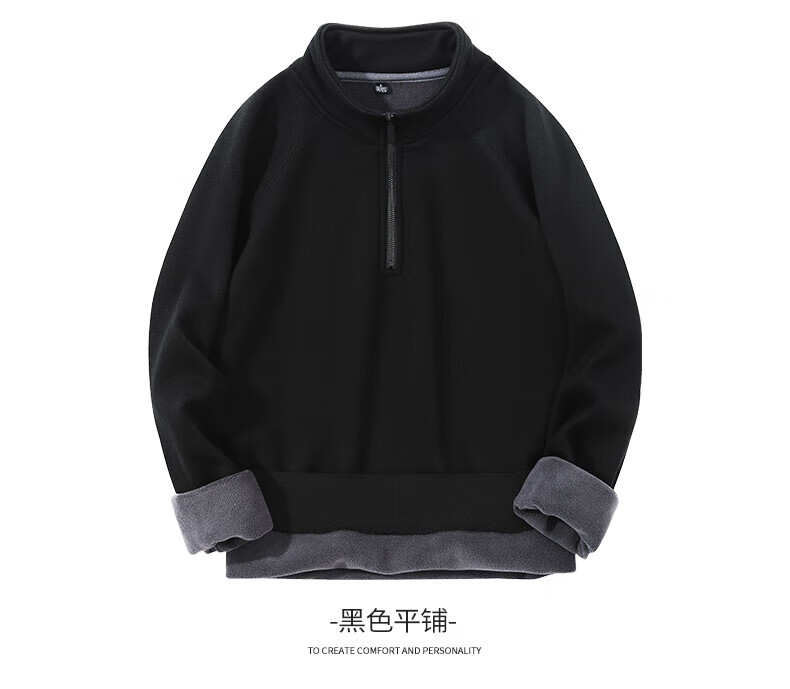 Hengyuanxiang 2025 autumn and winter new velvet sweatshirt men's half-zip stand collar winter sheep wool business casual warm sweatshirt black XL (180)