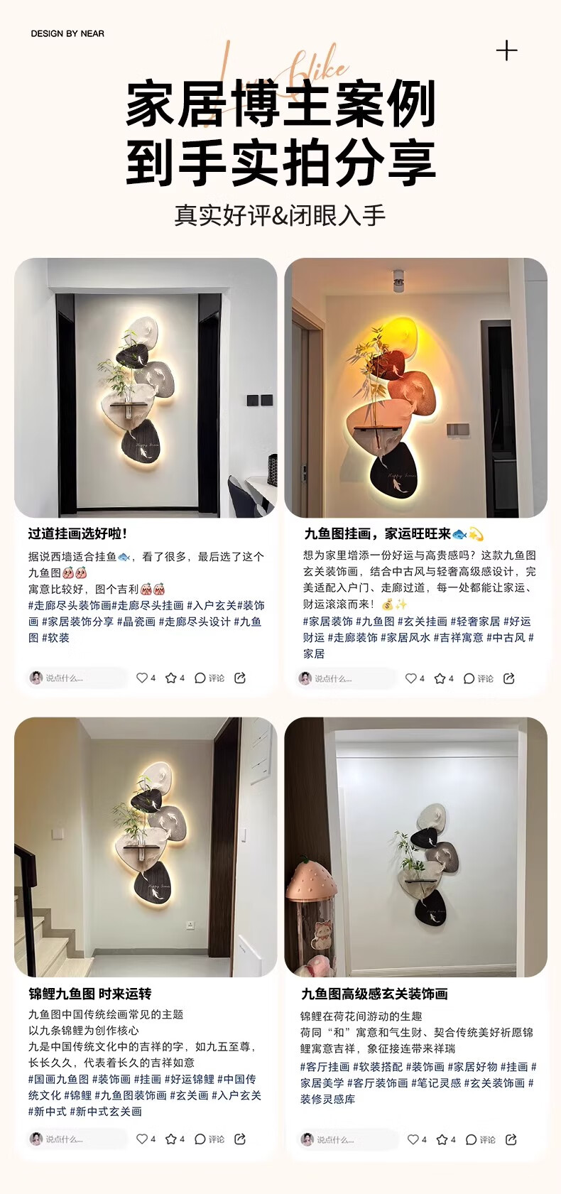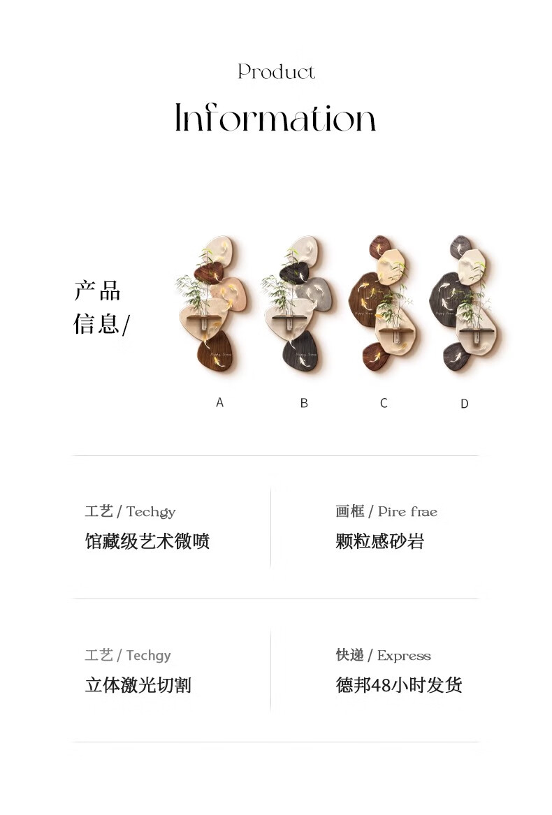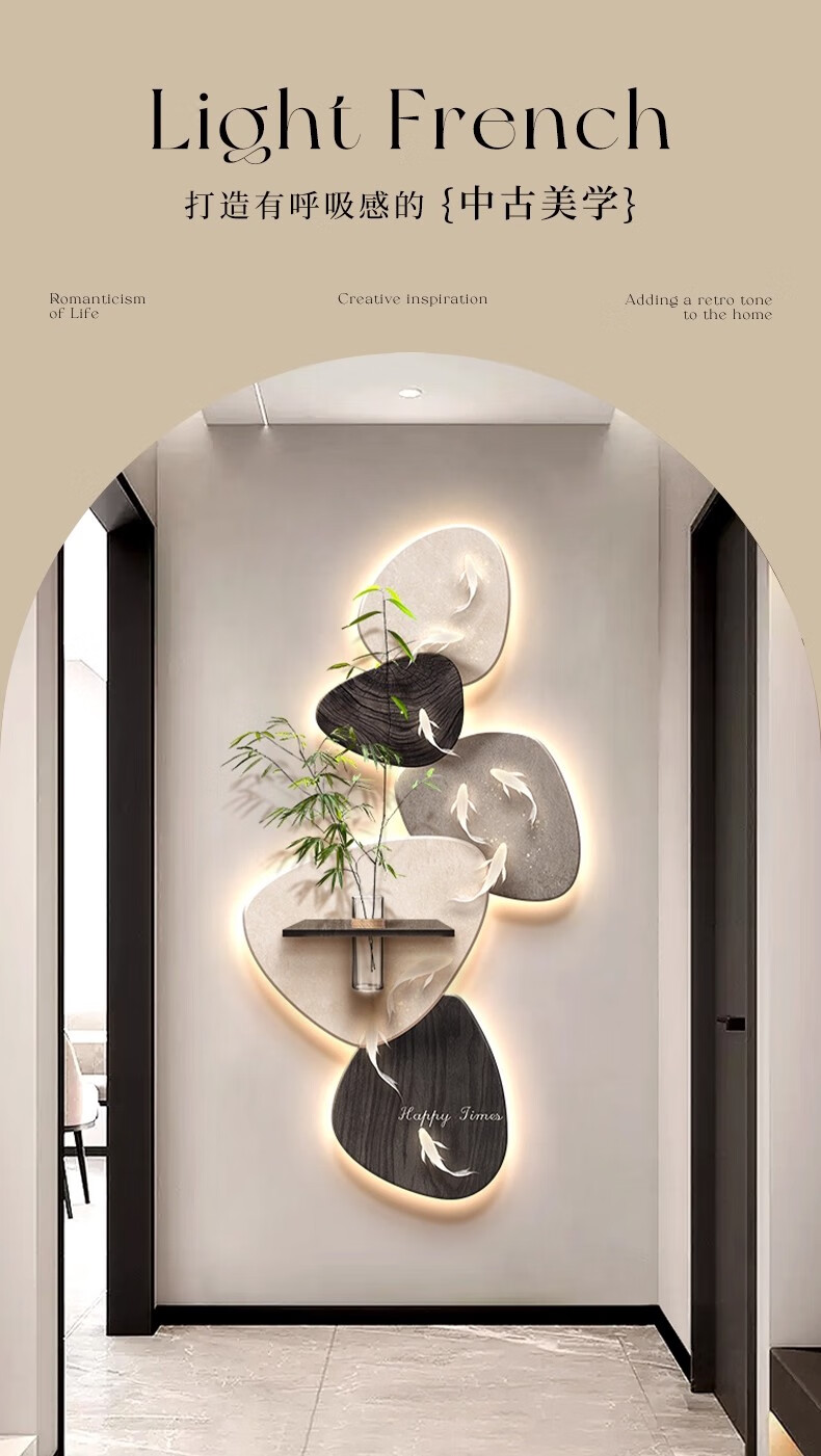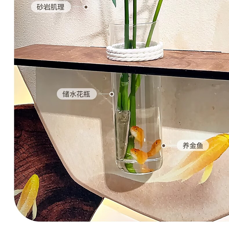 Kezhi Nine Fish Picture facing the entrance door, entrance wall decorative painting mural, 2025 new high-end living room corridor hanging painting A-Koi Yuefu 80*160+shelf 41*12, handmade sandstone+shelf+hemp rope+hydroponic vase+simulated green plants, ordinary model, non-luminous