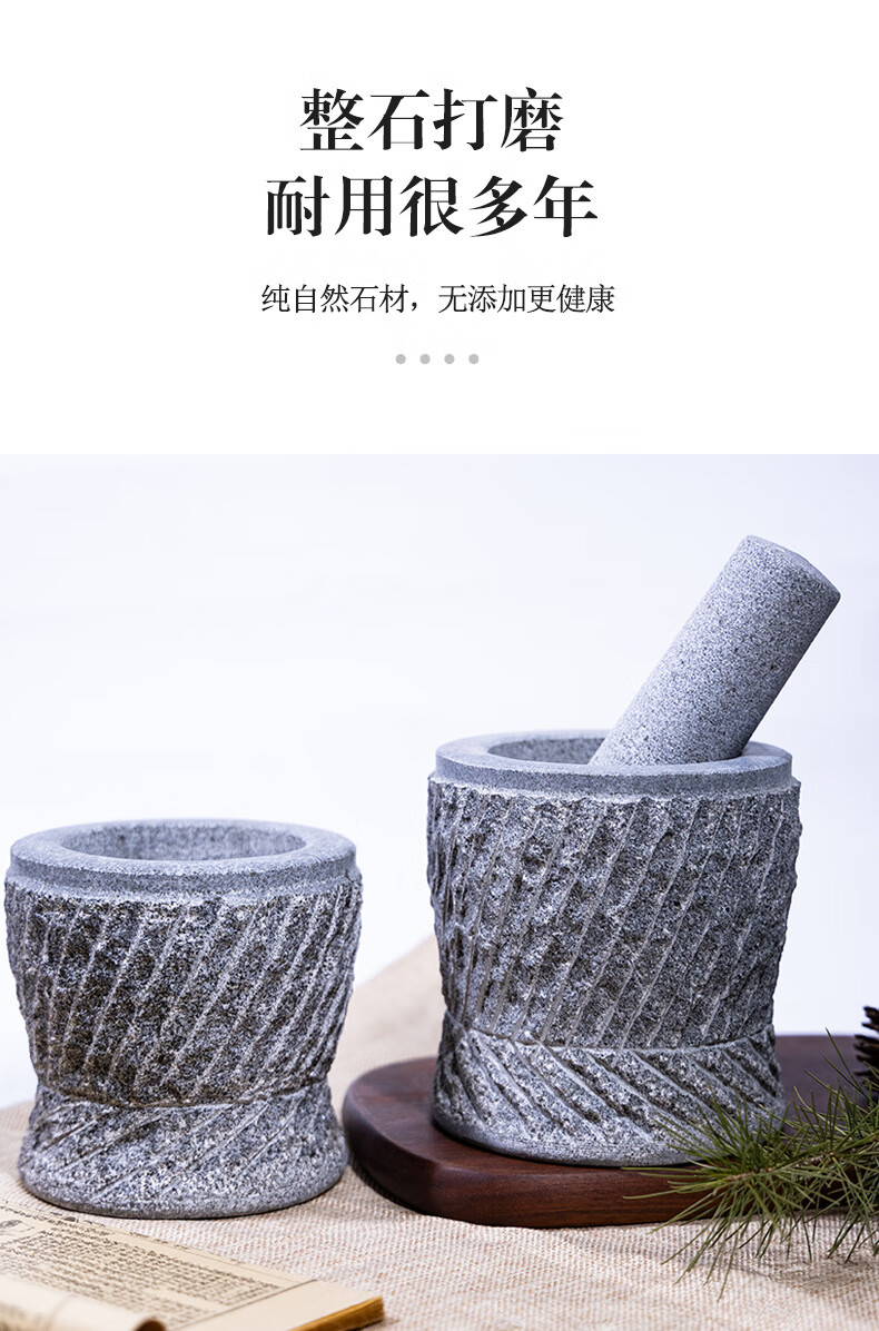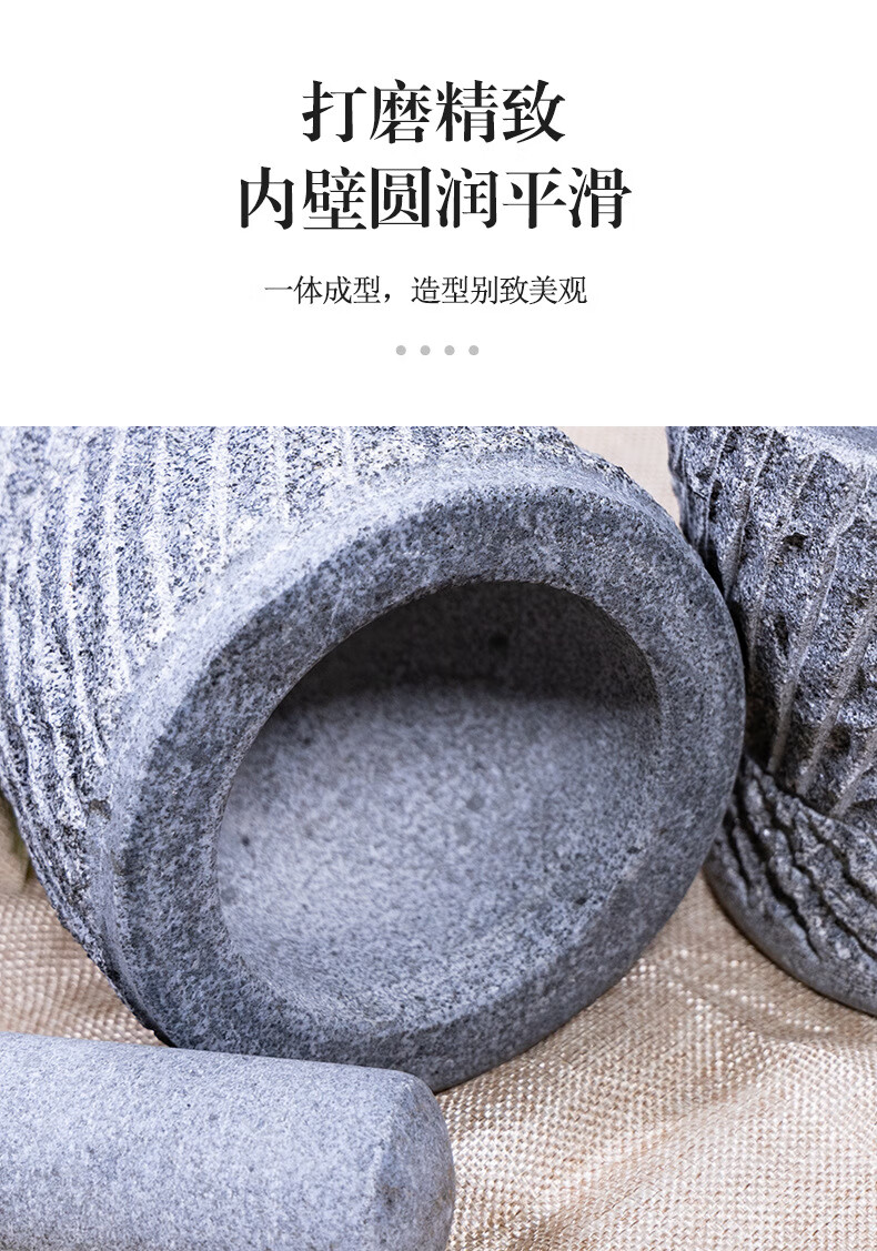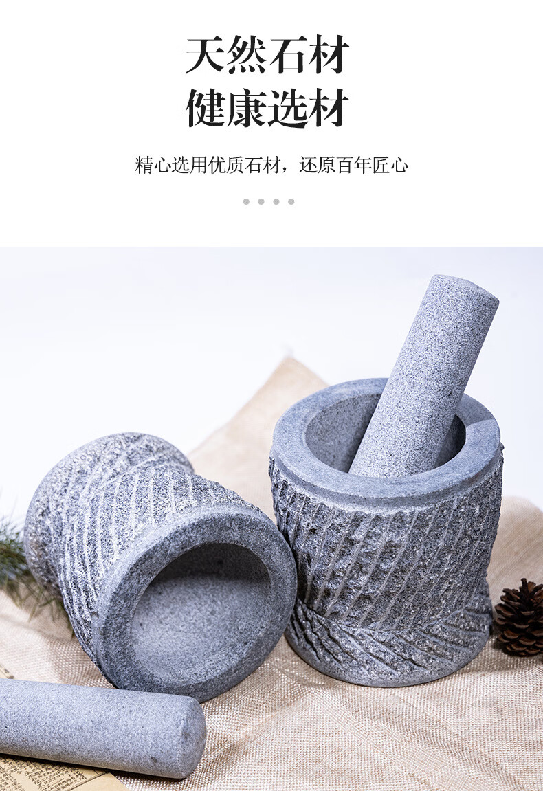 Shijanu black stone bluestone hand-carved stone mortar garlic mortar garlic pounder bowl mortar grinder medicine jar pounder bluestone hand-chiselled stone mortar diameter 20 cm