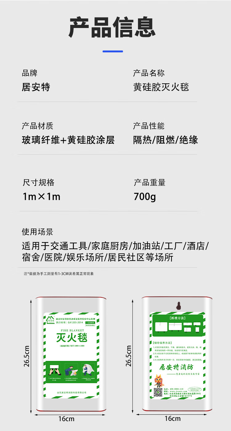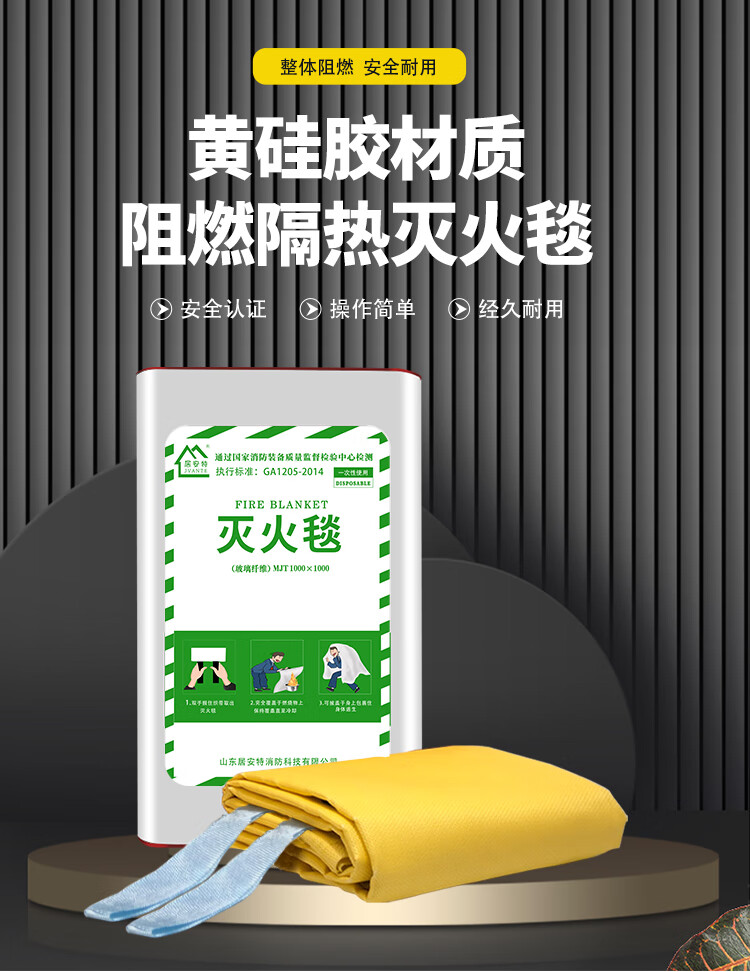 Yellow silicone fire extinguishing blanket fire home kitchen emergency escape boxed national standard flame retardant heat insulation thickened fire blanket yellow silicone boxed 1m*1m
