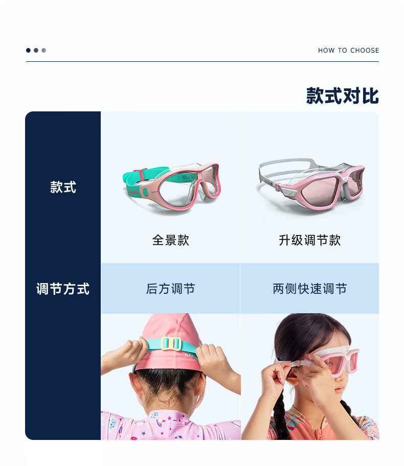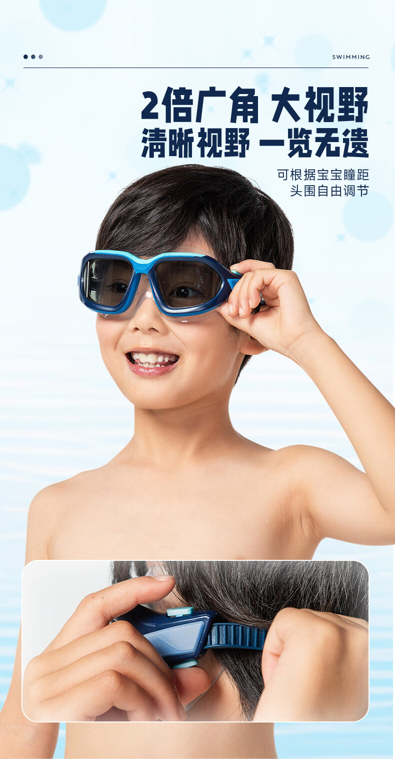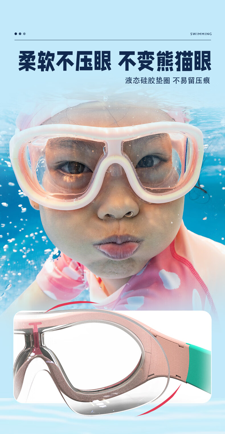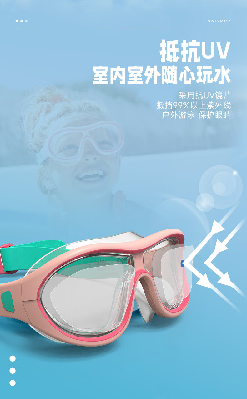 Decathlon (DECATHLON) children's swimming goggles for boys and girls, large-frame goggles, high-definition waterproof and anti-fog, children's swimming and play KIDK upgraded adjustment model - gentle pink and white_ (quick adjustment on both sides) (3-12 years old)